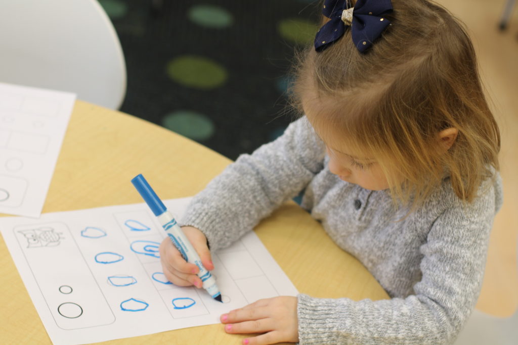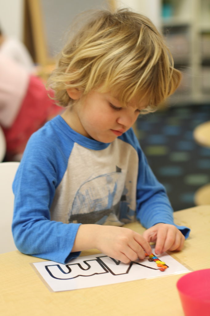 And then once we have done different activities like that, then we grab our writing utensils and start practicing tracing and then writing on our own.