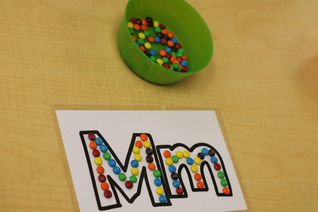 We practice building letters using various materials like M&Ms.