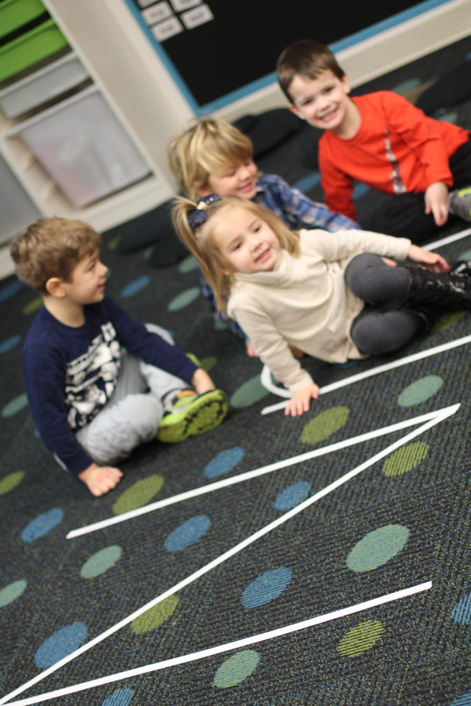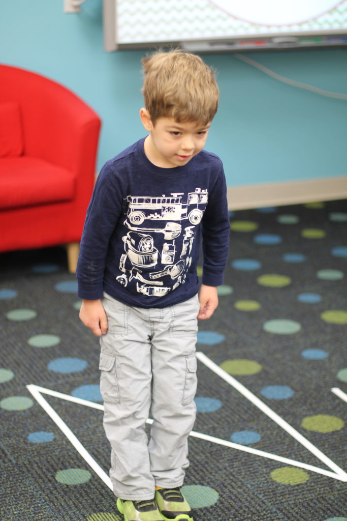 We use our bodies and large motor skills to trace the letters with our feet!