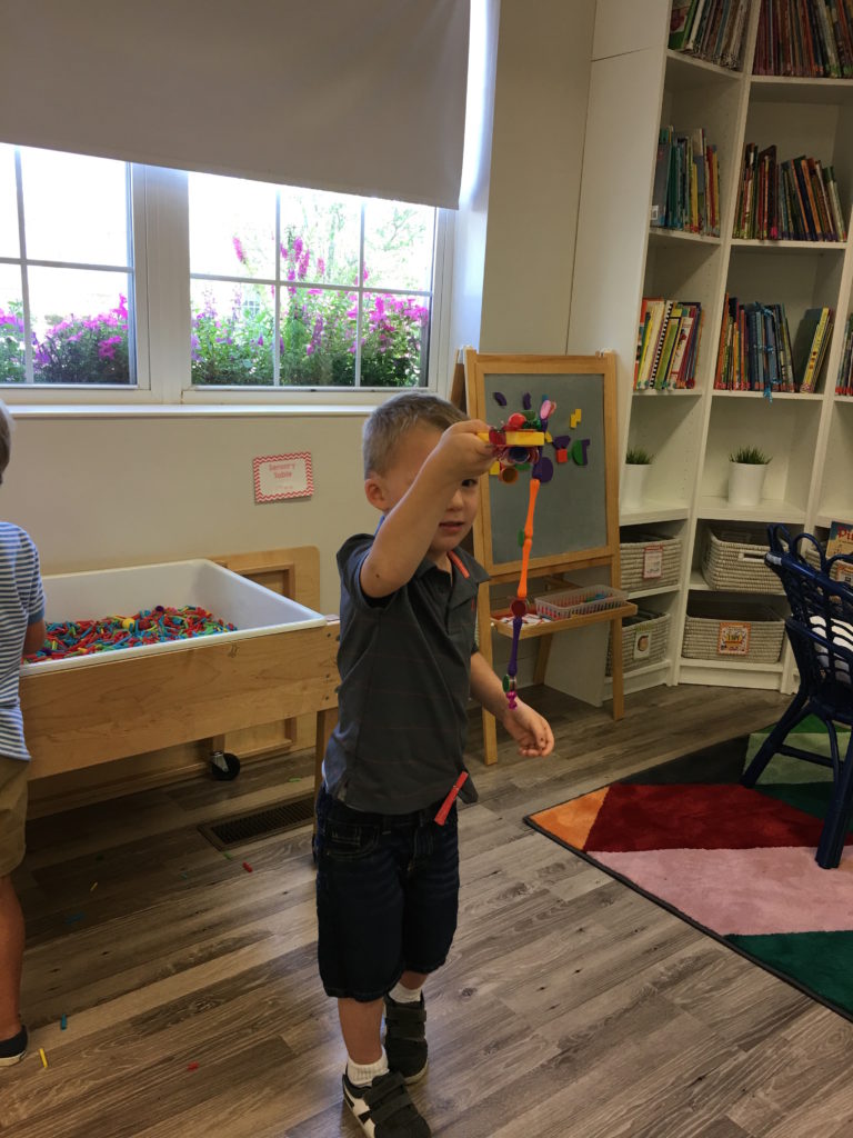 We took advantage of our smaller groups today and paired each of our KPrep students up with a Preschool Prep student. The buddies worked together to build big shapes with smaller shapes over in the Kprep room! The preschool preppers were so excited to come visit the big room and have a big buddy to get to know. Then we marched over to the preschool prep room with our buddies and the little guys got to share their favorite centers with the older kids. We had fun with our buddies today!!
