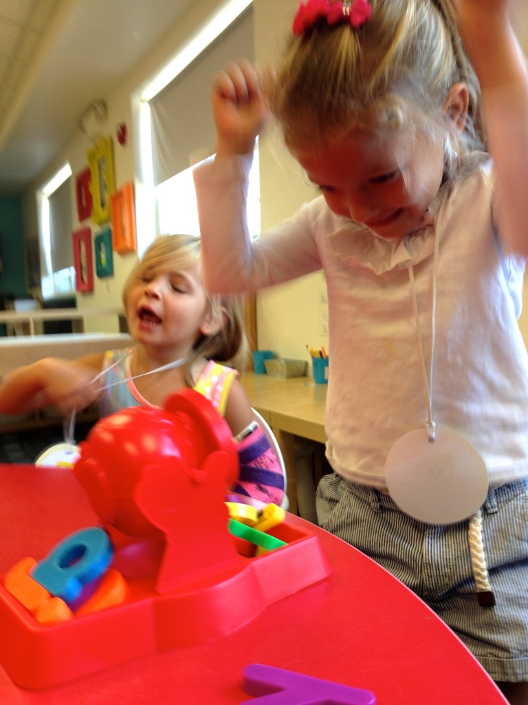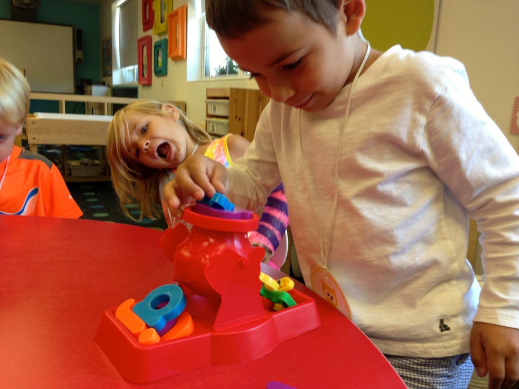 We continued to review our lowercase letters today as we played Don’t Spill the Letters! A fun way to practice out letter recognition skills.