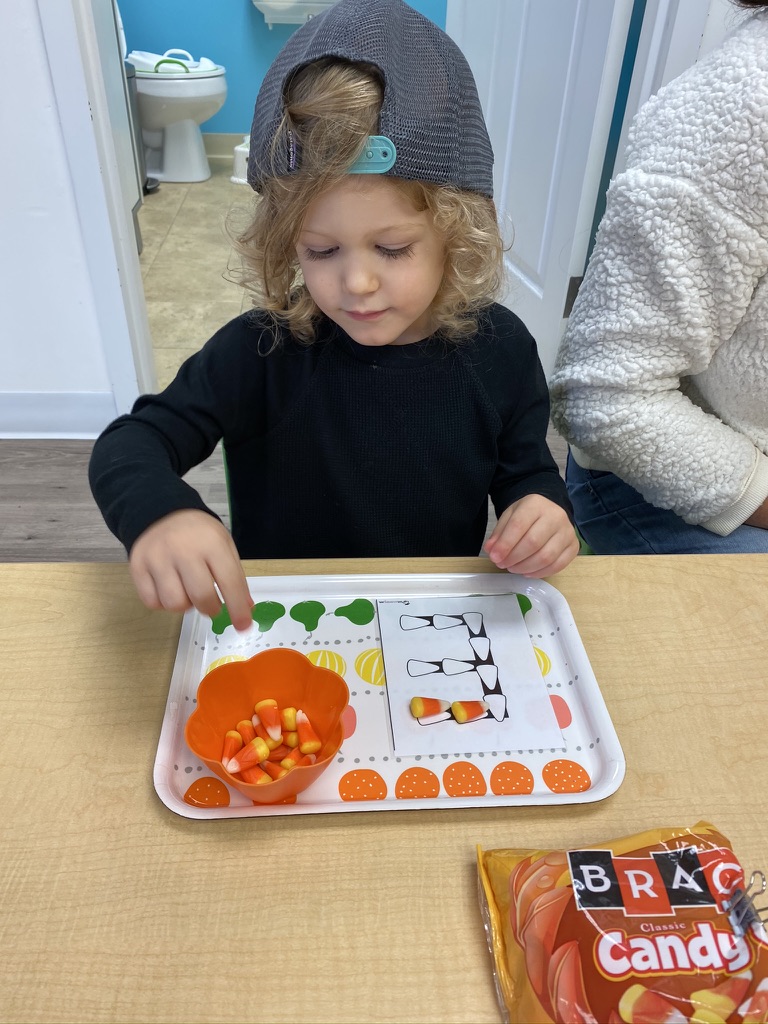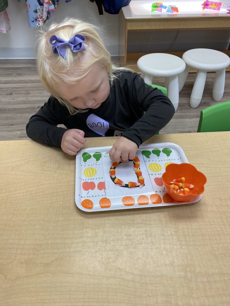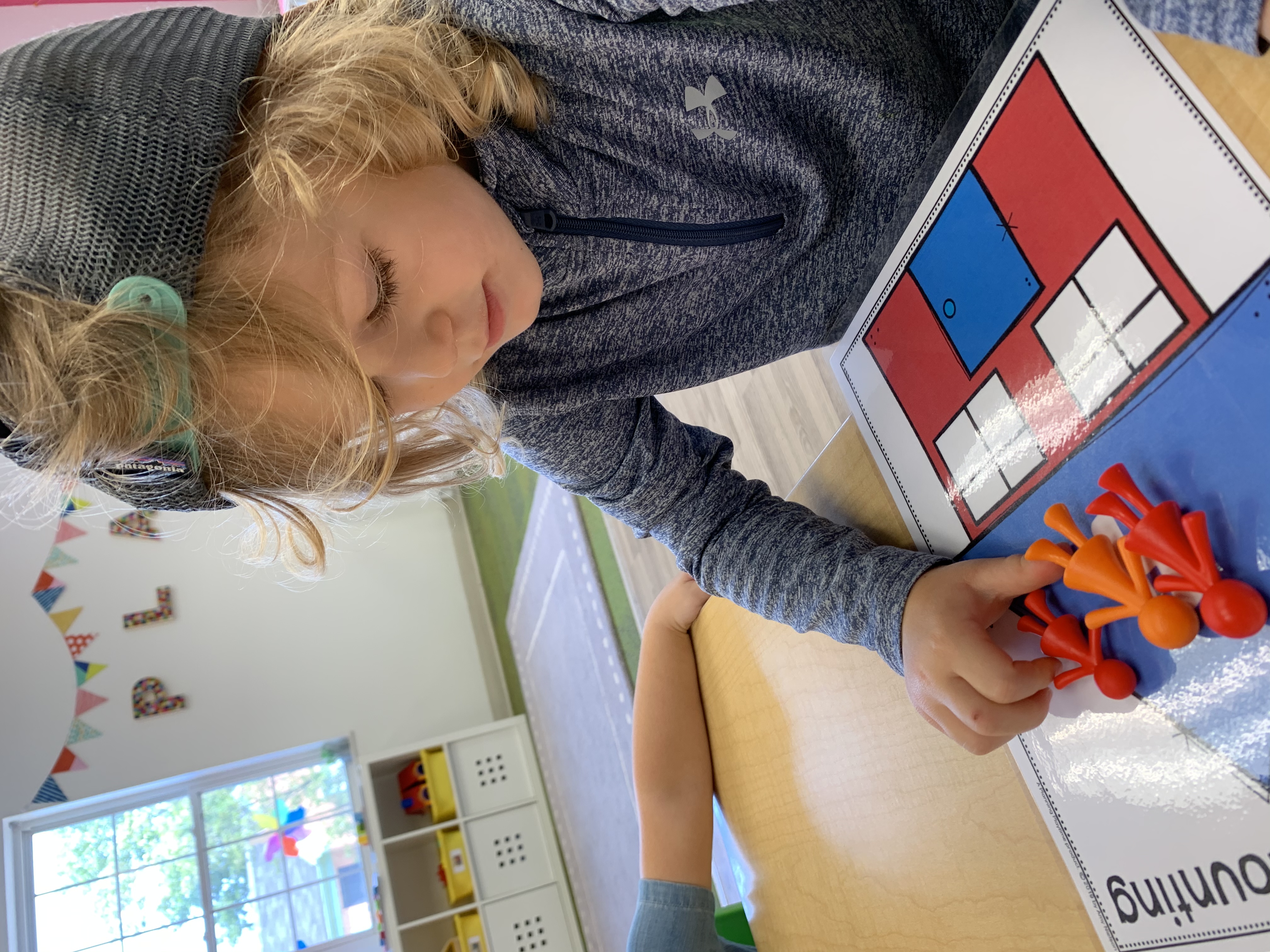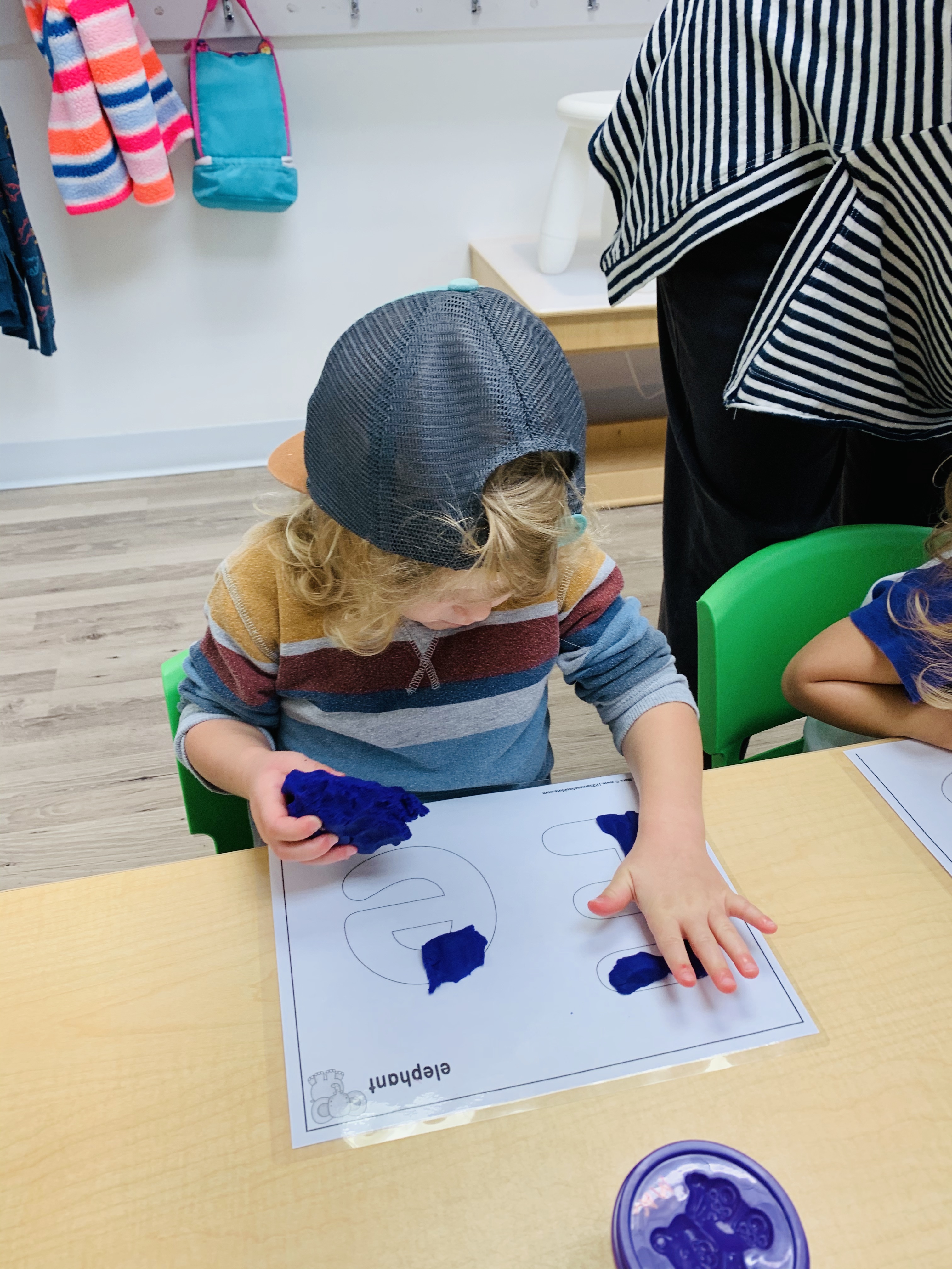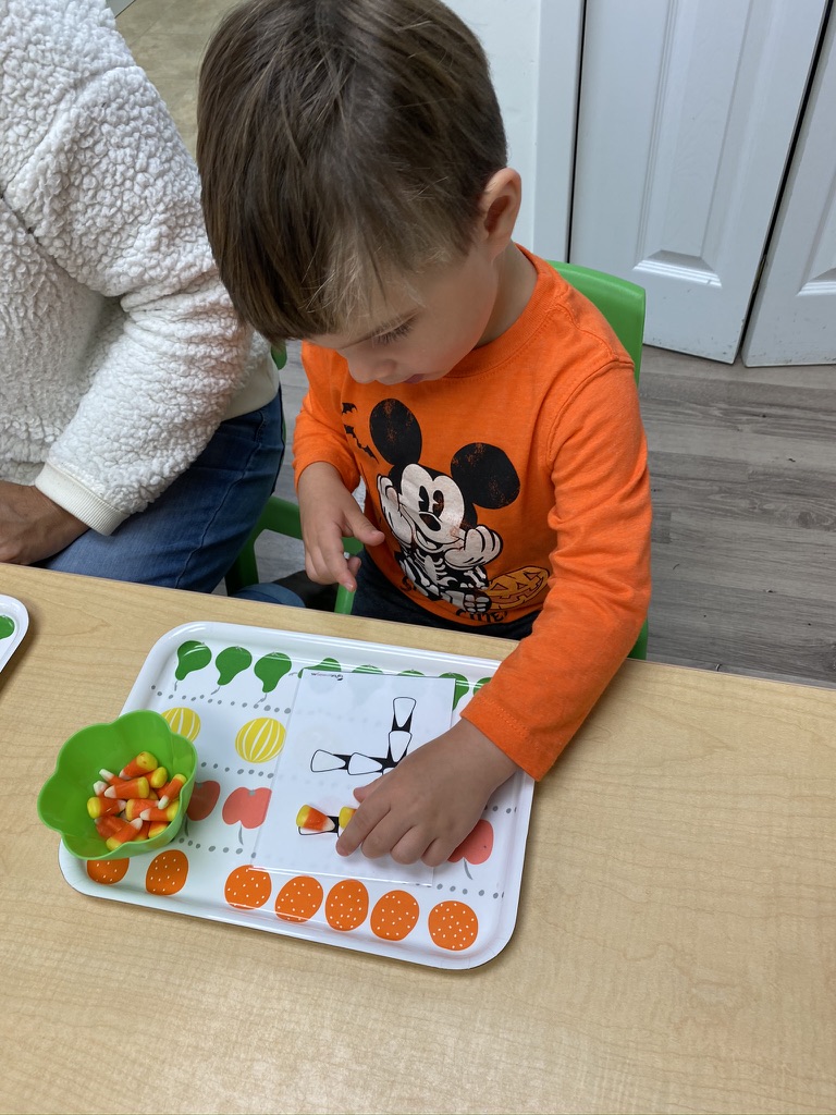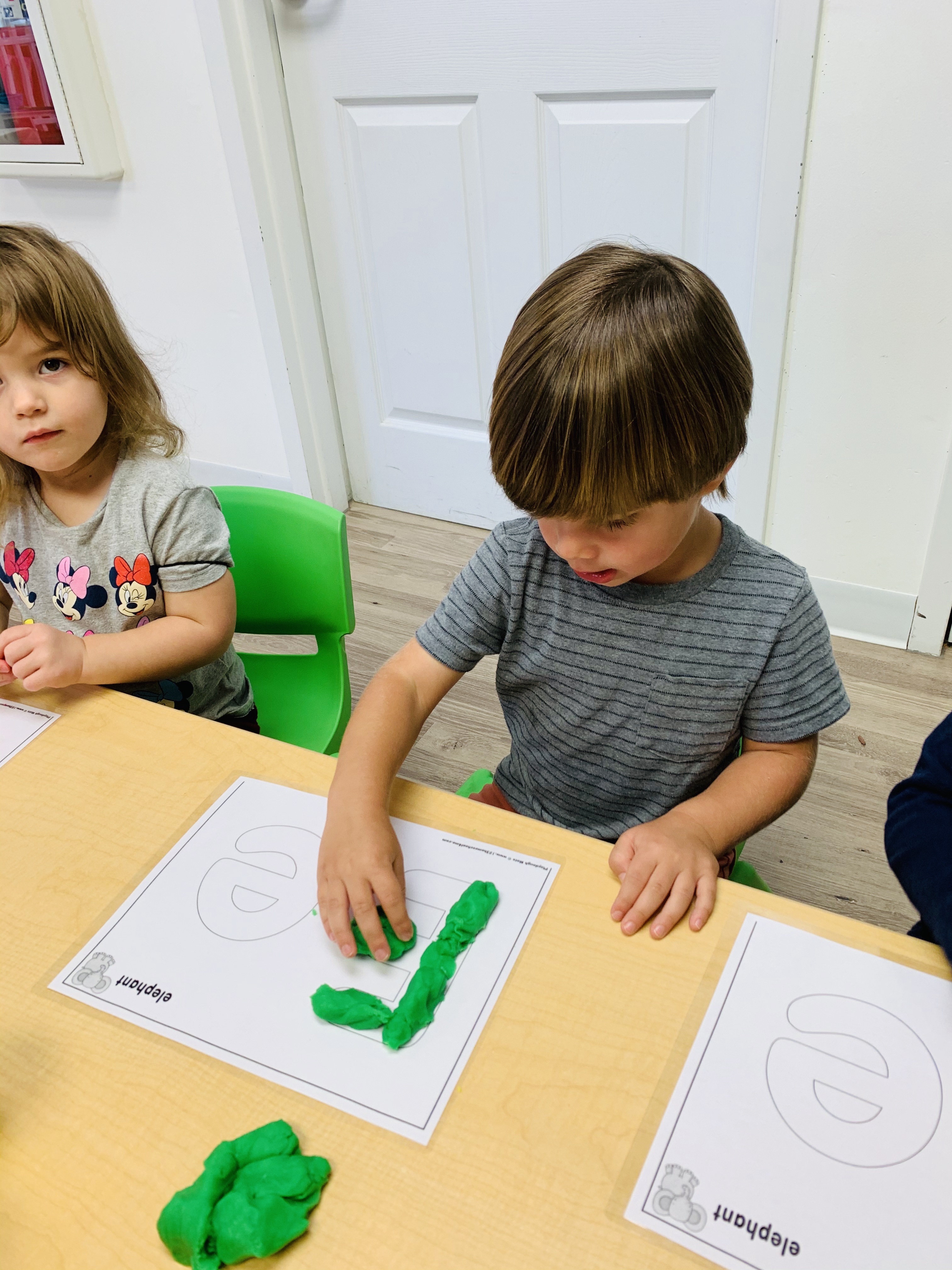 For St. Patty’s Day activities we talked about rainbows and the order of the colors of the rainbow. We also did a shamrock letter match. The students used stickers with letters on them and matched them to stickers on their shamrock.
