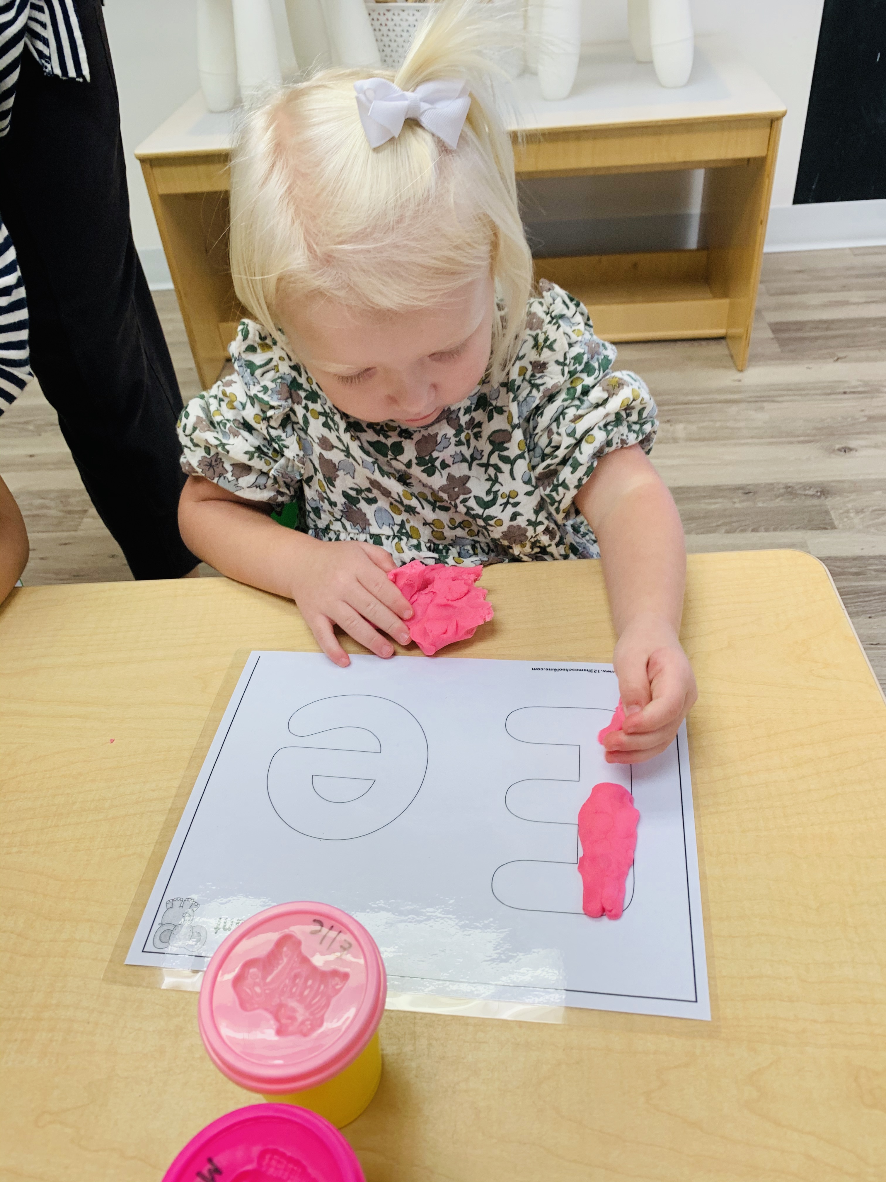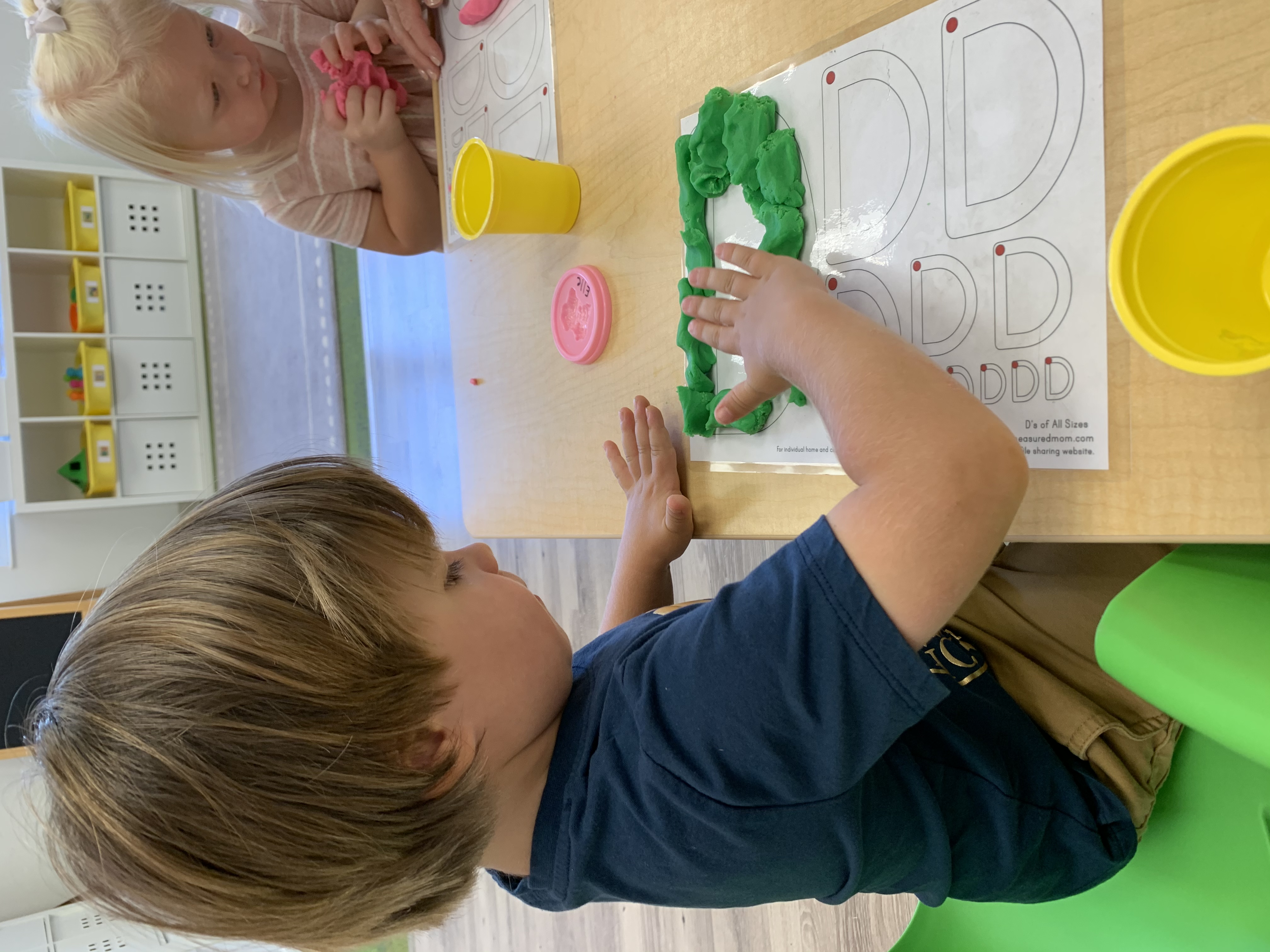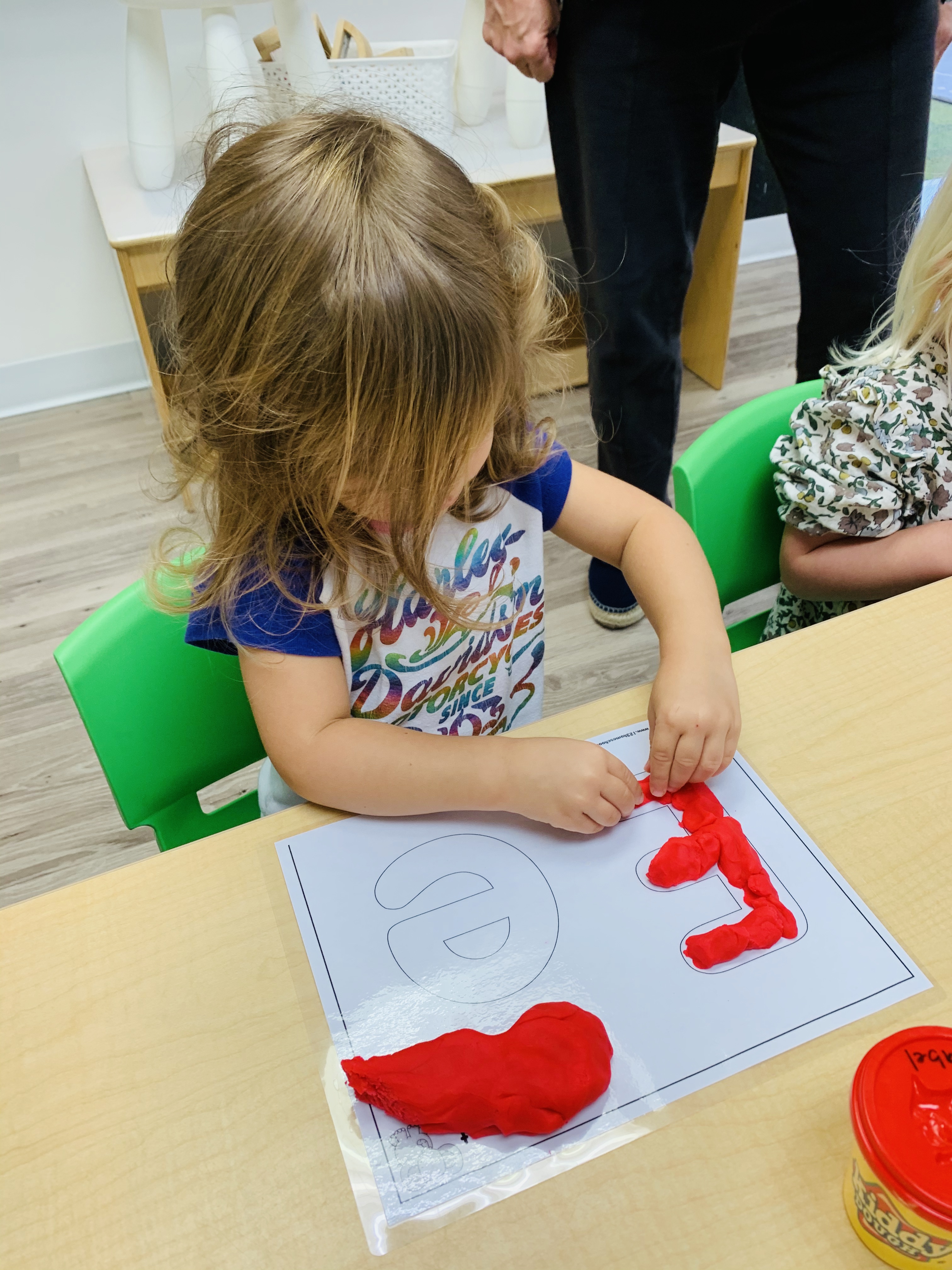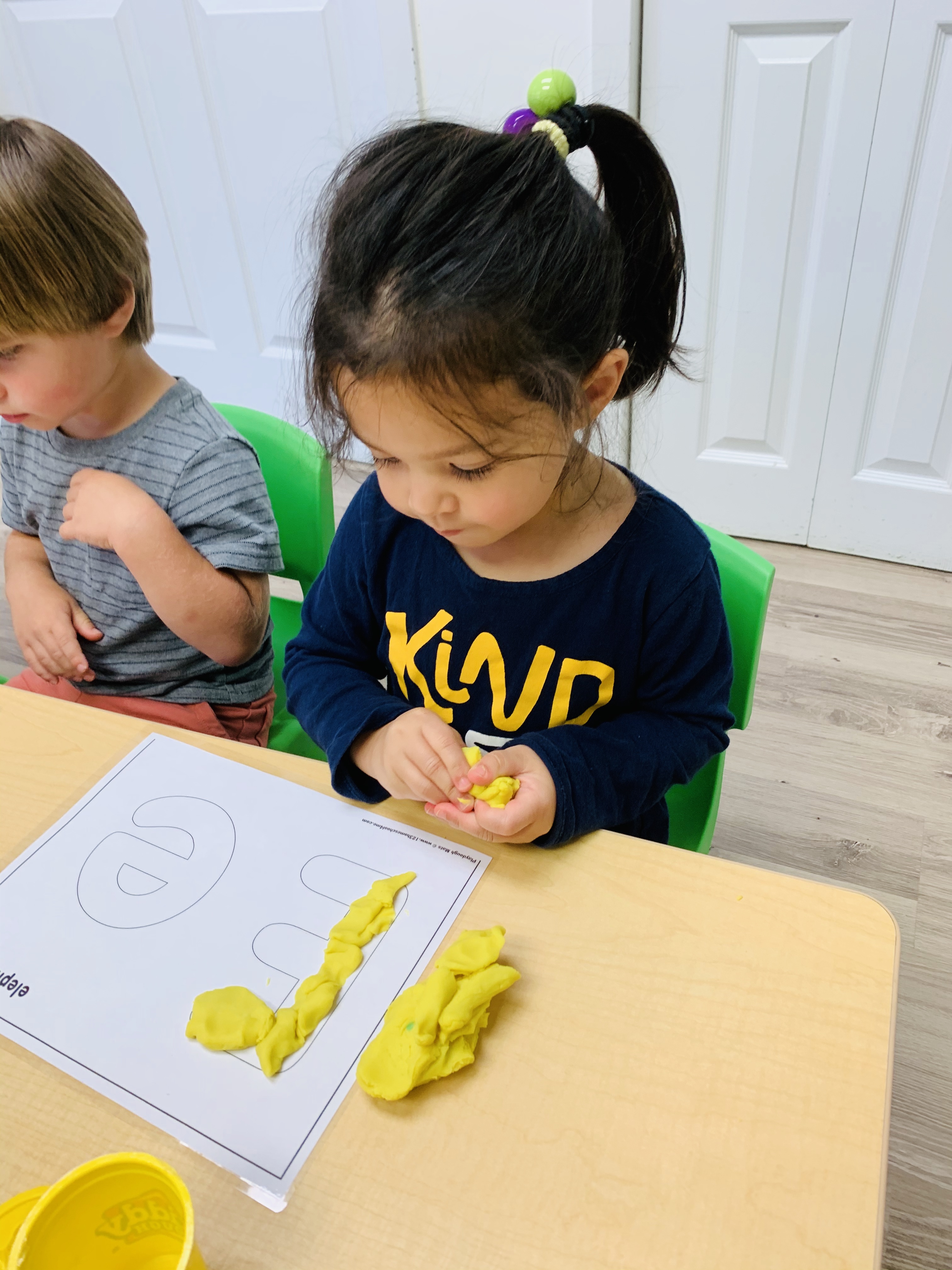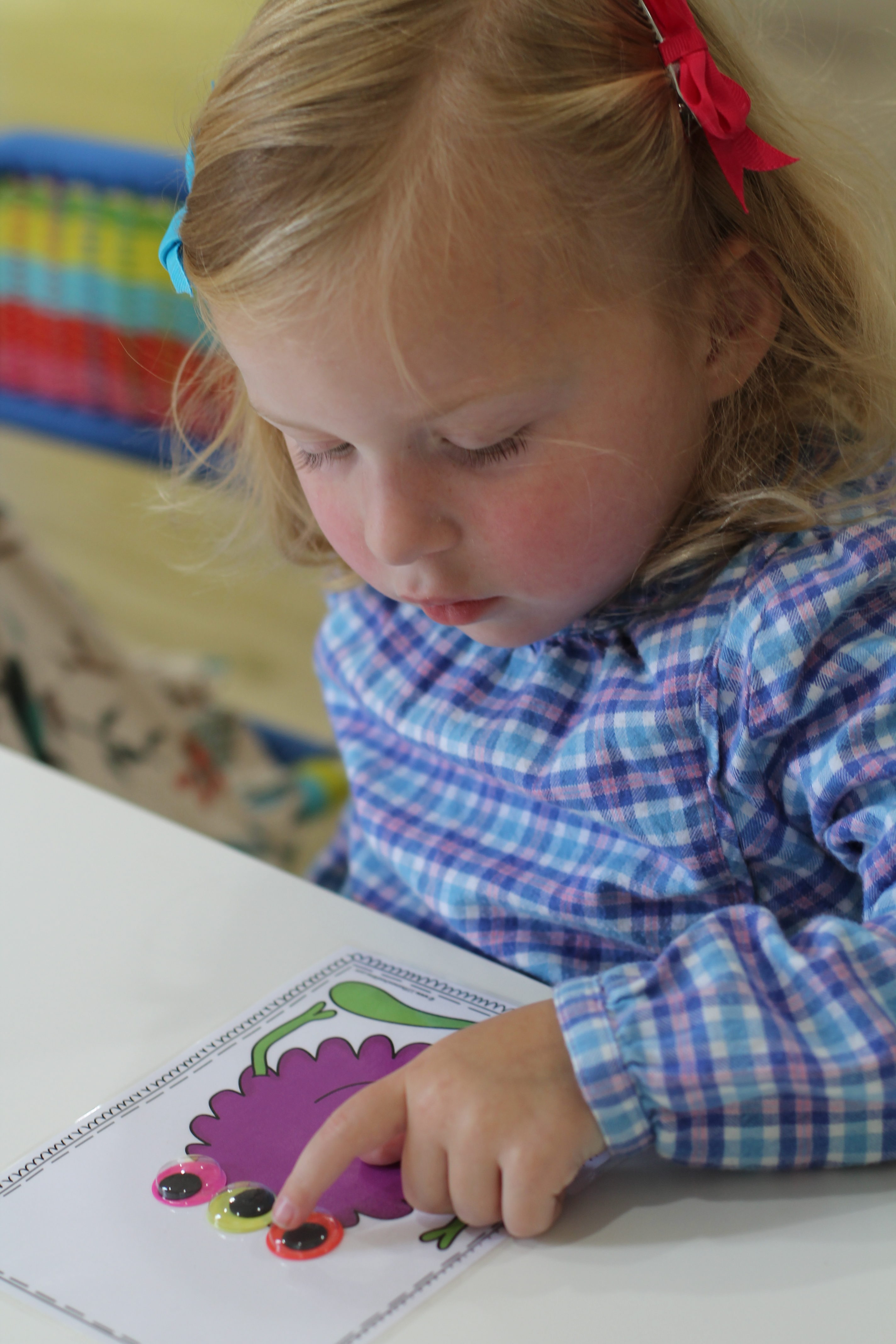 For St. Patty’s Day activities we talked about rainbows and the order of the colors of the rainbow. We also did a shamrock letter match. The students used stickers with letters on them and matched them to stickers on their shamrock.