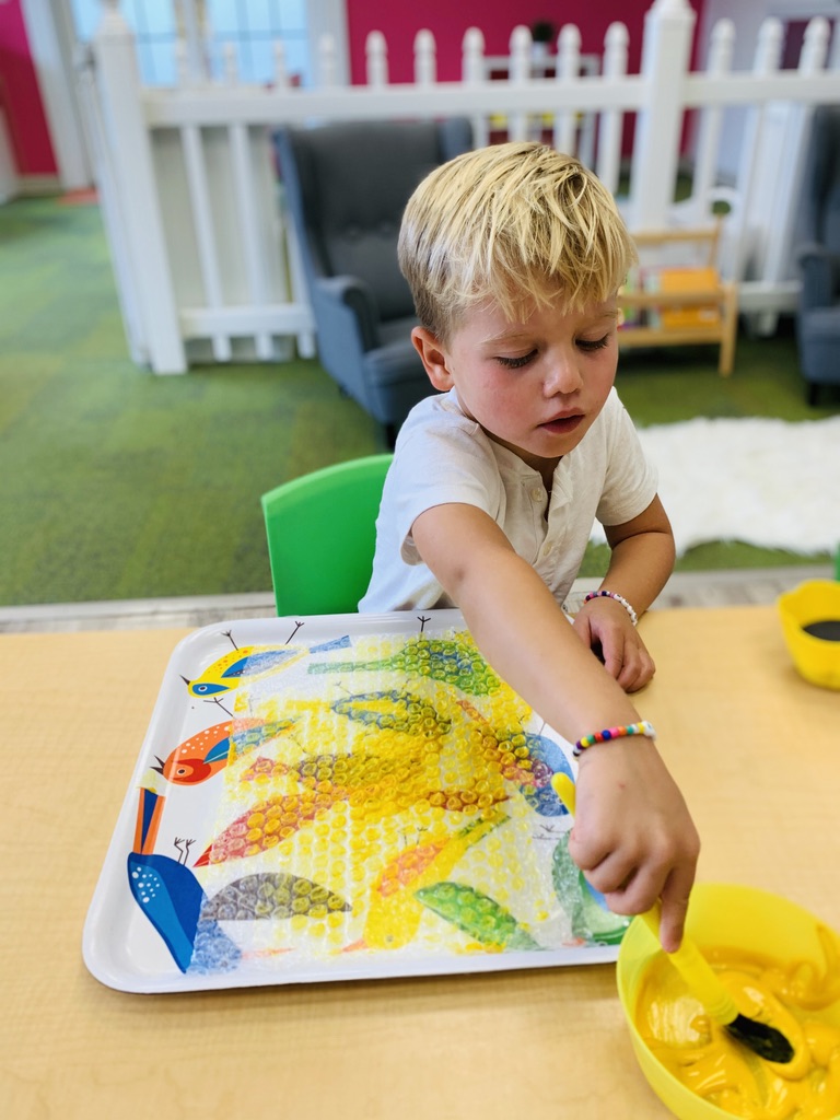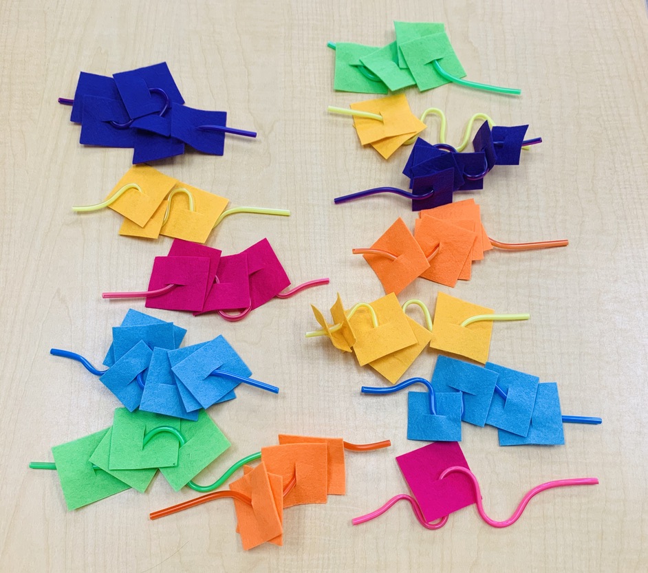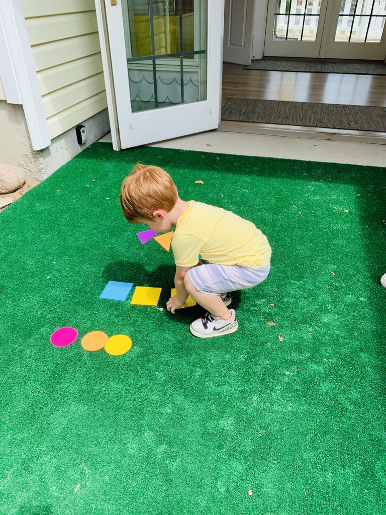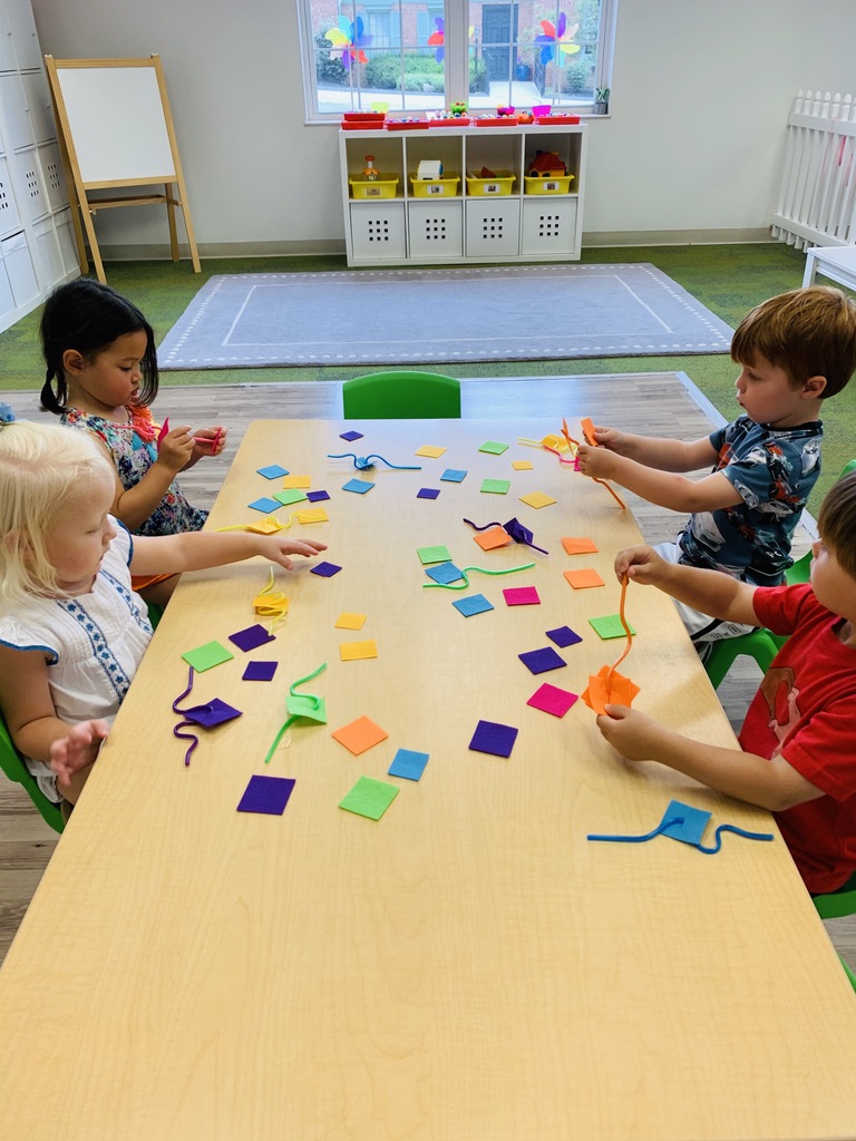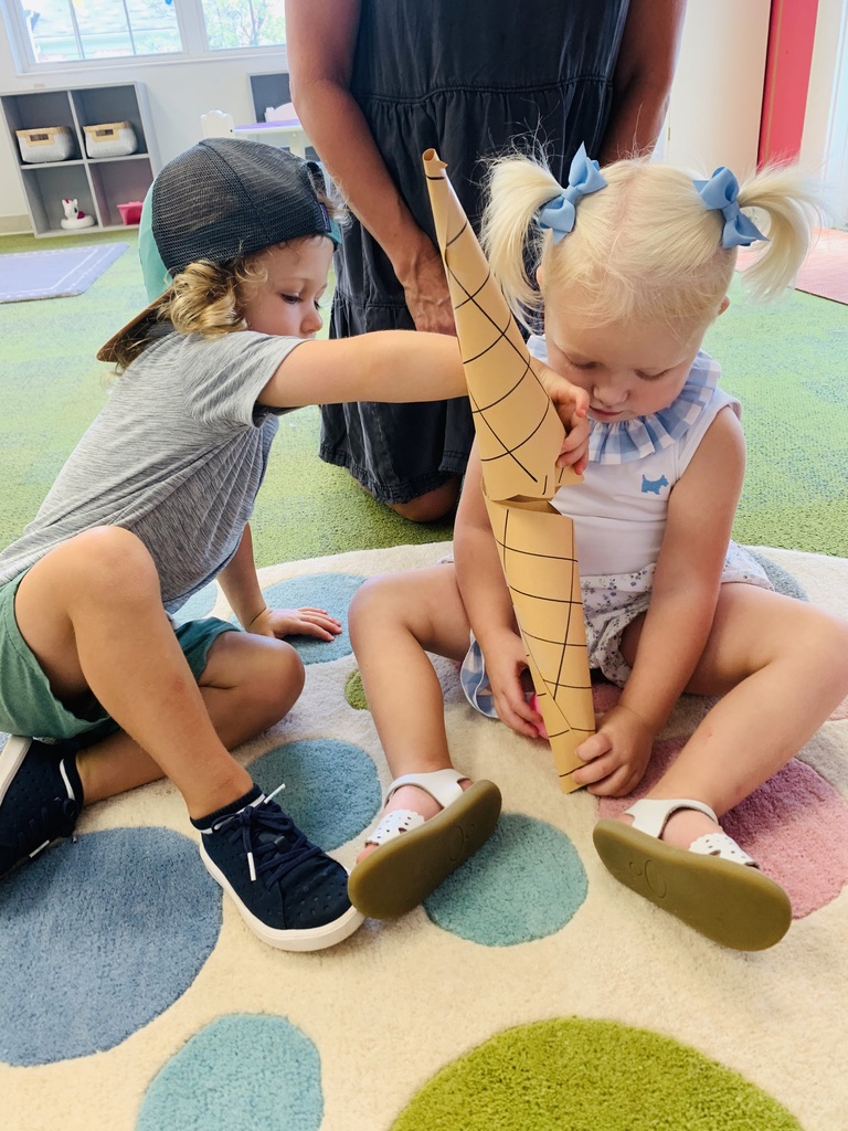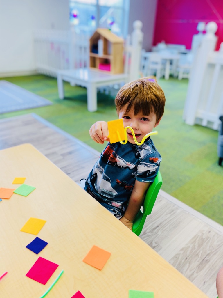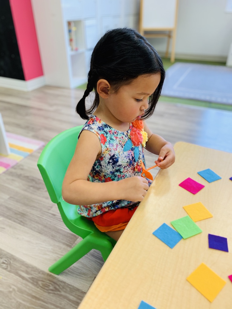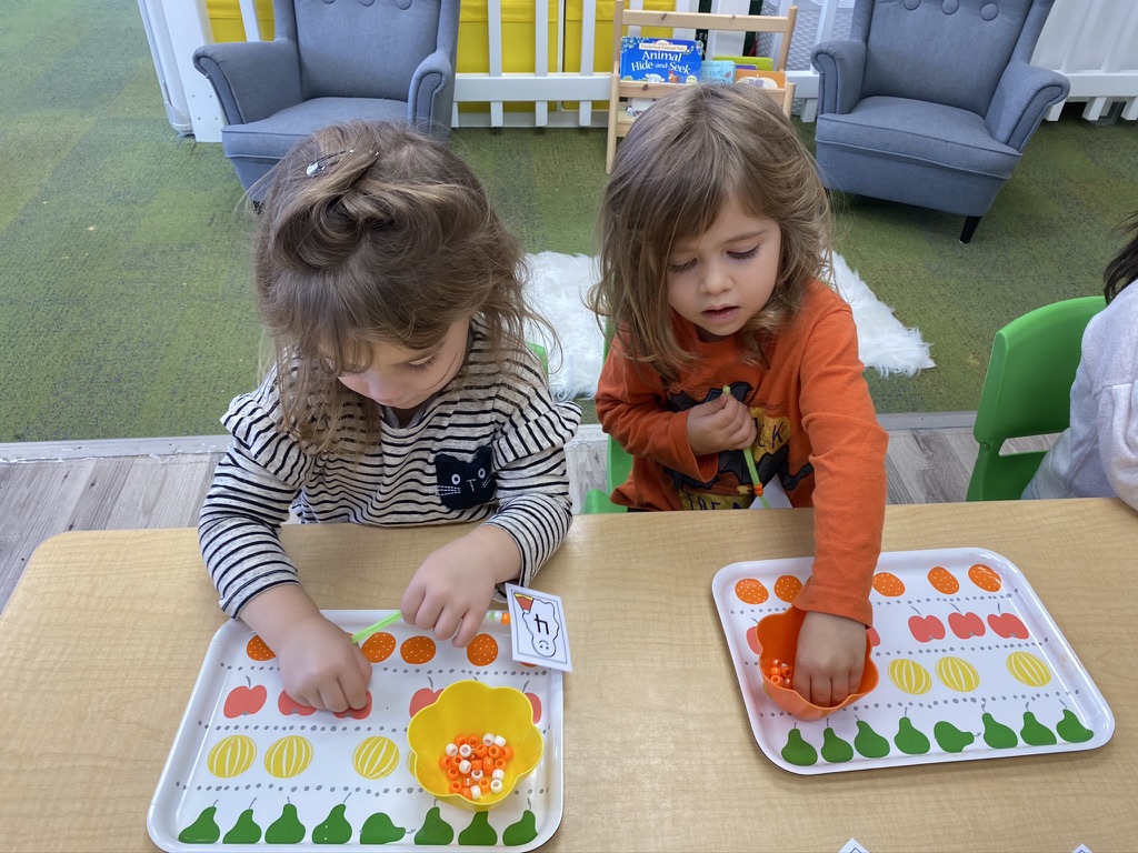 For St. Patty’s Day activities we talked about rainbows and the order of the colors of the rainbow. We also did a shamrock letter match. The students used stickers with letters on them and matched them to stickers on their shamrock.