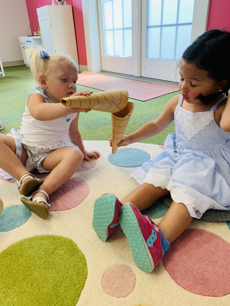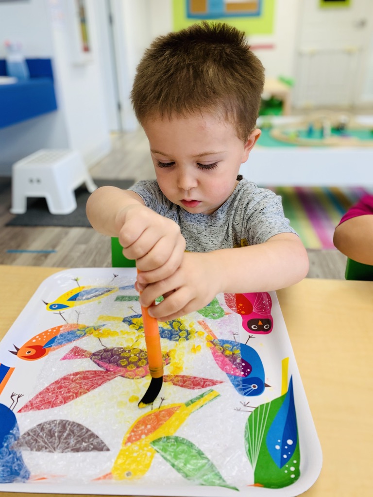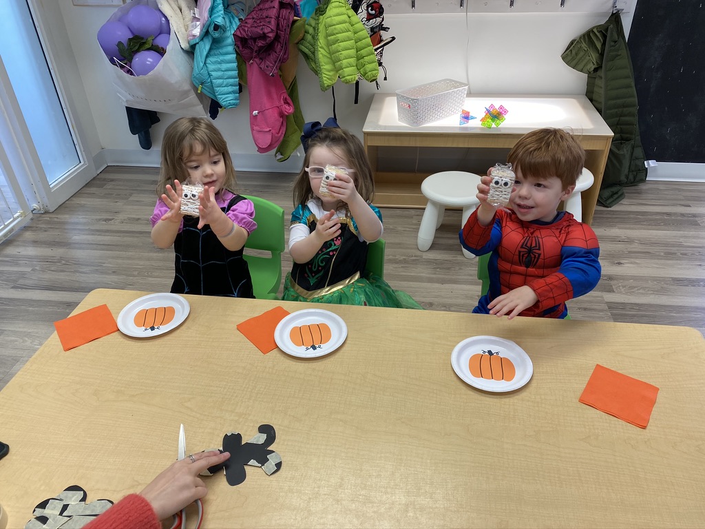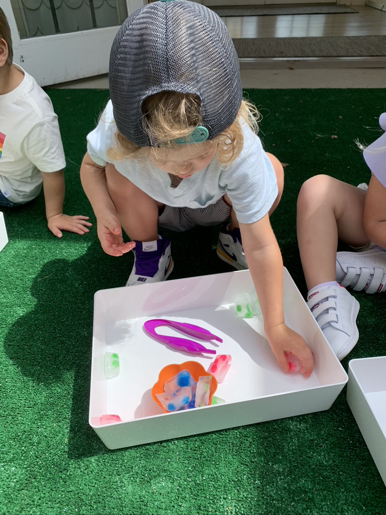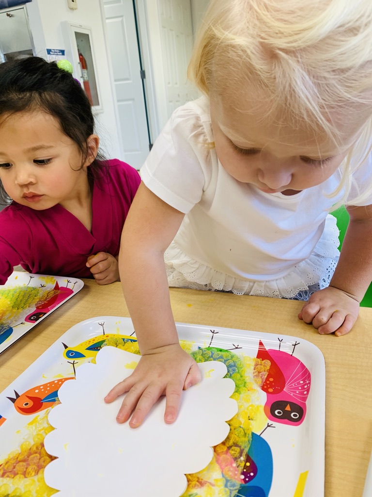 During the month of March we studied the weather and rainbows. We talked about how clouds are formed and did a science experiment to learn how rain falls from the clouds. Then we did a rainy day art project and talked about what we liked to do on rainy days. A lot of our little learners said they liked to jump in puddles. We did a pretend puddle jump and jumped on puddles with different letters on them!