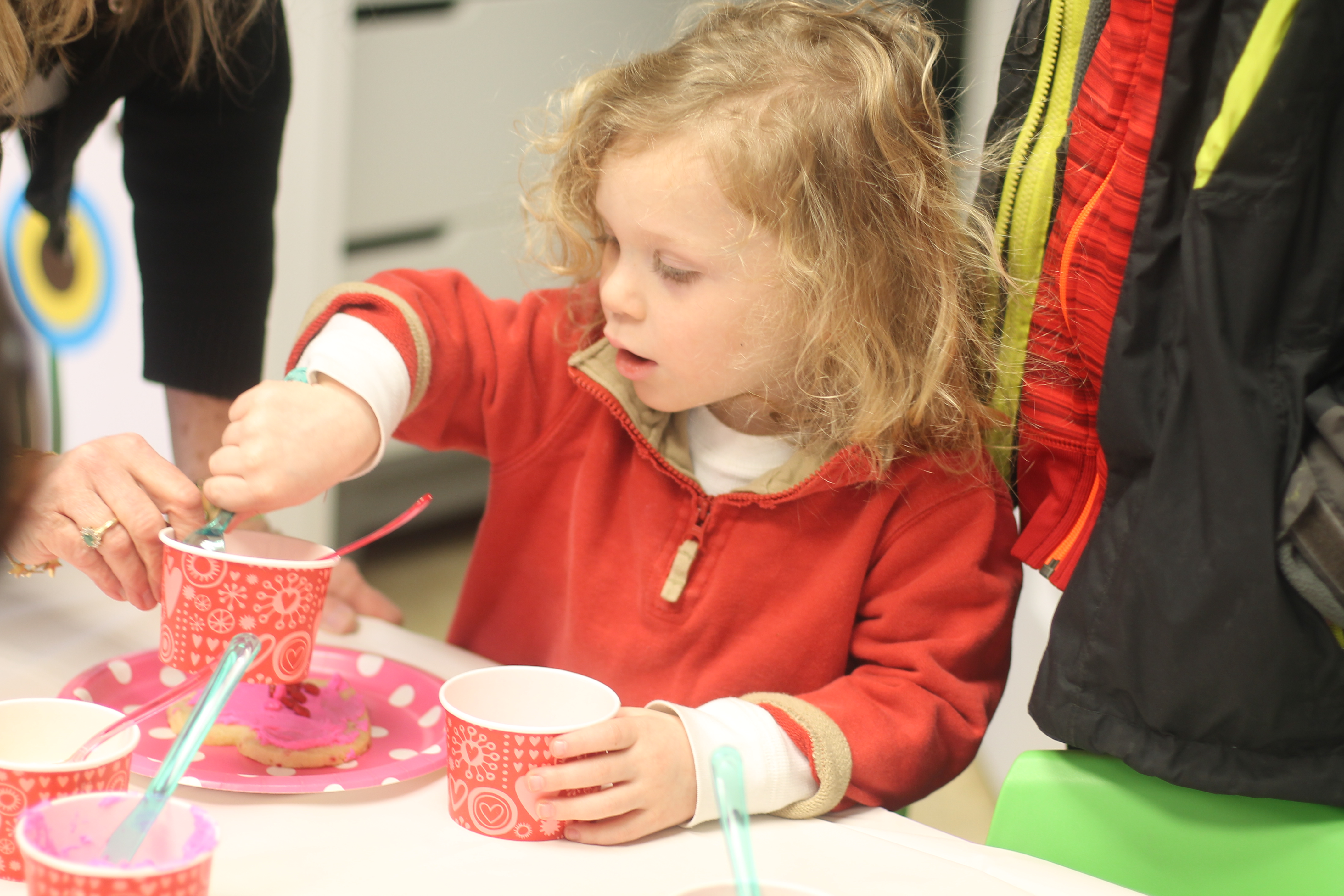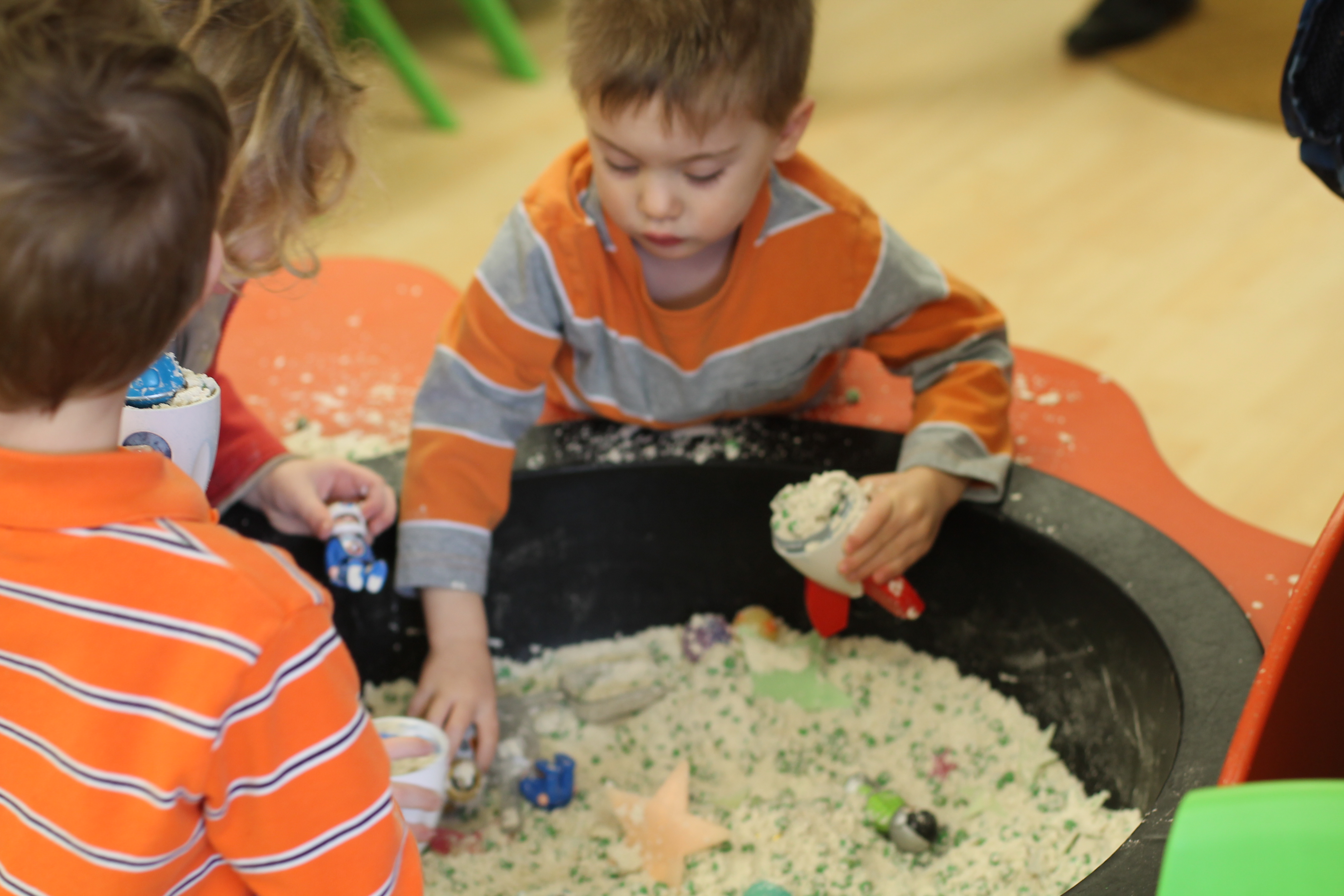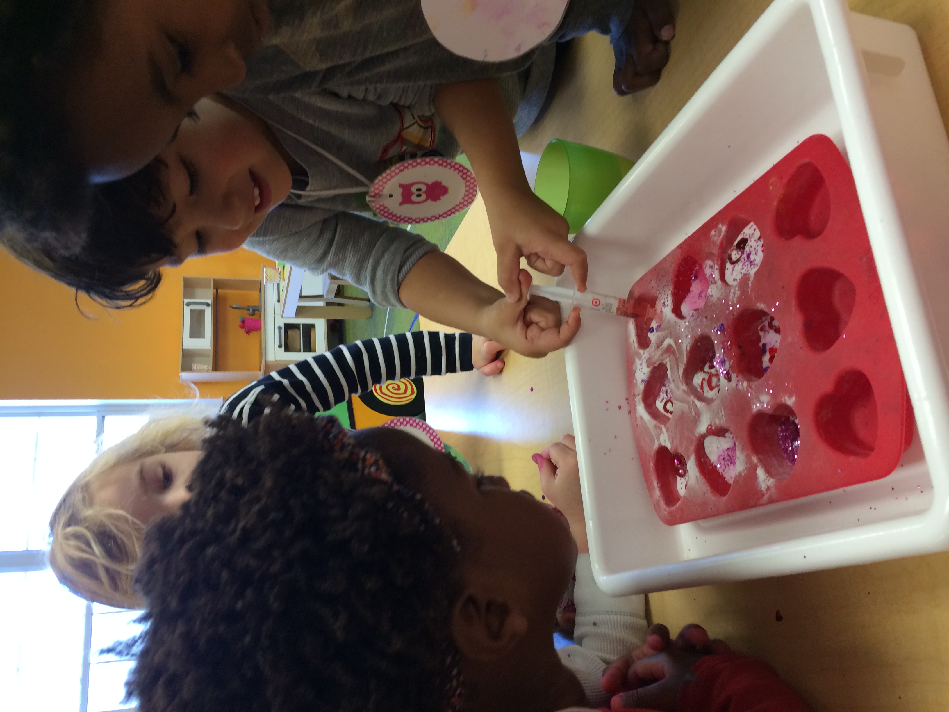 We practiced forming the first letter in our names with paint and Q-tips.