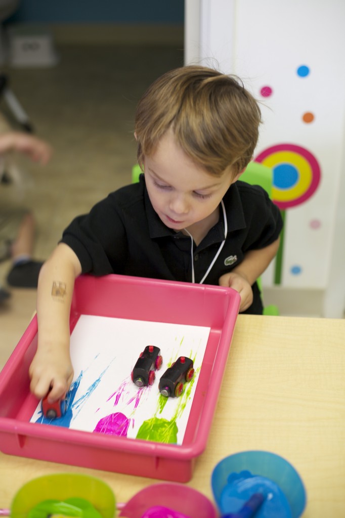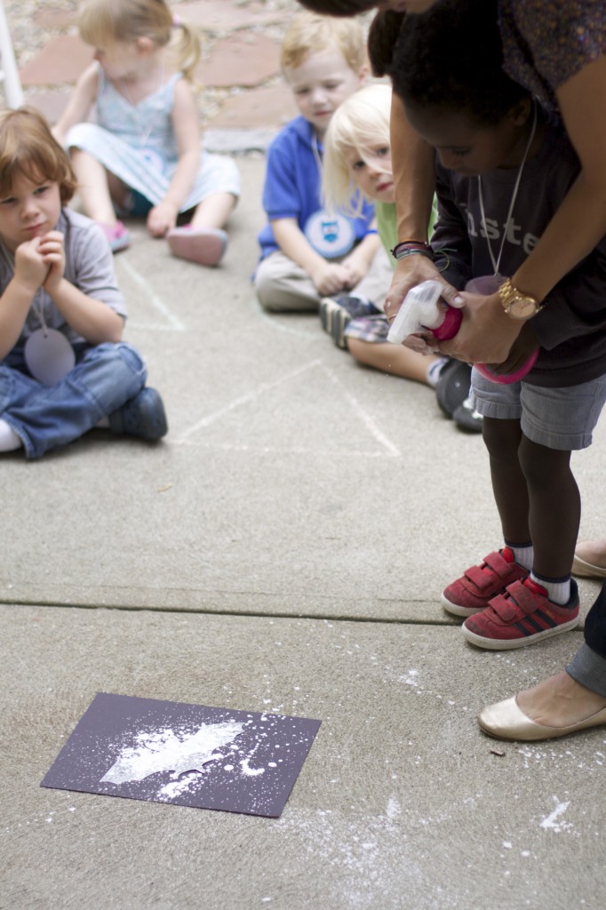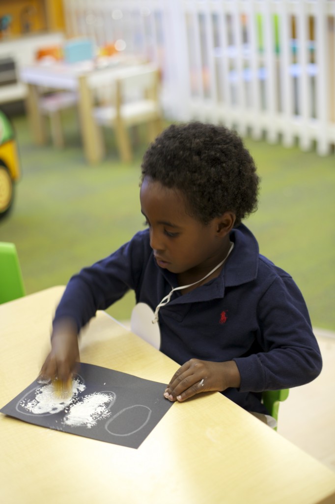 We started our “Handwriting Without Tears” curriculum this week! Our first activity was introduced in whole group time and practiced in small groups. The children had to practice forming the letters “A” and “B” with magnetic wood pieces. We talked about “big lines” “curved lines” “small lines” etc. This helps the children break down writing out a letter into simple steps. For an “A” we say: “Big Line, Big Line, Little Line!”