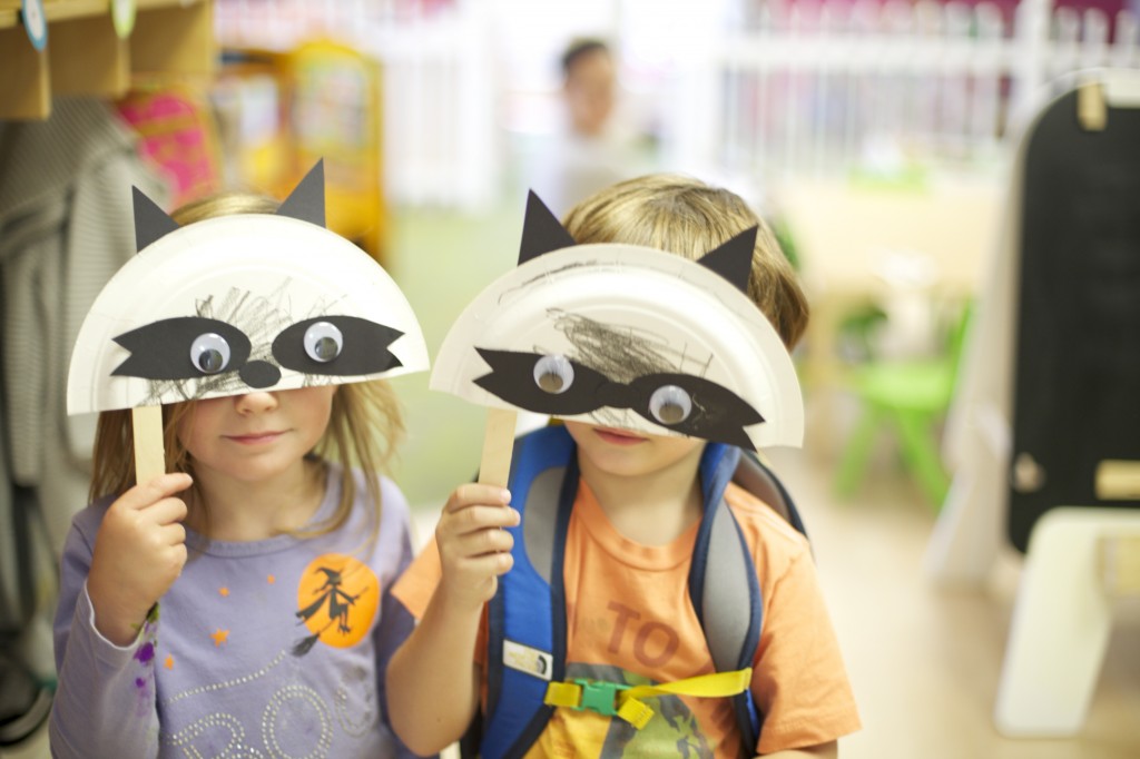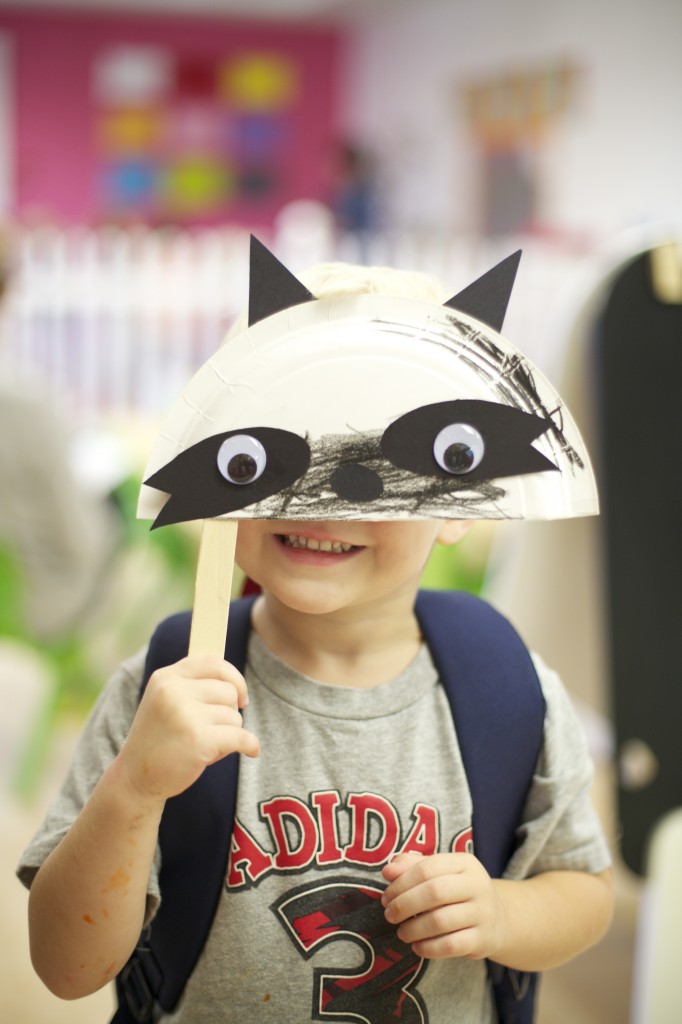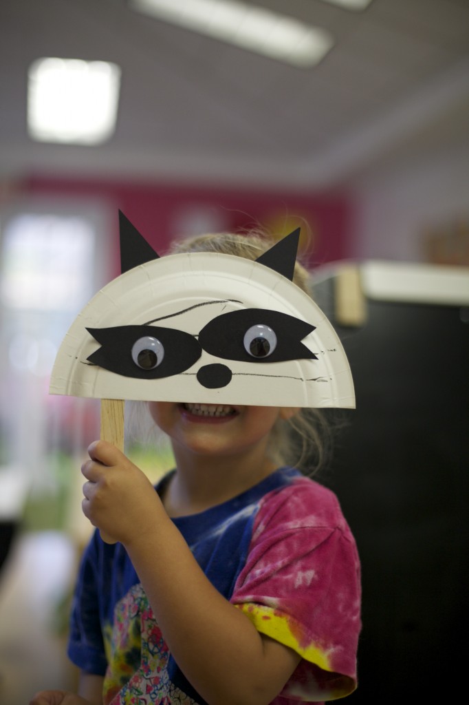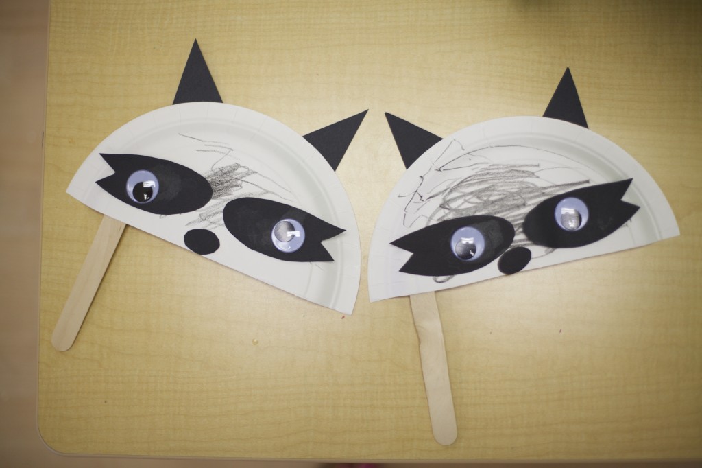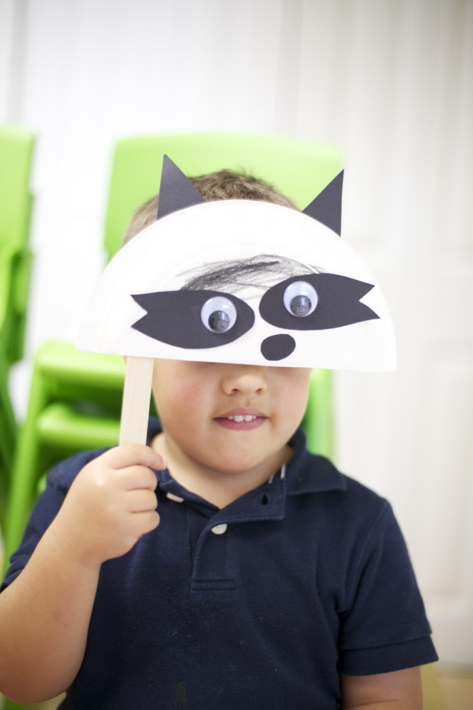 We continued our study of nocturnal animals by learning about raccoons! To go along with our theme, we made our very own raccoon masks! One of my objectives for the children this month is using a glue stick…so this project involved a LOT of glue! This project helped them build their fine motor skills, practice eye-hand coordination, and follow step-by-step directions. Check out the fun we had making them and using them!