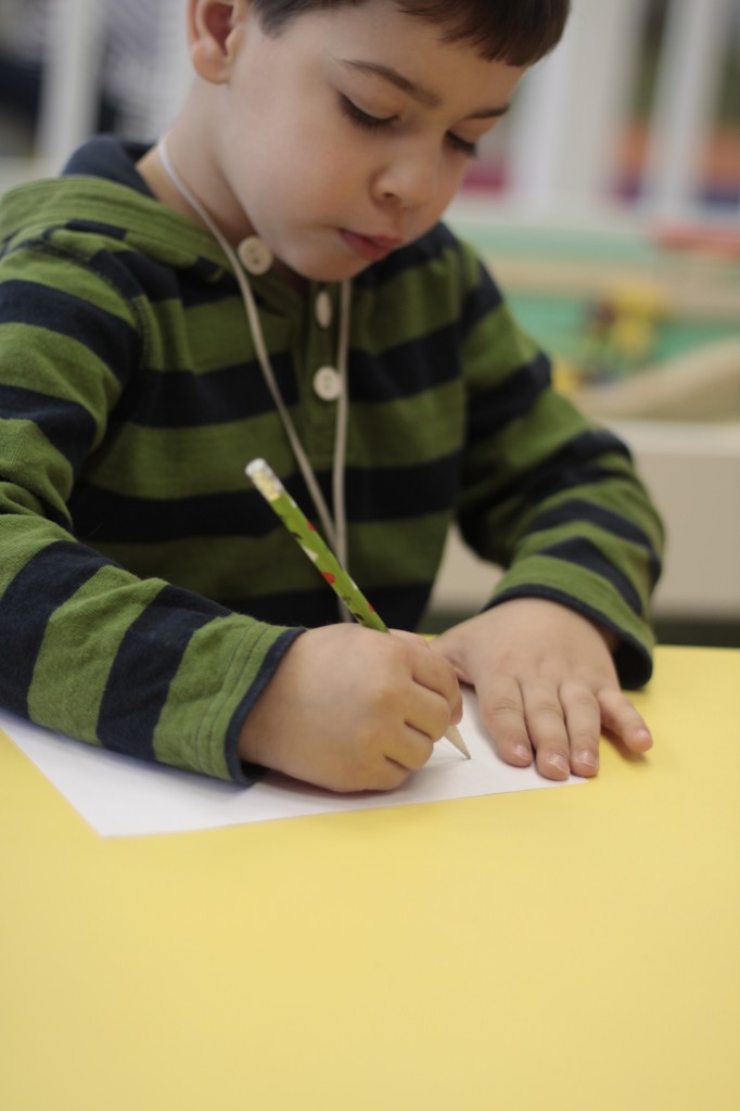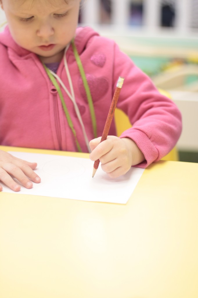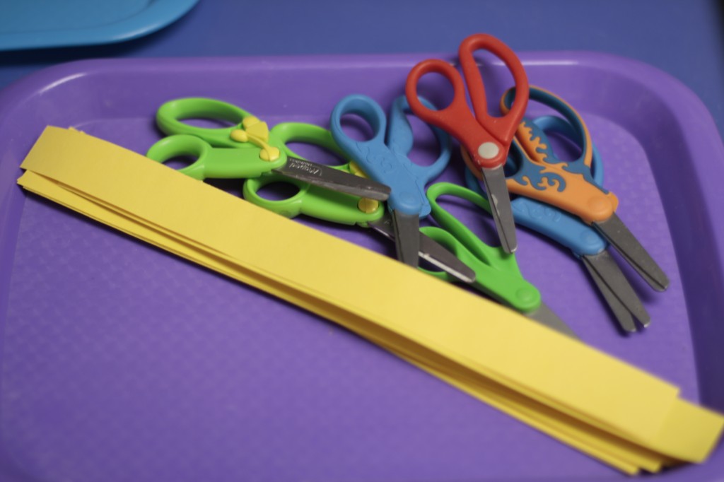 A very important fine motor skill is using scissors. The children practiced cutting paper strips and holding scissors.