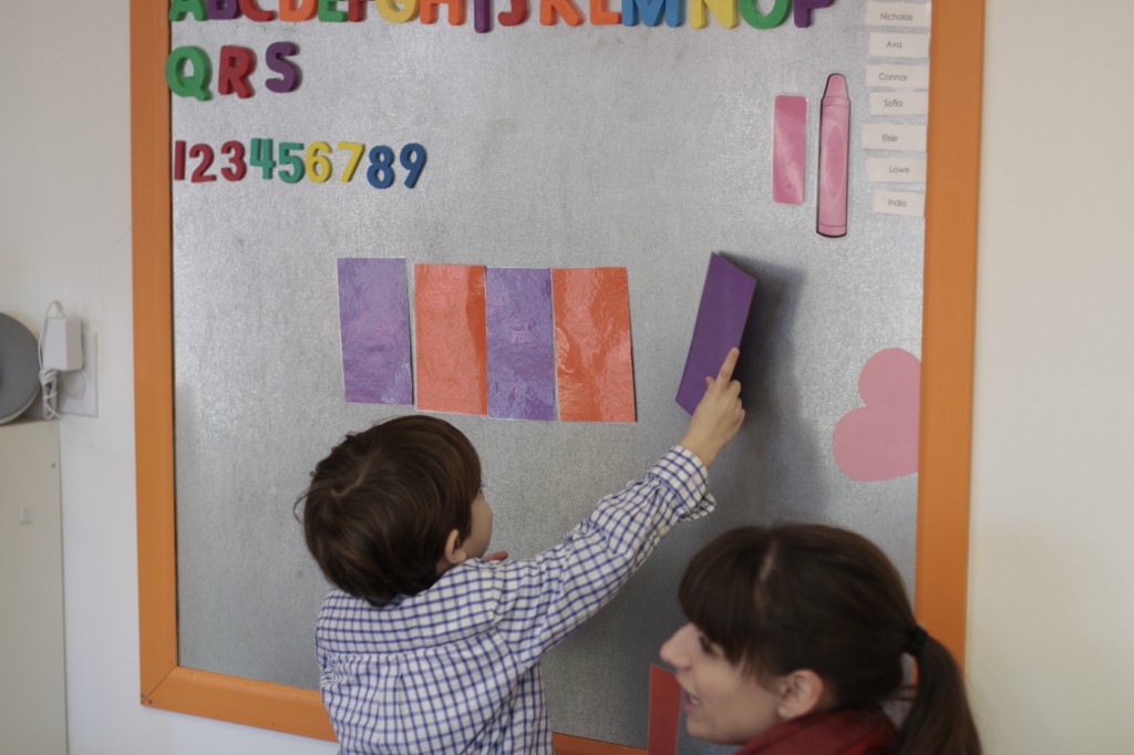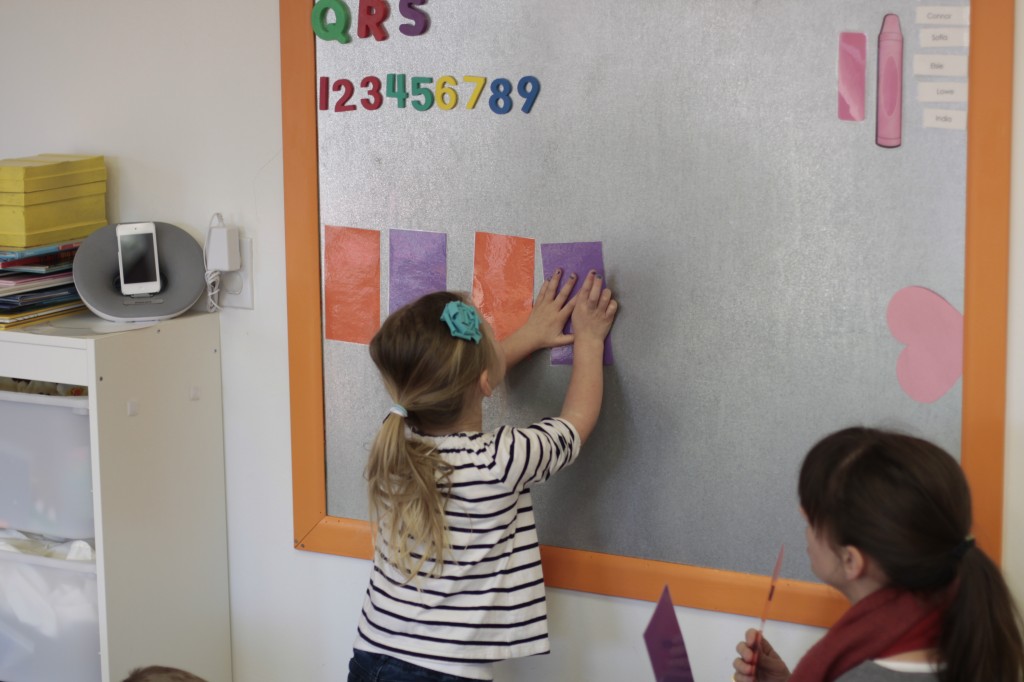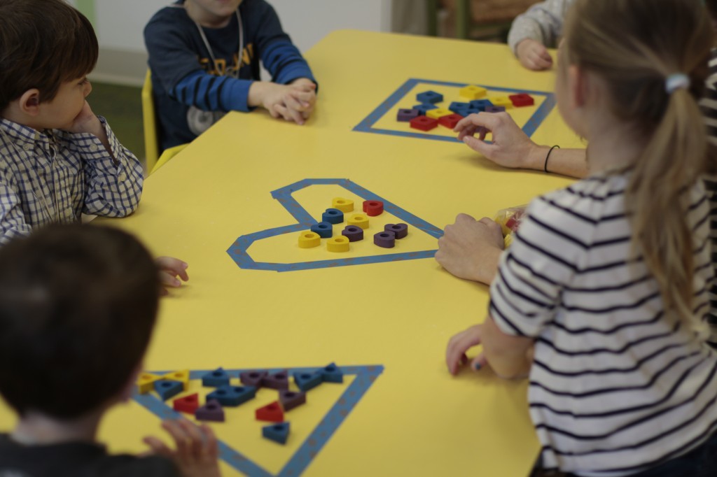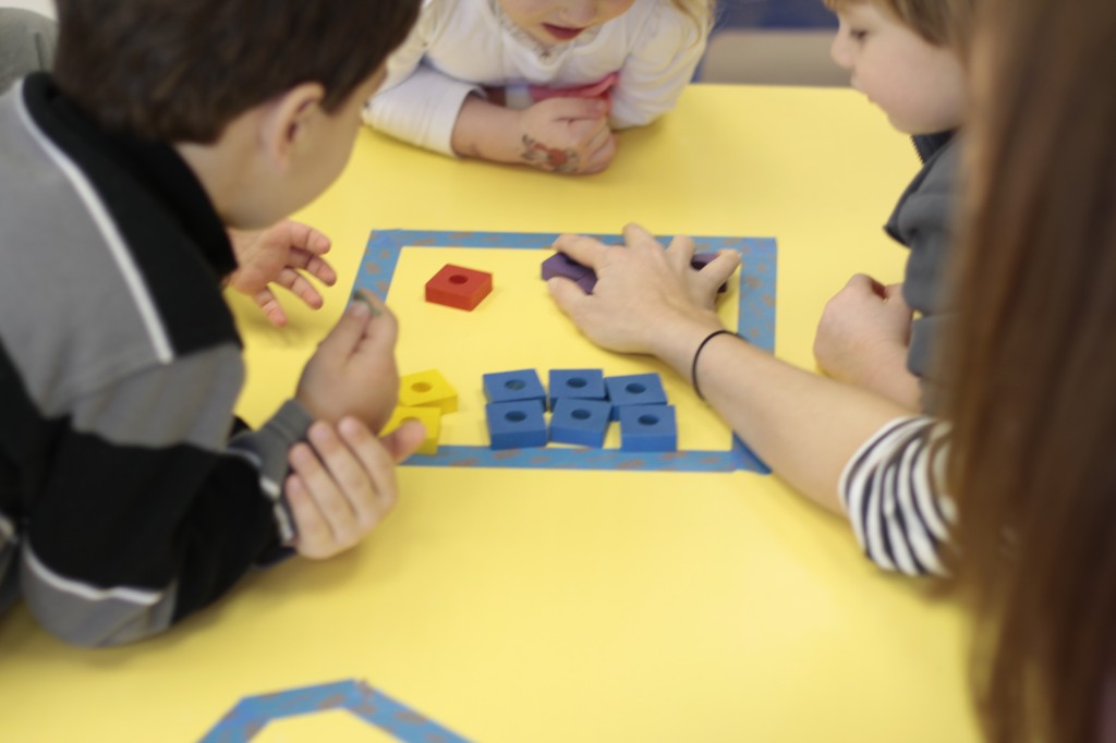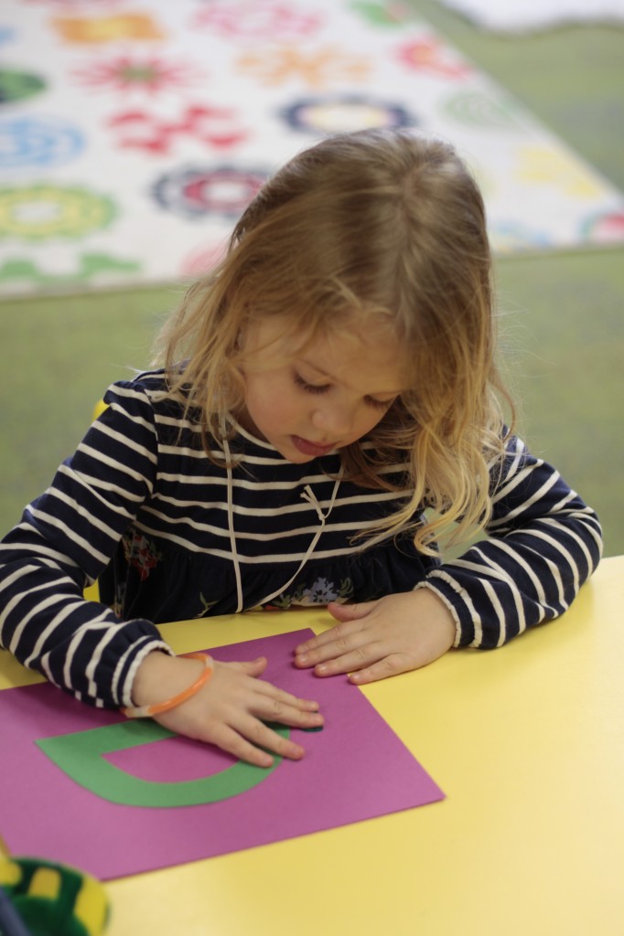 This group was another focus on cognitive development as the children worked on creating a pattern using colored rectangles.