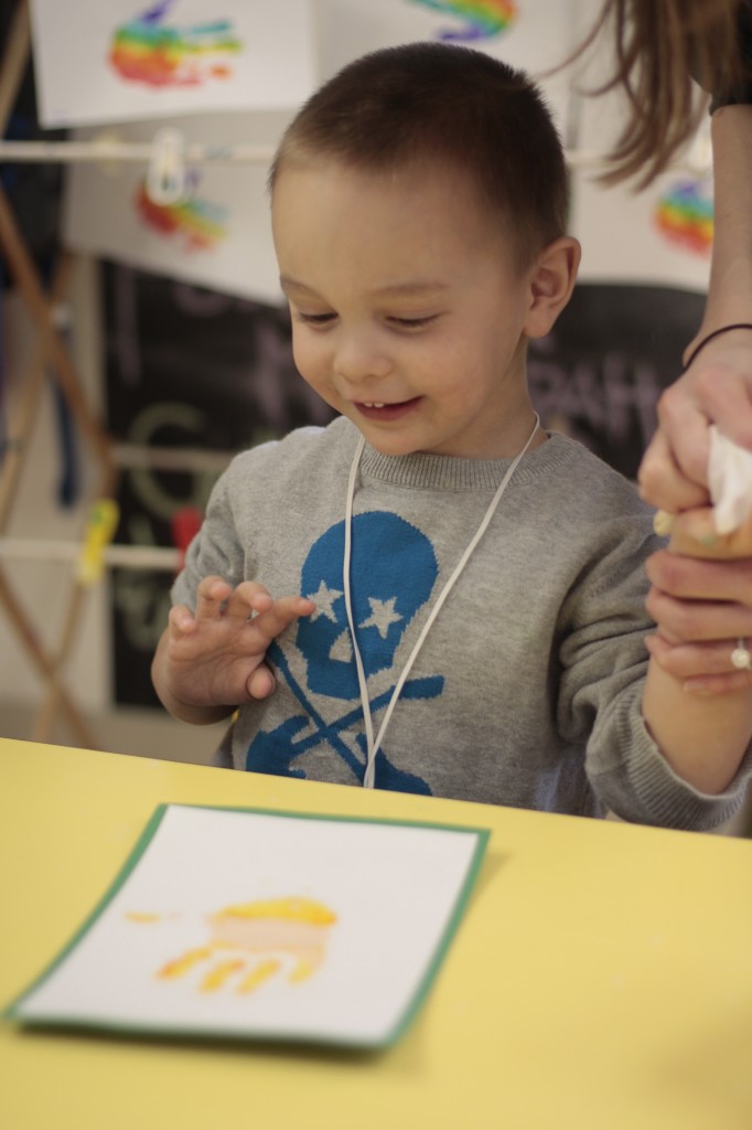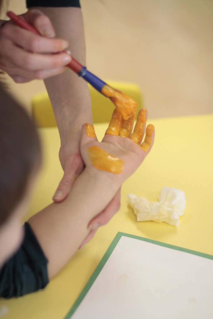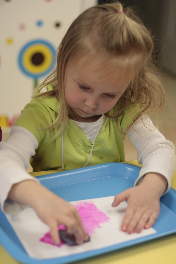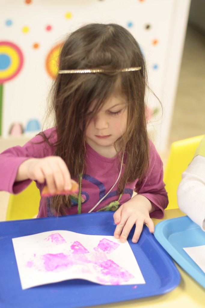 In this group, the children painted with sponges to make “S” is for “sponge painting” for our alphabet book (which is SO CLOSE to being finished!!!). They used their fine motor skills and eye-hand coordination to create their textured painting.