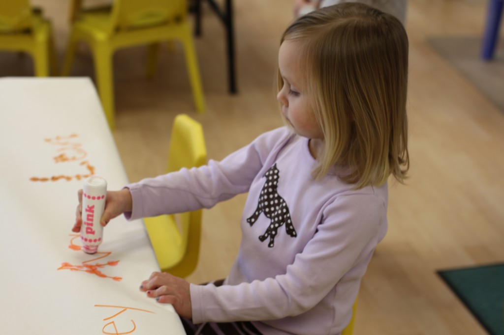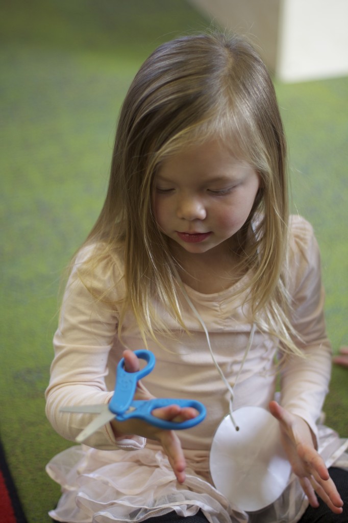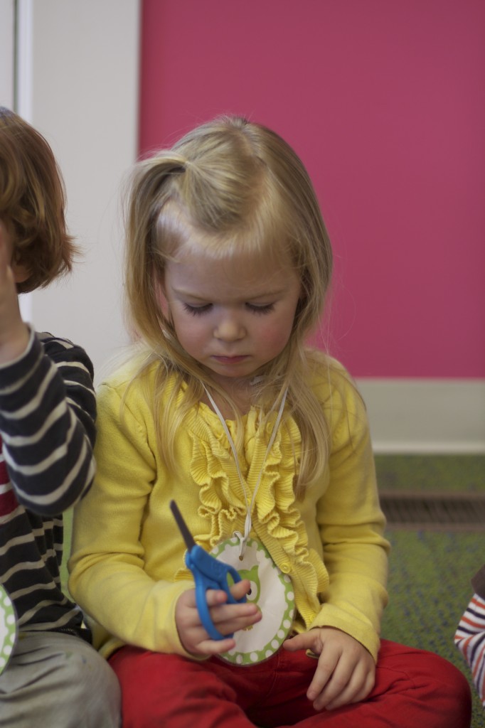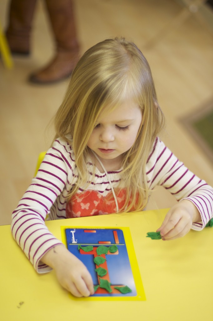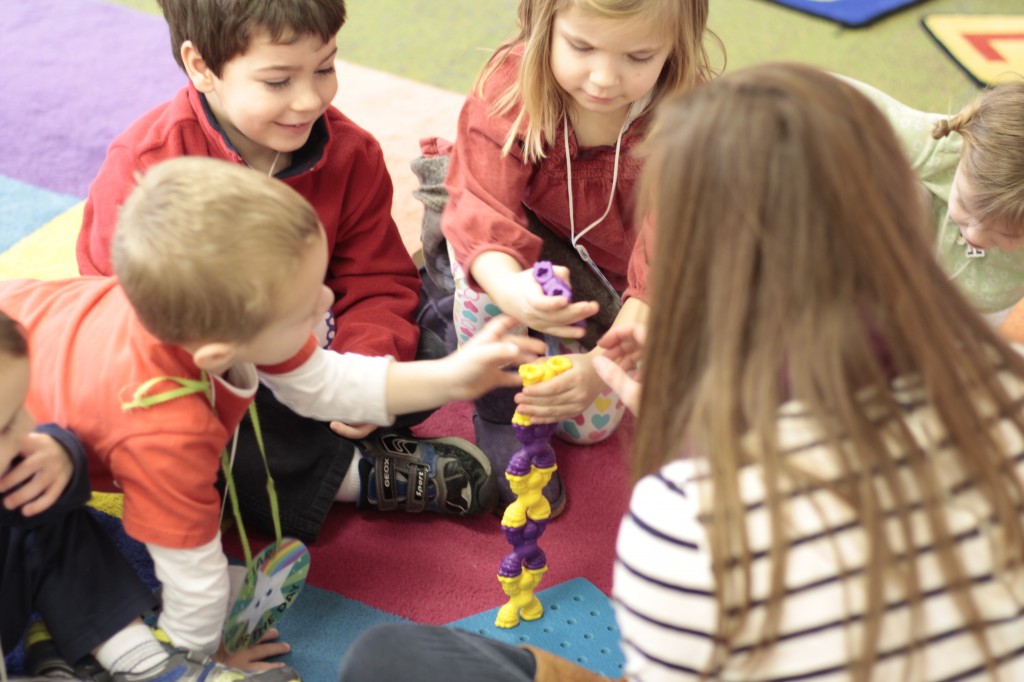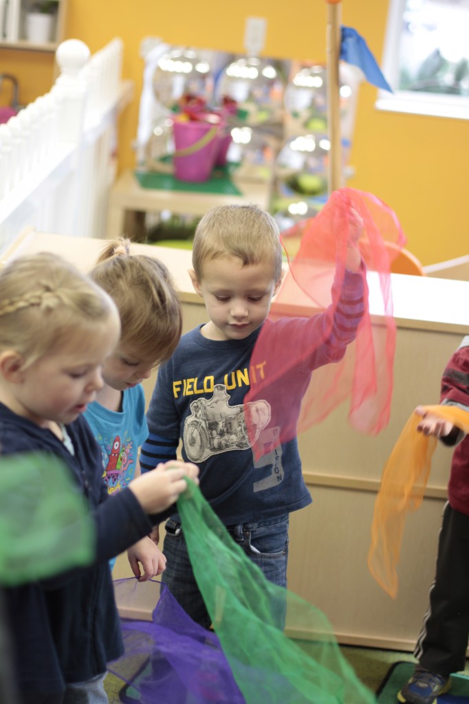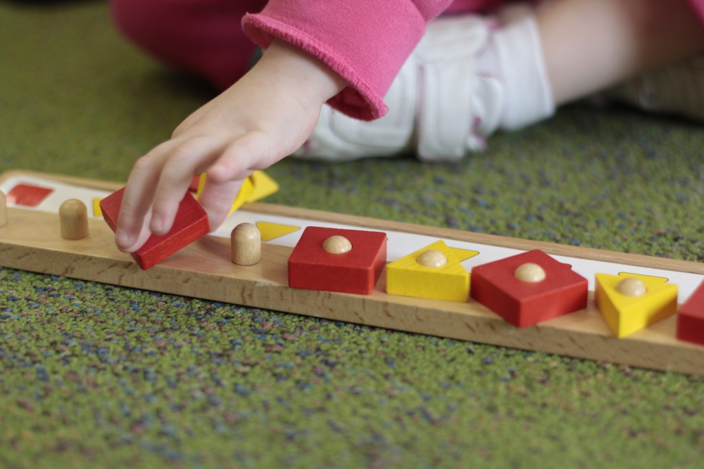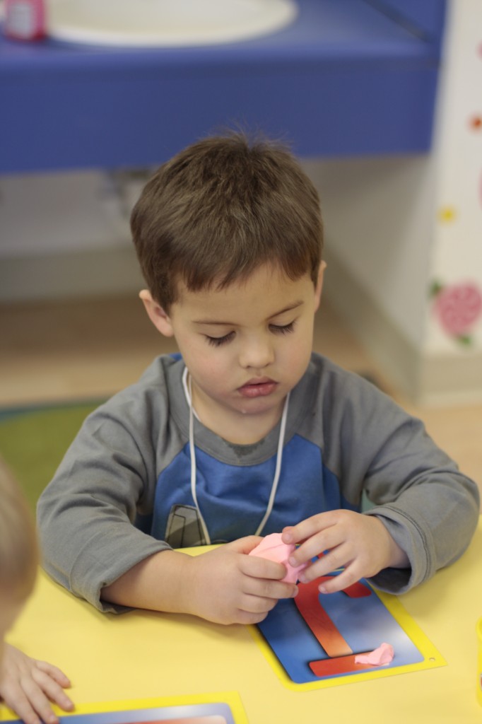 Today we started two new things! 🙂 During whole group time, I introduced the class to the clip system –which is used in the preschool room– for choosing a center. The children are to choose a center, take a clip off of the sign, clip it onto their shirt/dress, and play at that center. When they are finished, they clean up their mess, remove their clip, place it back on the sign, then choose a different center with clips available. This keeps the room calm, and the popular centers are not overcrowded. After I talked about how the system worked, I had the children, who are in the preschool room in the morning, demonstrate how to put on the clip and remove it when they are finished. The preschool children are now my official “teacher’s helpers” –whether it’s helping the younger children with clips or reminding them to use/take off their clips.