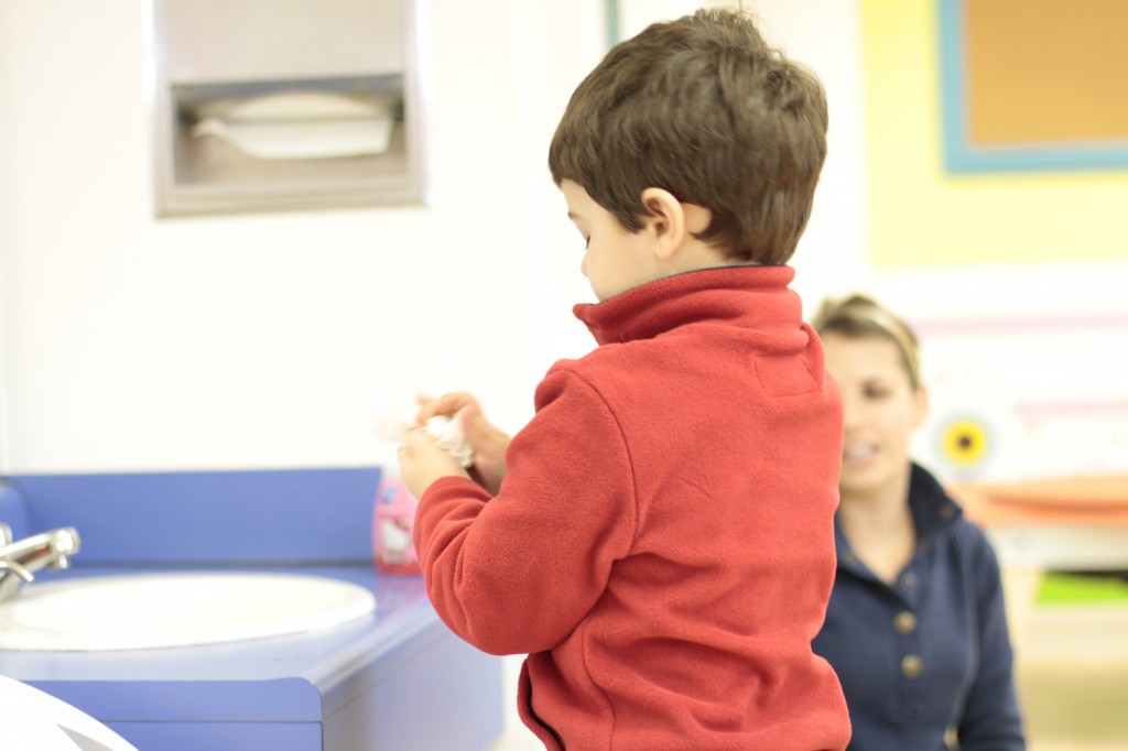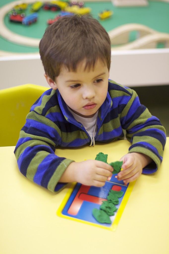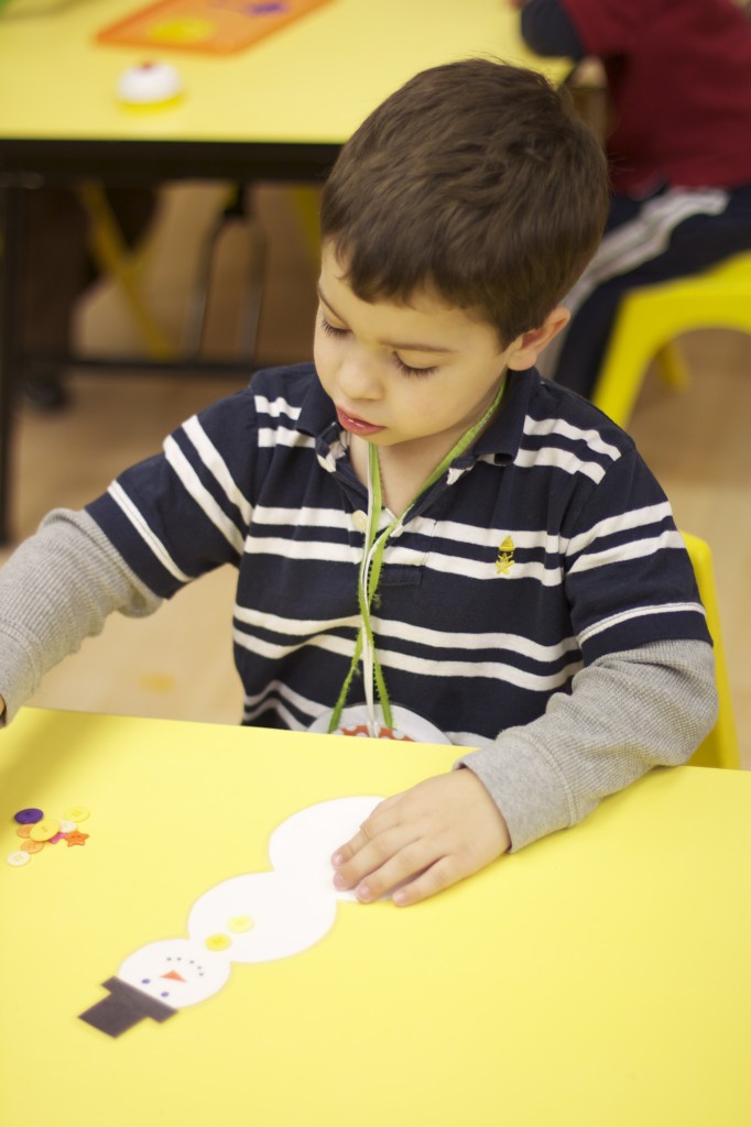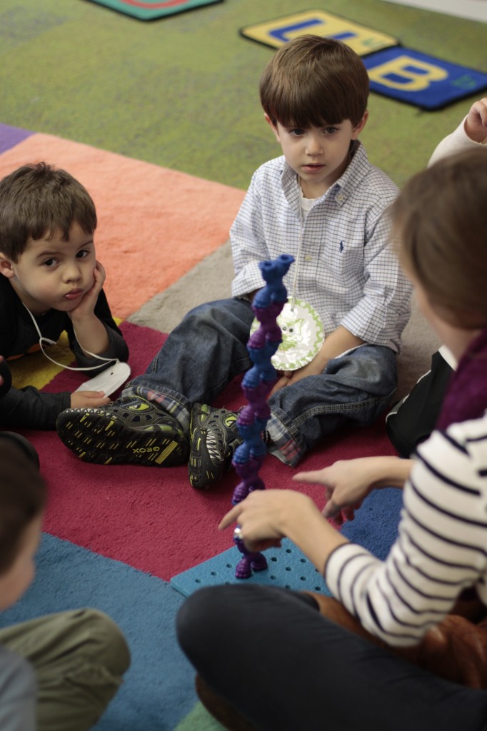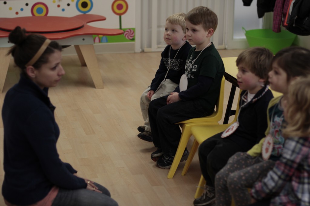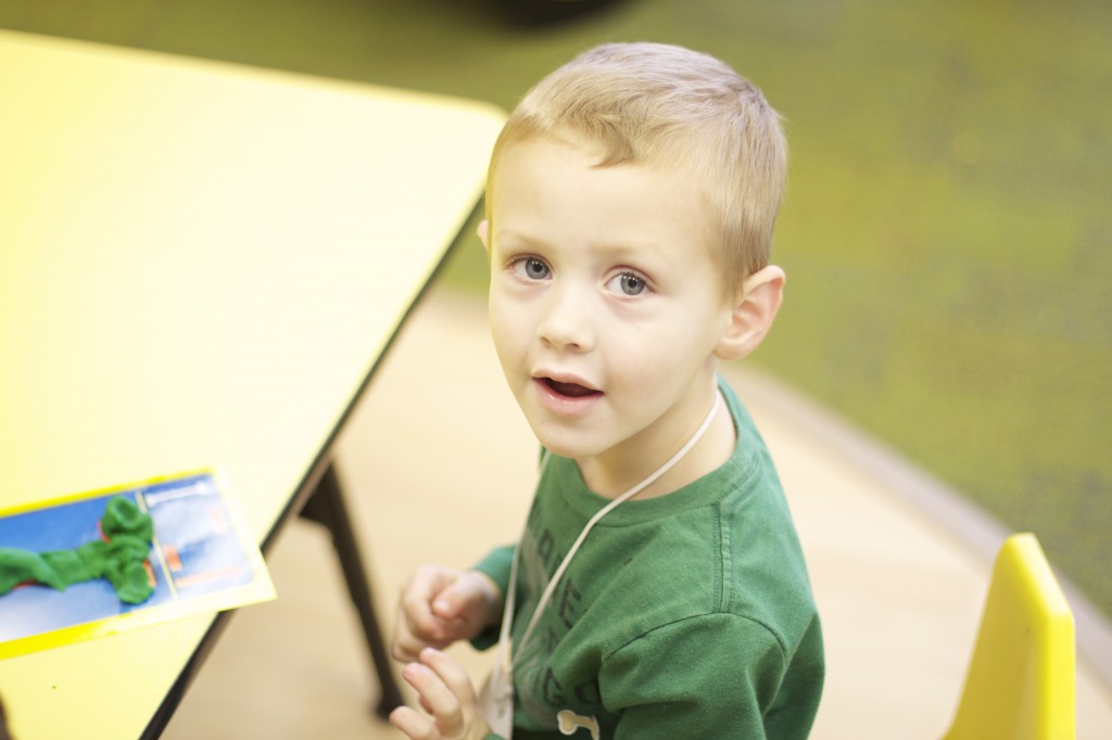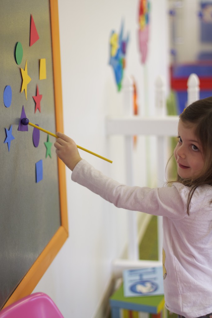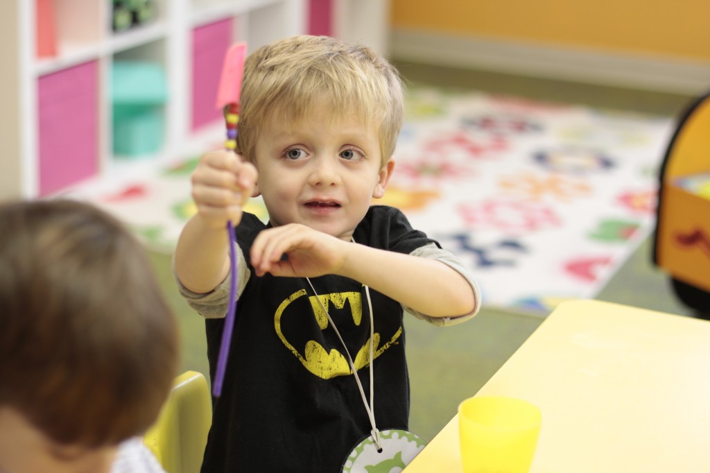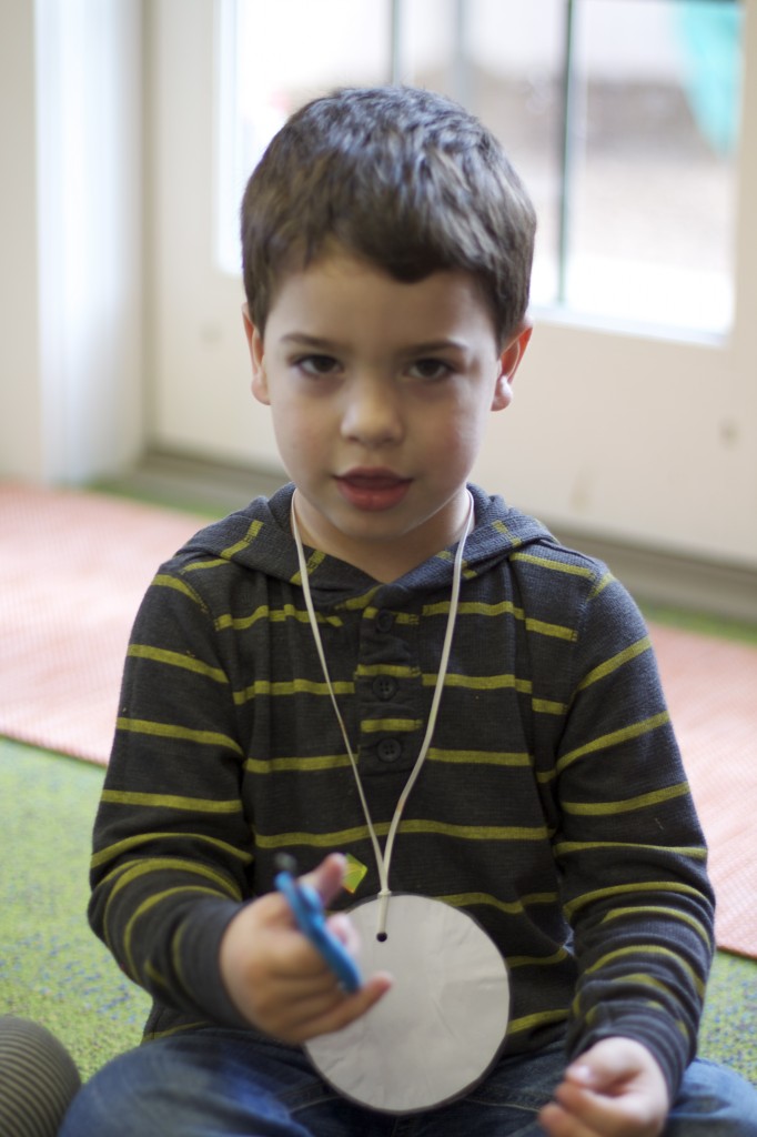 Today we started two new things! 🙂 During whole group time, I introduced the class to the clip system –which is used in the preschool room– for choosing a center. The children are to choose a center, take a clip off of the sign, clip it onto their shirt/dress, and play at that center. When they are finished, they clean up their mess, remove their clip, place it back on the sign, then choose a different center with clips available. This keeps the room calm, and the popular centers are not overcrowded. After I talked about how the system worked, I had the children, who are in the preschool room in the morning, demonstrate how to put on the clip and remove it when they are finished. The preschool children are now my official “teacher’s helpers” –whether it’s helping the younger children with clips or reminding them to use/take off their clips.
