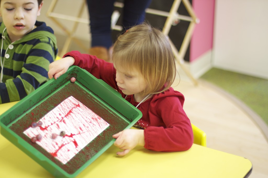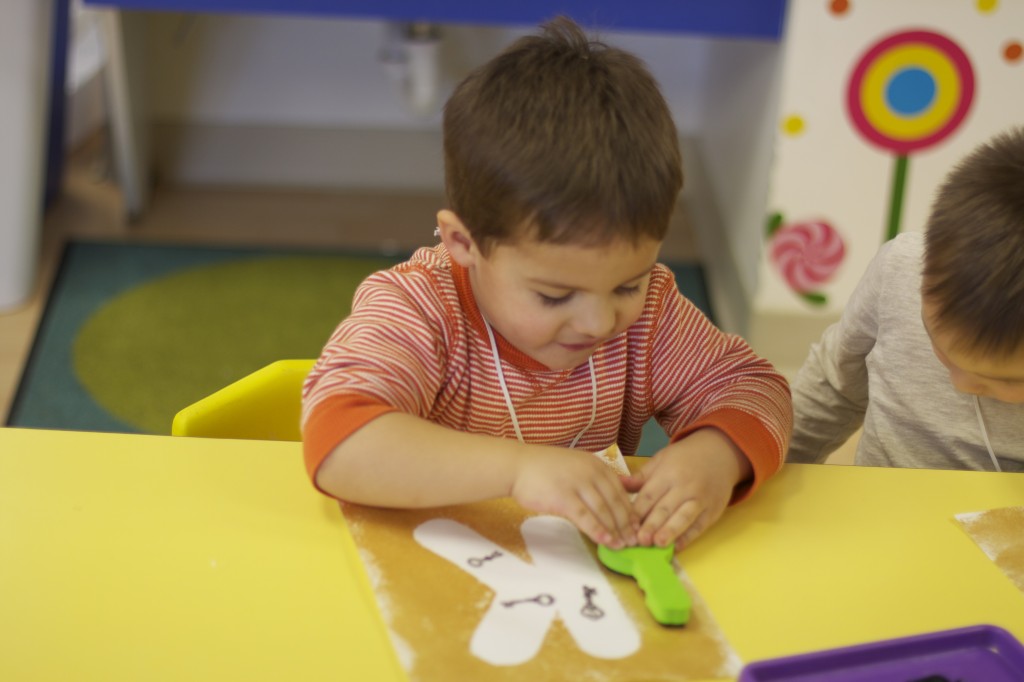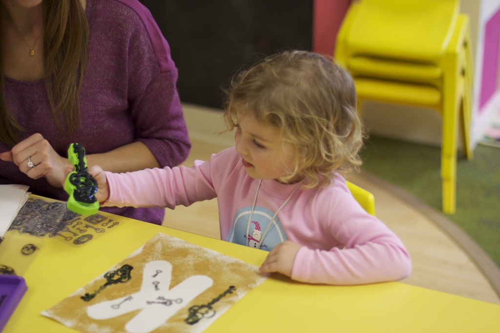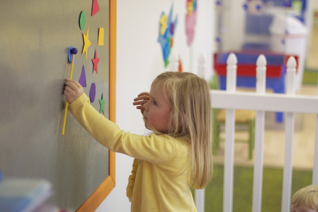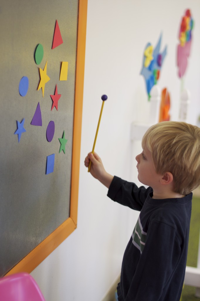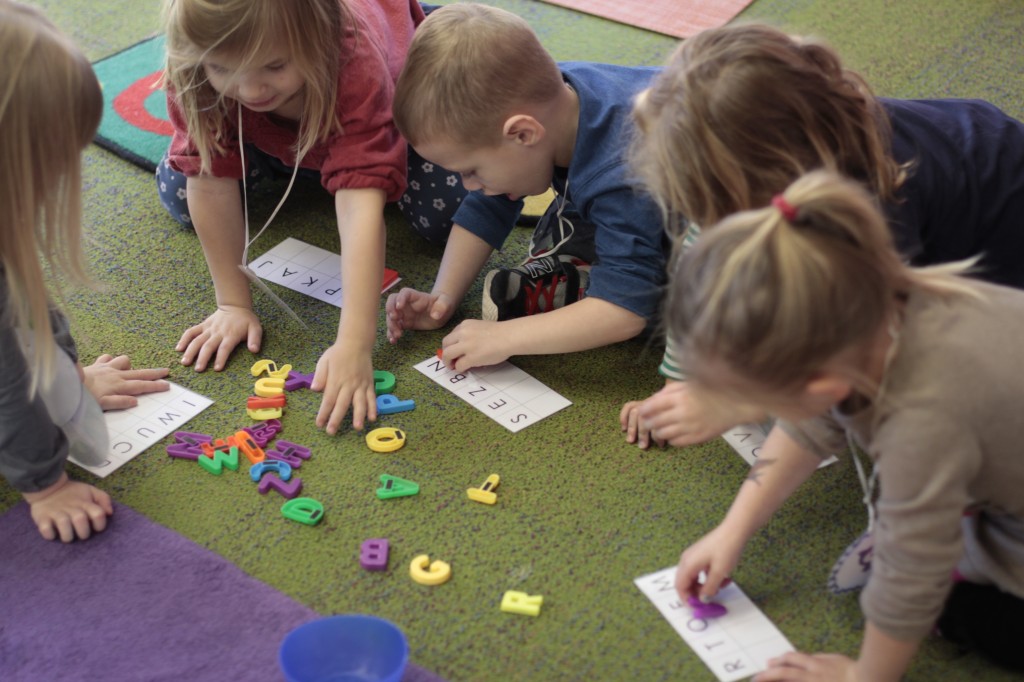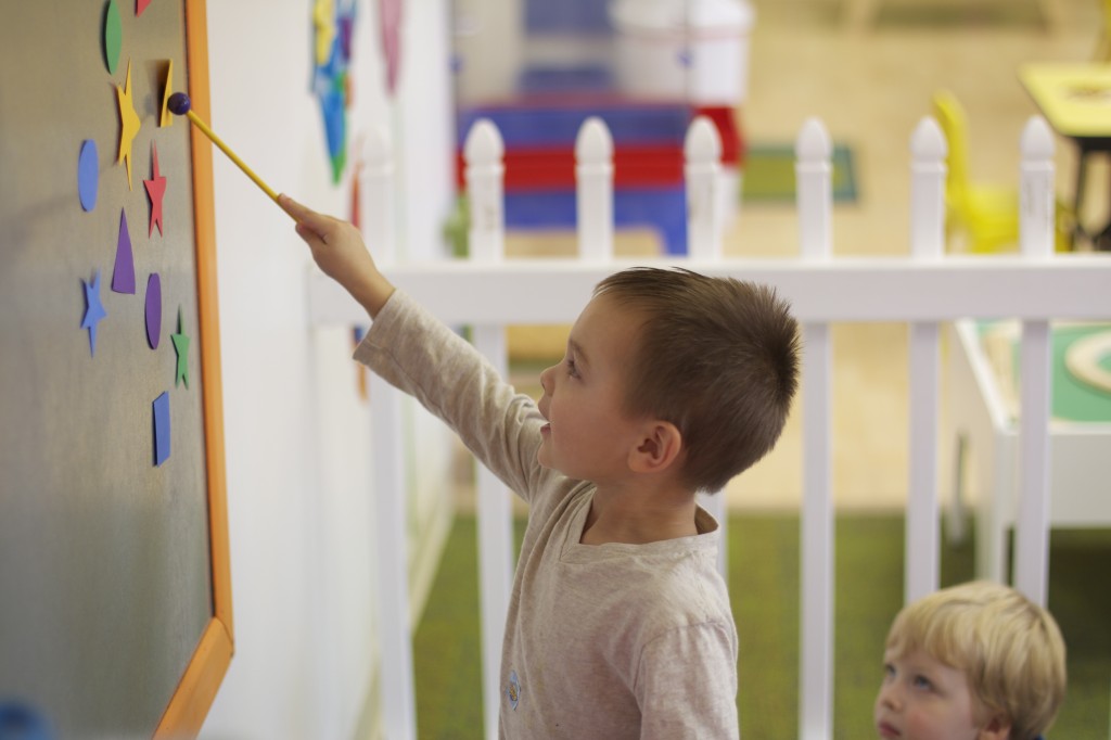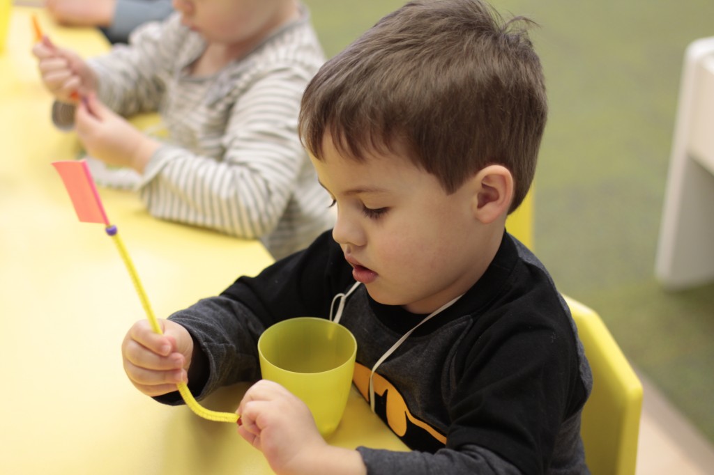 Today we started two new things! 🙂 During whole group time, I introduced the class to the clip system –which is used in the preschool room– for choosing a center. The children are to choose a center, take a clip off of the sign, clip it onto their shirt/dress, and play at that center. When they are finished, they clean up their mess, remove their clip, place it back on the sign, then choose a different center with clips available. This keeps the room calm, and the popular centers are not overcrowded. After I talked about how the system worked, I had the children, who are in the preschool room in the morning, demonstrate how to put on the clip and remove it when they are finished. The preschool children are now my official “teacher’s helpers” –whether it’s helping the younger children with clips or reminding them to use/take off their clips.
