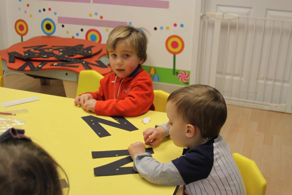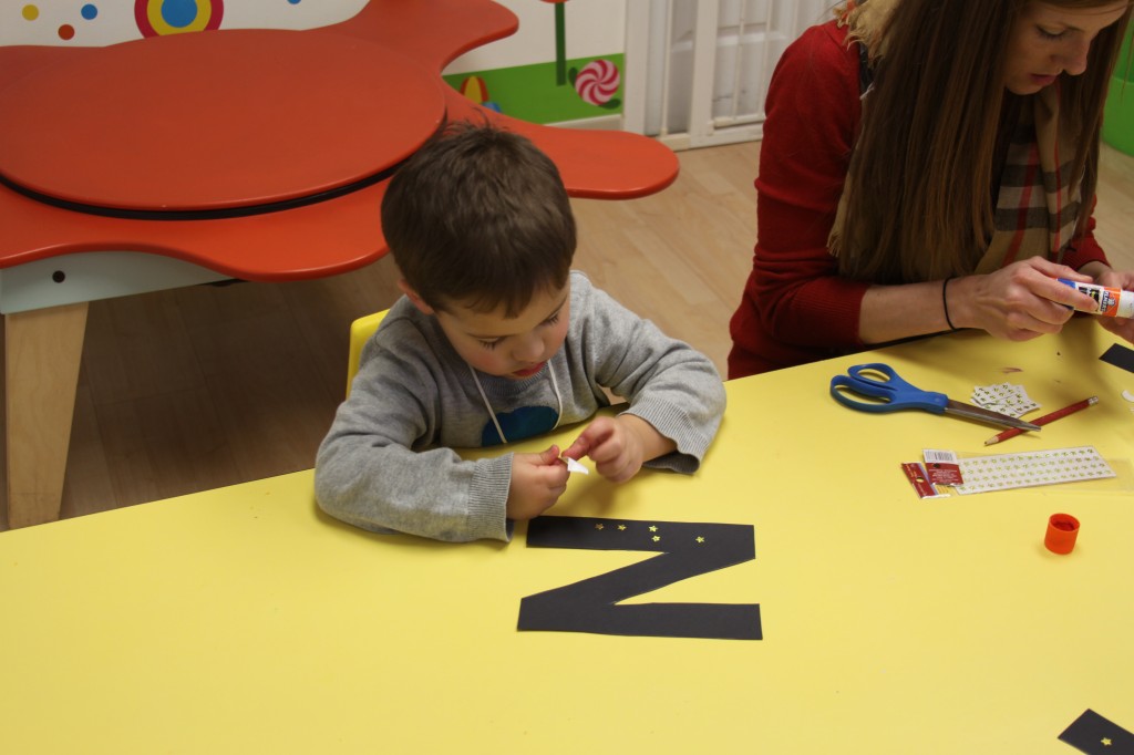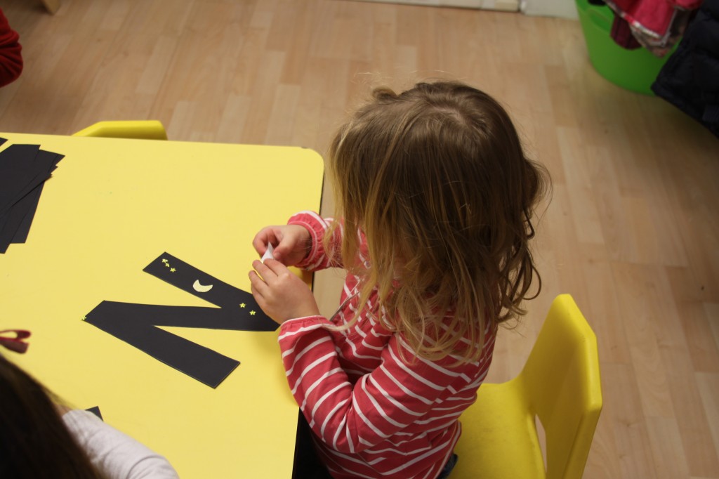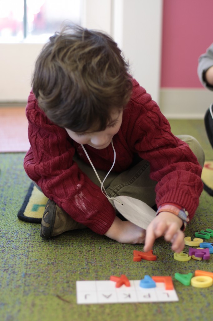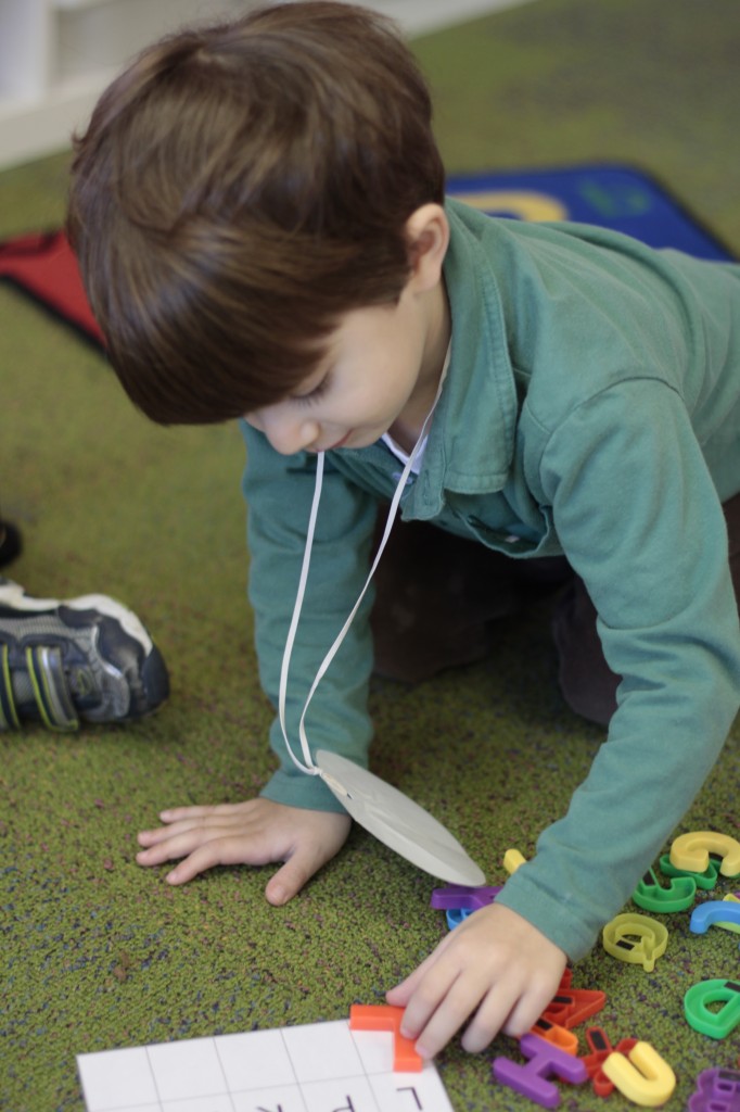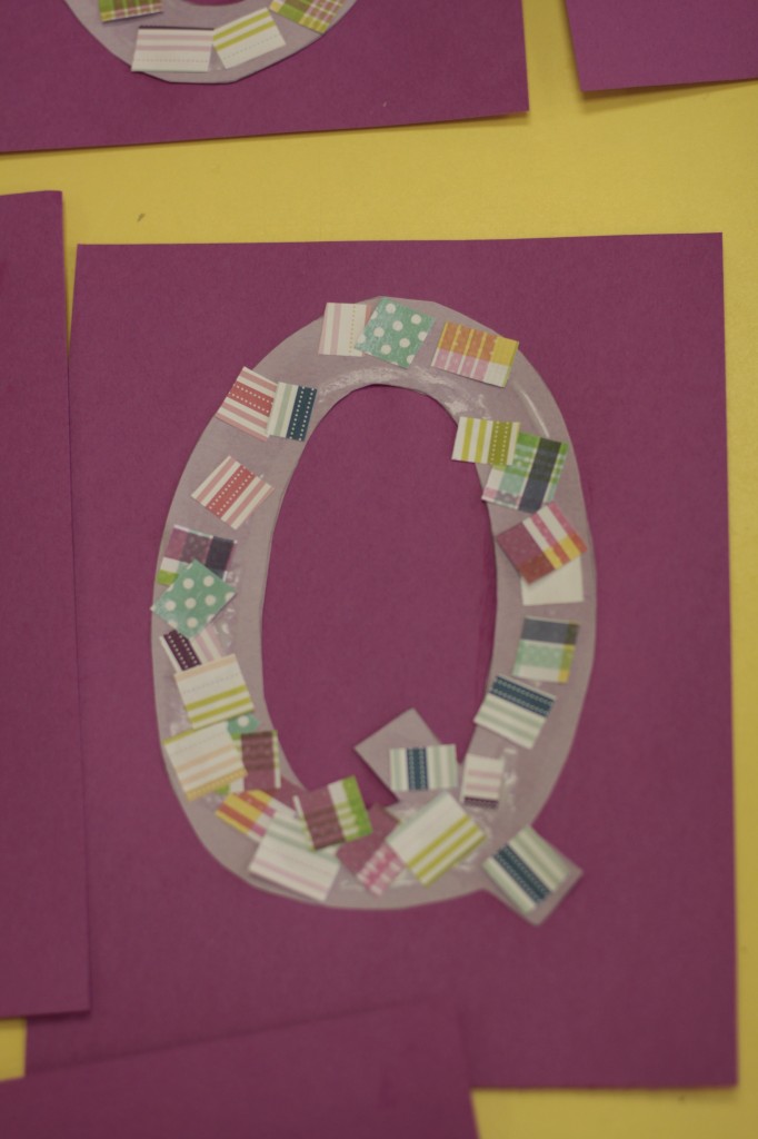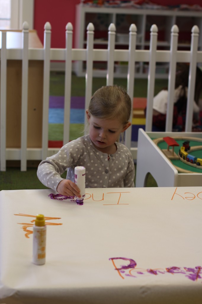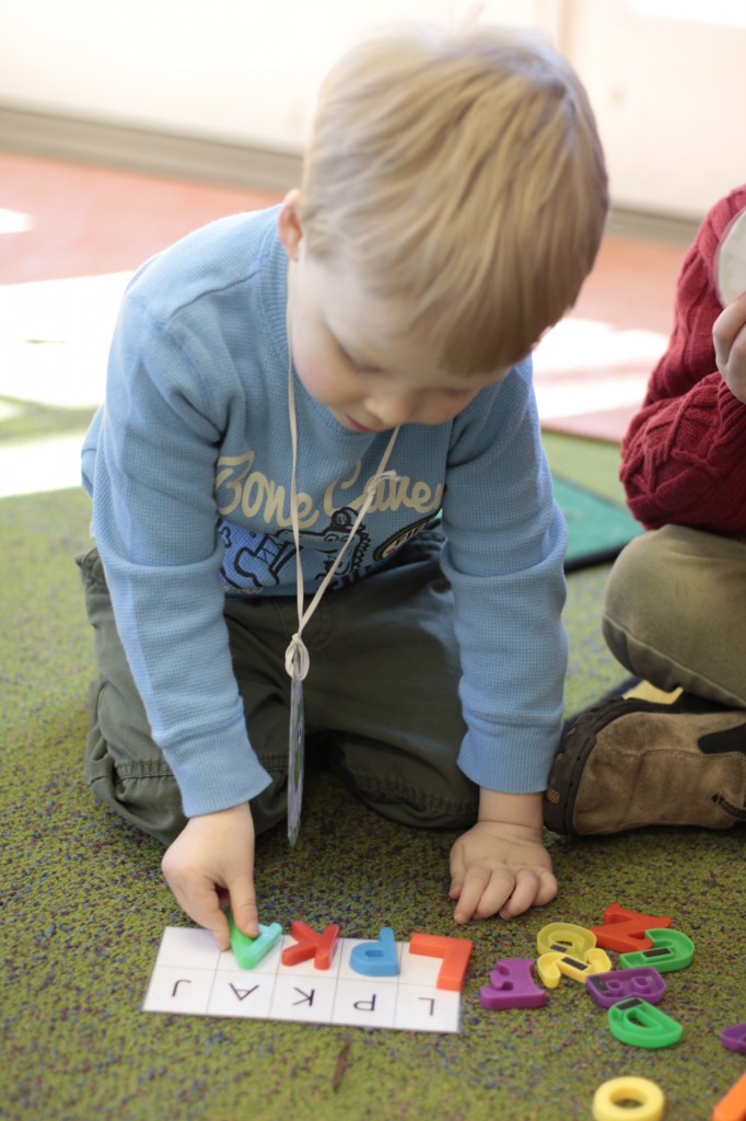 We also used clips for another activity. When the children arrived this afternoon, they had to find their mounted photo {with their name on the bottom}…then place clips {with the letters in their name on each clip} on the matching letters of their name. {See the last 4 photos for an idea of how it works!} 🙂