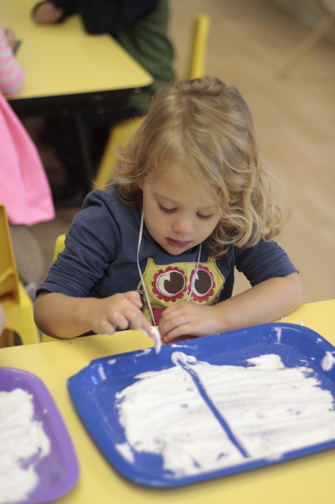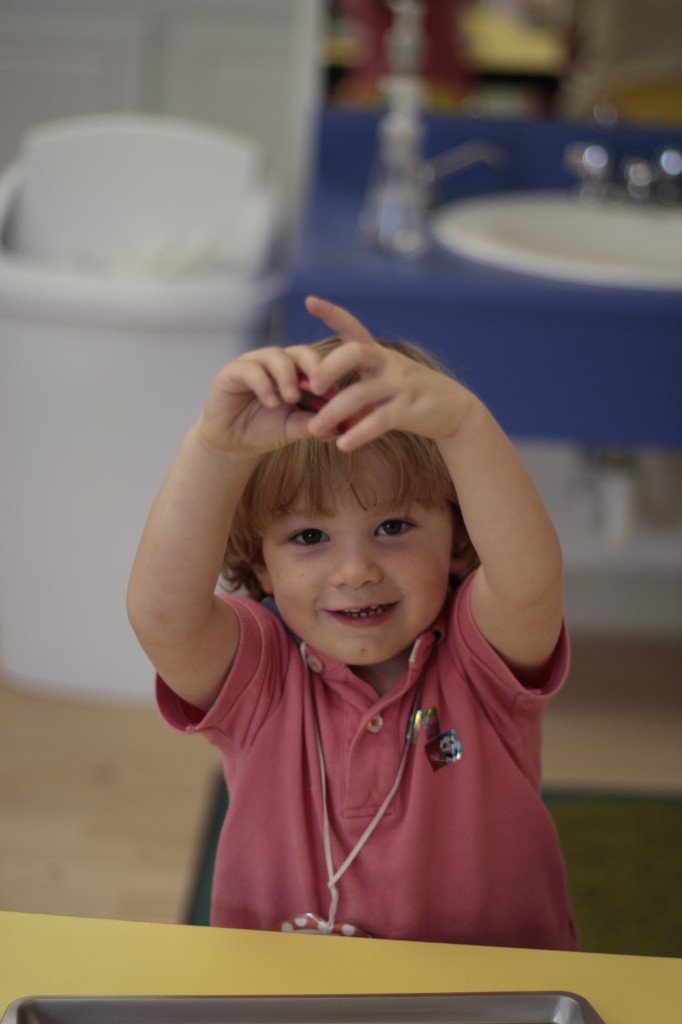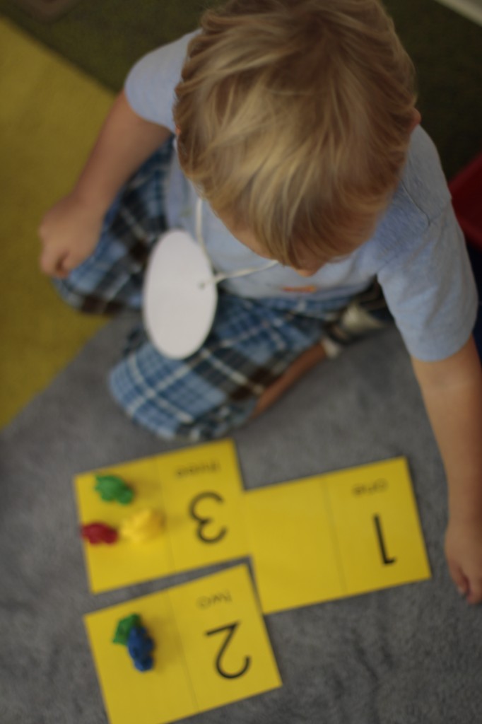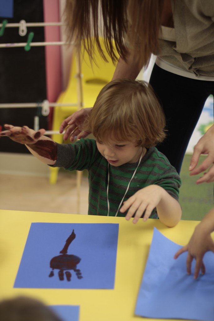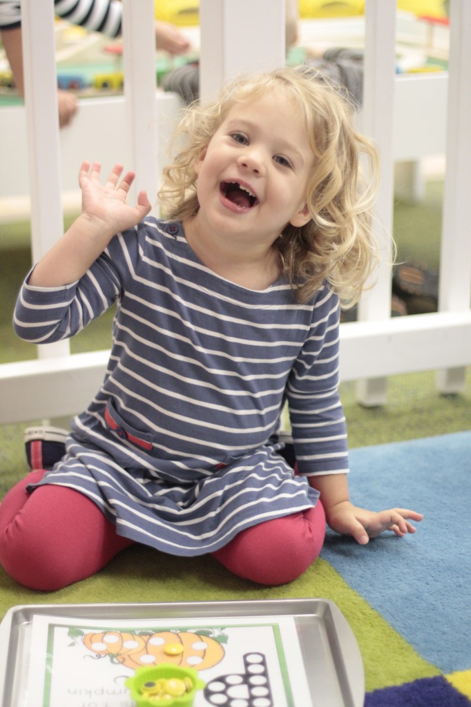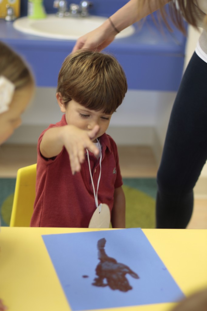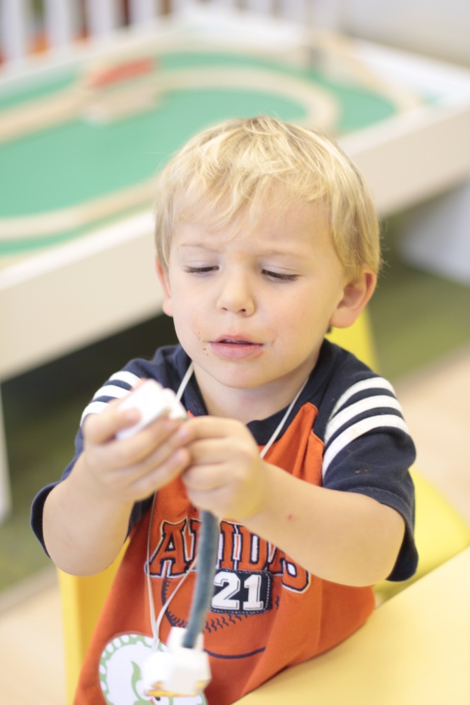 We are back to our normal routine after our photo day on Wednesday. Today we practiced our lacing skills during small group and free play. This is important for fine motor development and eye-hand coordination. Also, one of our groups played a game where they flipped over cards and looked at the picture on the card. They, then, had to determine whether or not the picture was a picture of something that started with a “P” or not. They picked up on the game very quickly as they listened for the beginning of the word to have that “p” sound or not. In our art small group, the children painted trees with their hands/arms. They will add leaves next week. Lots going on today!! Have a fantastic weekend!!