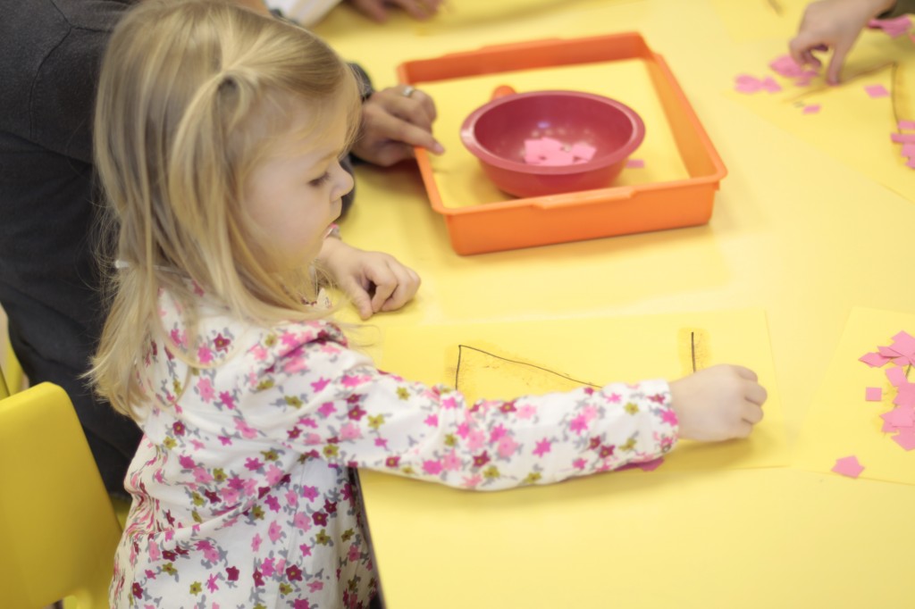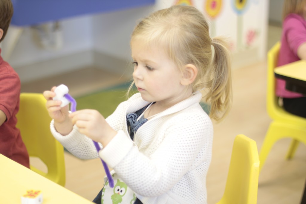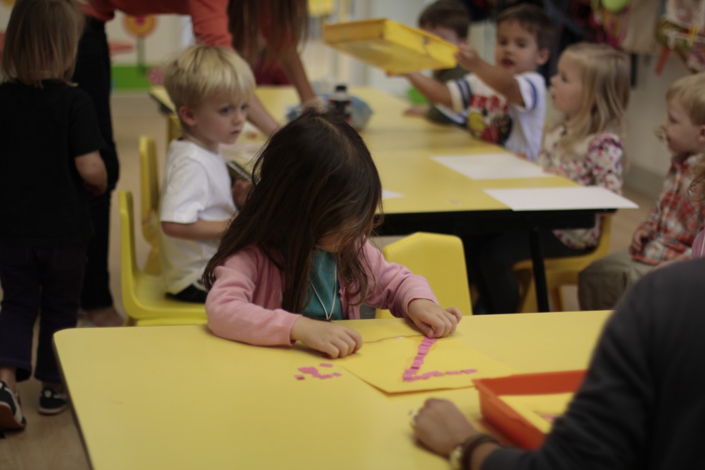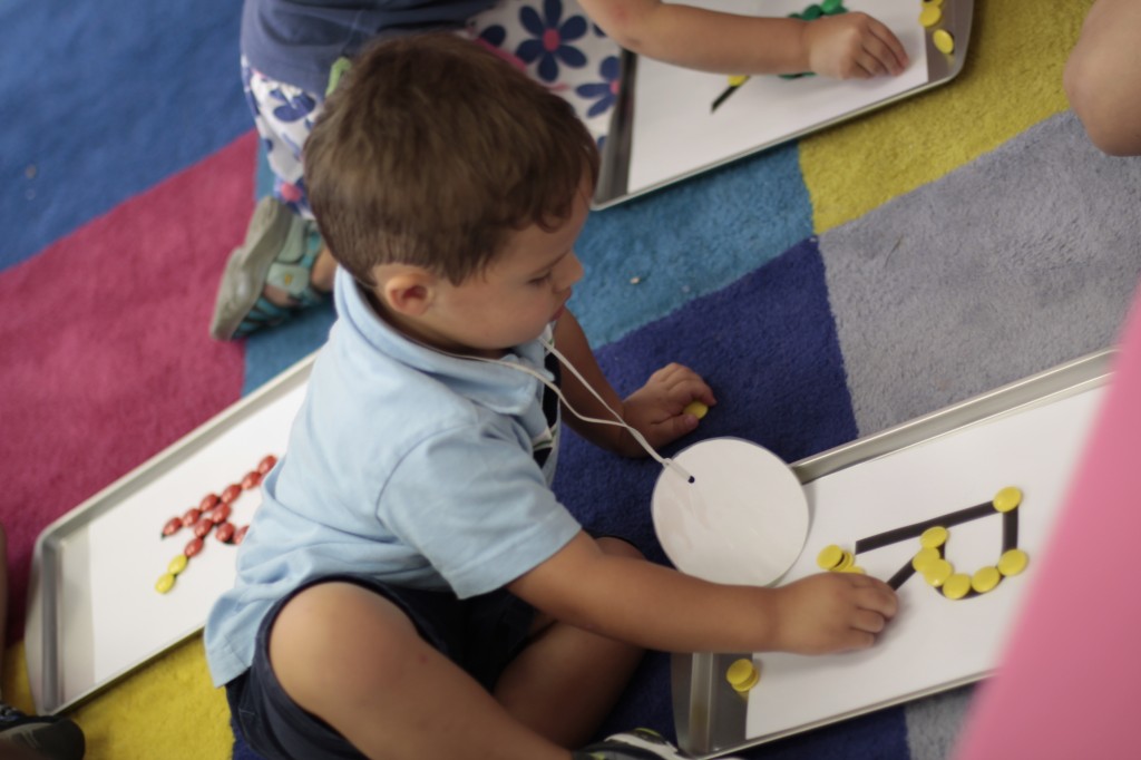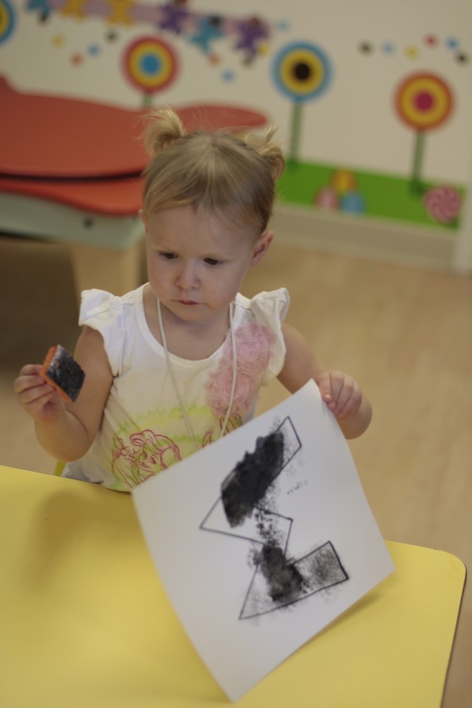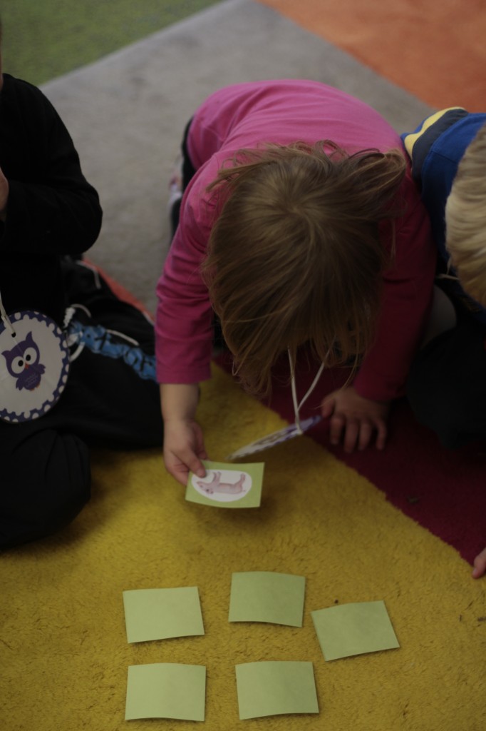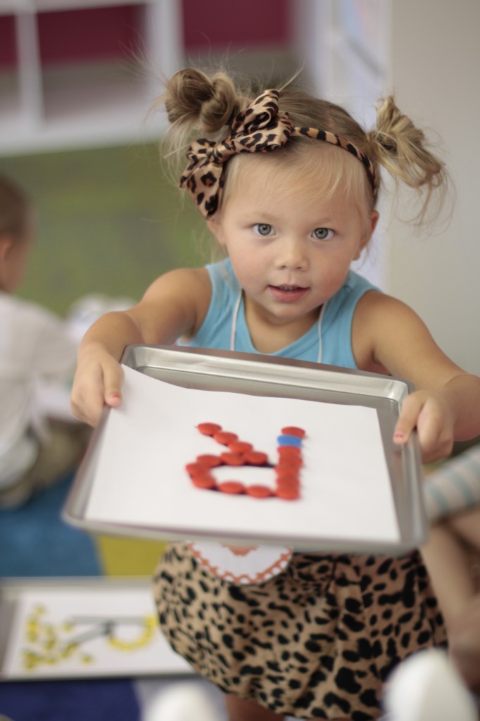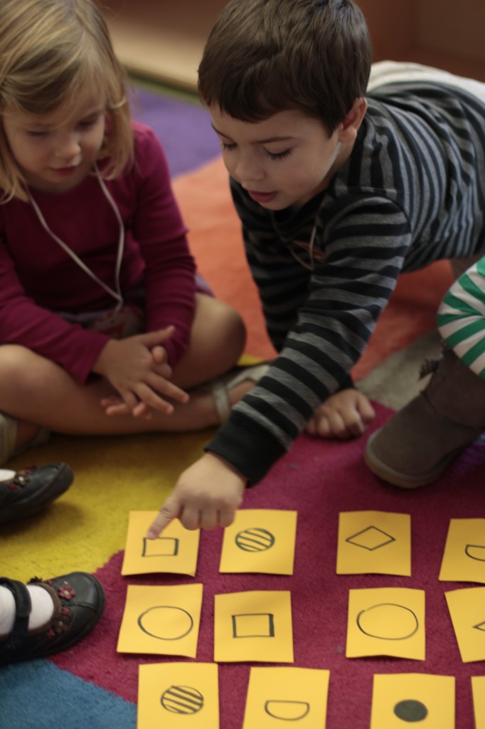 We are back to our normal routine after our photo day on Wednesday. Today we practiced our lacing skills during small group and free play. This is important for fine motor development and eye-hand coordination. Also, one of our groups played a game where they flipped over cards and looked at the picture on the card. They, then, had to determine whether or not the picture was a picture of something that started with a “P” or not. They picked up on the game very quickly as they listened for the beginning of the word to have that “p” sound or not. In our art small group, the children painted trees with their hands/arms. They will add leaves next week. Lots going on today!! Have a fantastic weekend!!