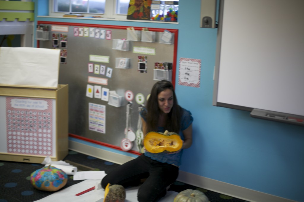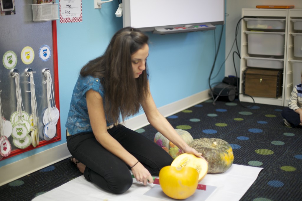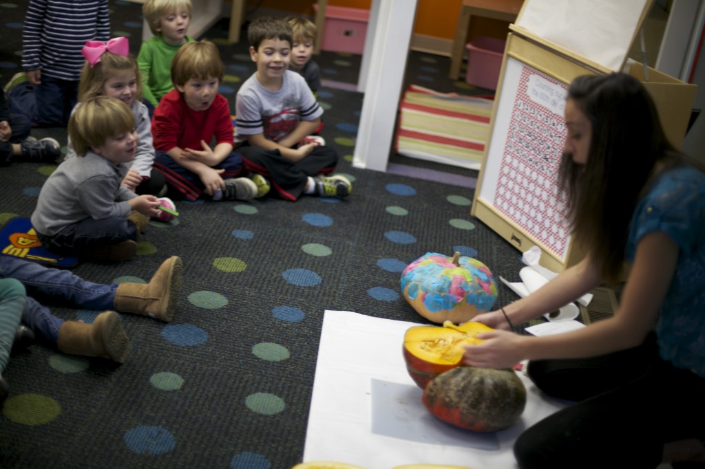 Today was a science day! We were able to cut into pumpkins and explore the various features and parts of a pumpkin.