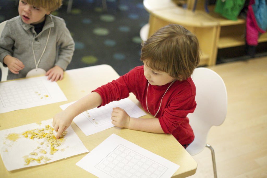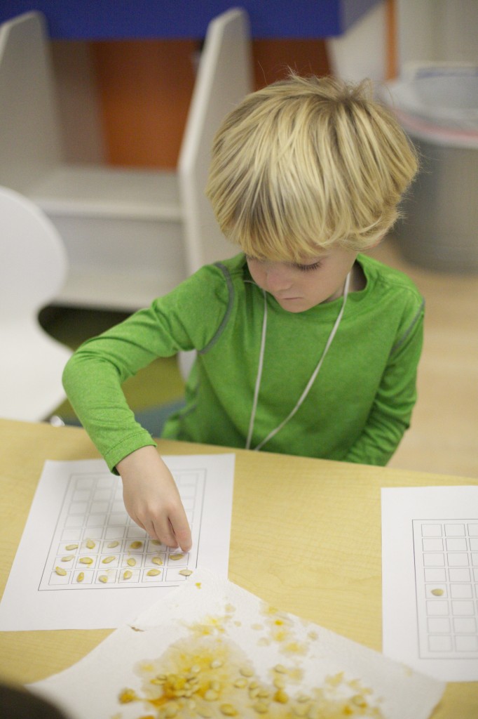 Counting pumpkin seeds and putting them on a grid