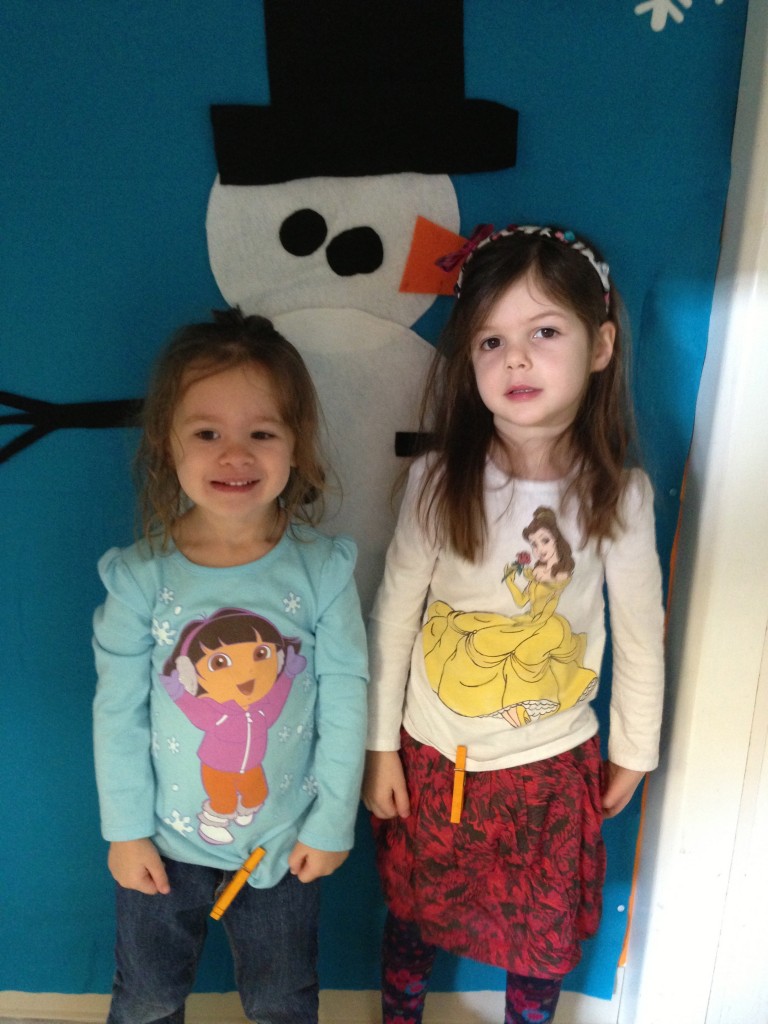 Next with Ms. Lori we practiced our counting skills. Each child had a turn to roll the dice and count how many dots they had. Then we colored the spot on the gingerbread baby that had the matching number on it. This was a fun way to count, work on number recognition and strengthen fine motor muscles!