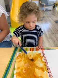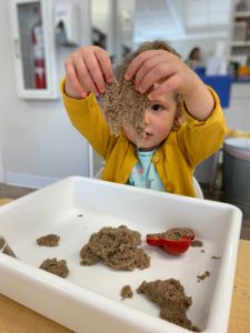 We’ve been exploring all things farm in Ms. Kelsey’s Studio Toddler Classroom. We talked about how pigs love rolling around in the mud, and then we made some muddy pigs of our own!