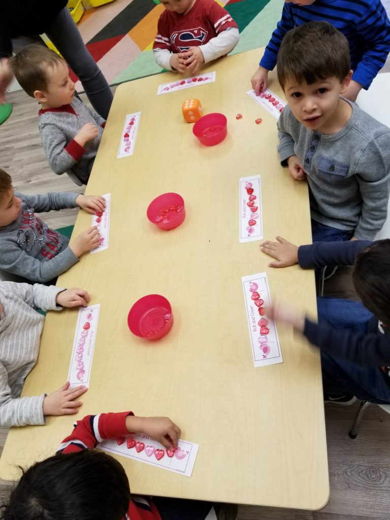 We have been working hard building our number concepts and recognition.  We have been learning to touch the item we are counting as we say a number and that we can only say 1 number as we touch it.  We use all sorts of things in school to count and blocks and plastic hearts have been a go to the last few weeks!