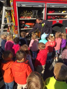 What an exciting day! We had a visit from the Madeira/Indian Hill fire department while learning about the letter Ff. During their visit, we were able to get an up close look at their fire truck, as well as learn about fire safety and the importance of all the tools and equipment that firefighters use.