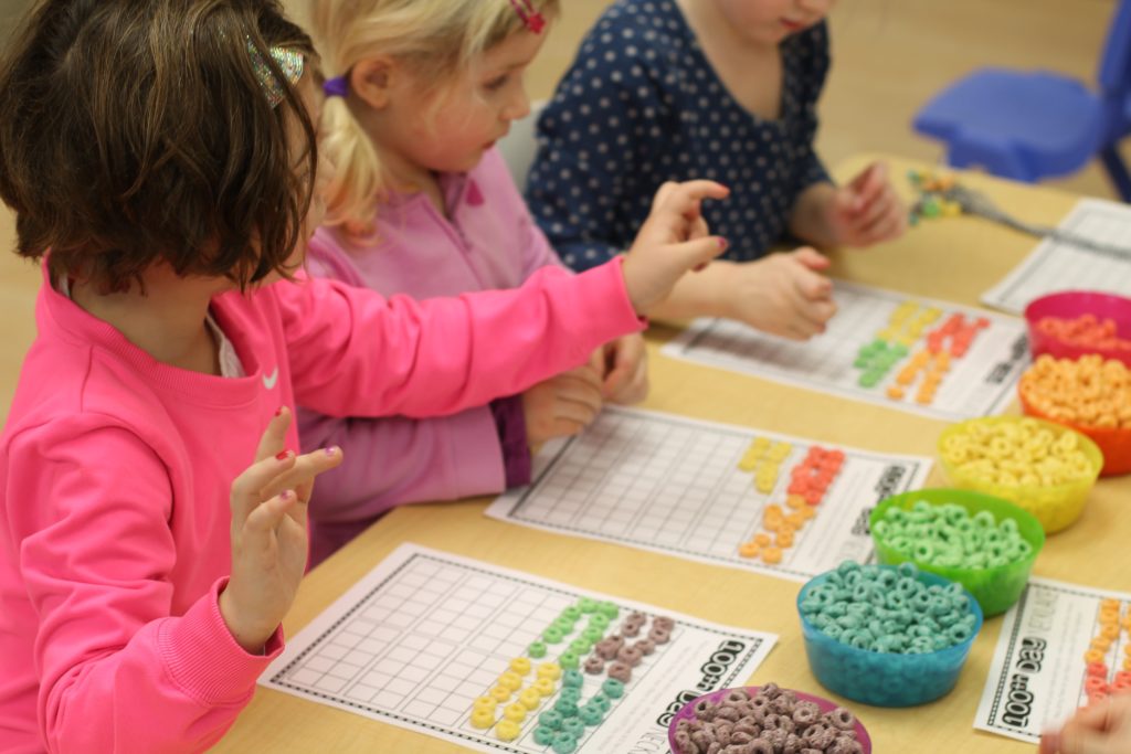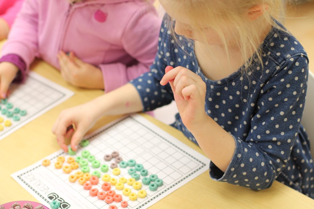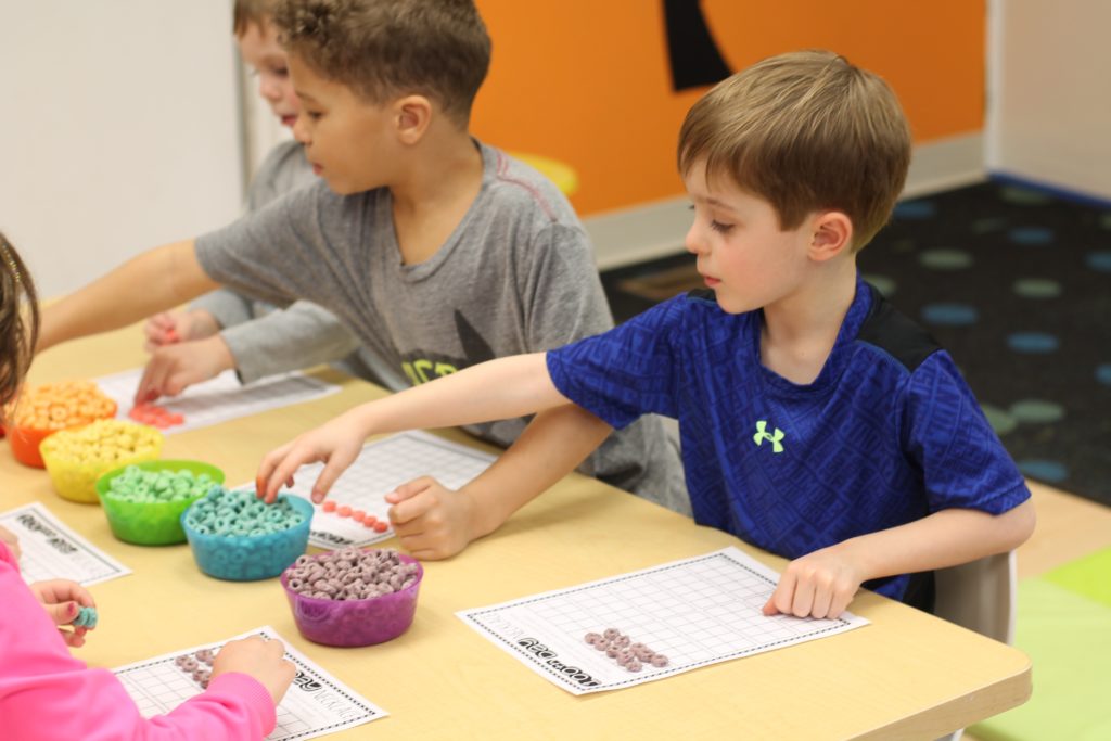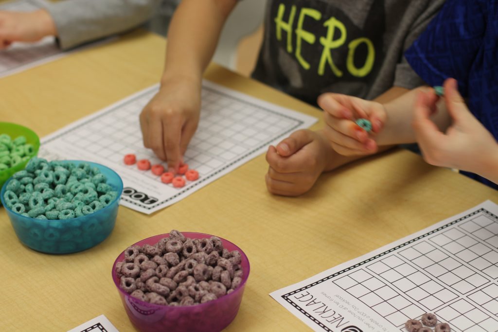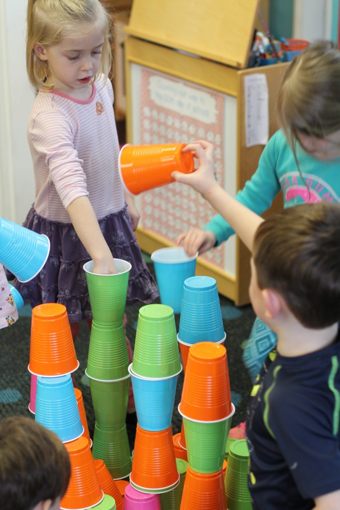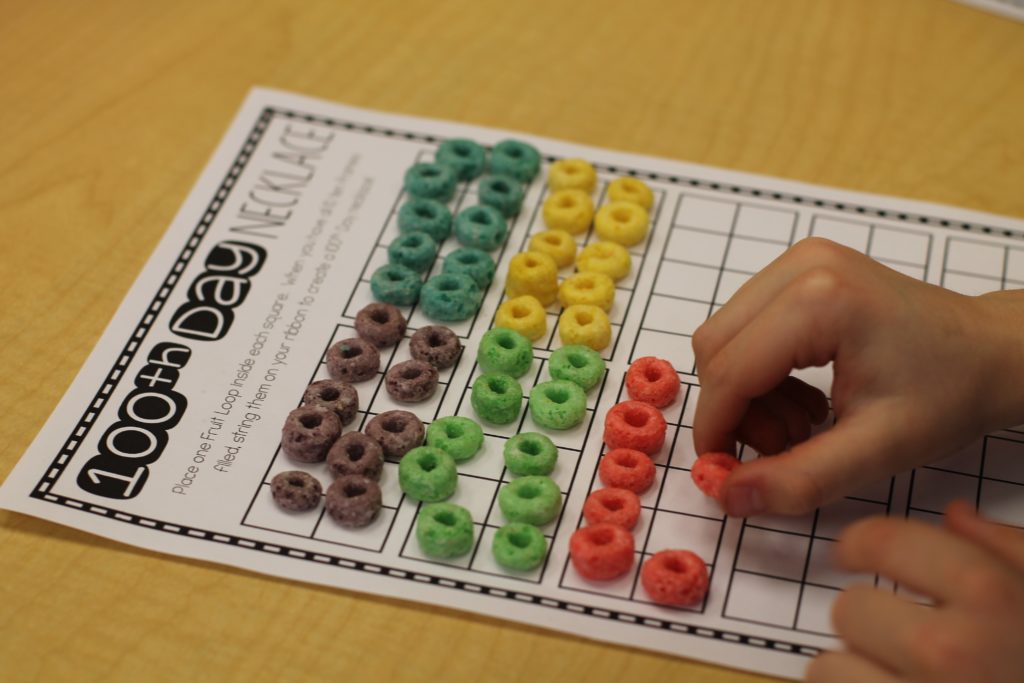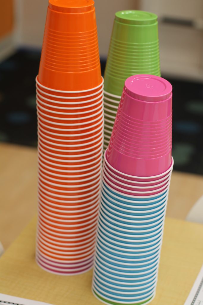 The students made 10 groups of 10 straws and cups to make 100. We have been working on counting to 100 by one’s and by 10’s. Through our exploration of our 100, the students decided today that counting a large number, like 100, is easier when they group the items they are counting, and skip count!