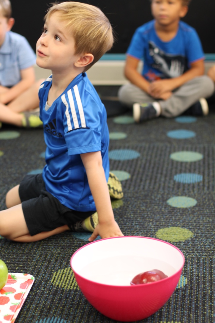 We were all about apples this week in preschool prep! We did an apple experiment, apple art and even made our own applesauce!