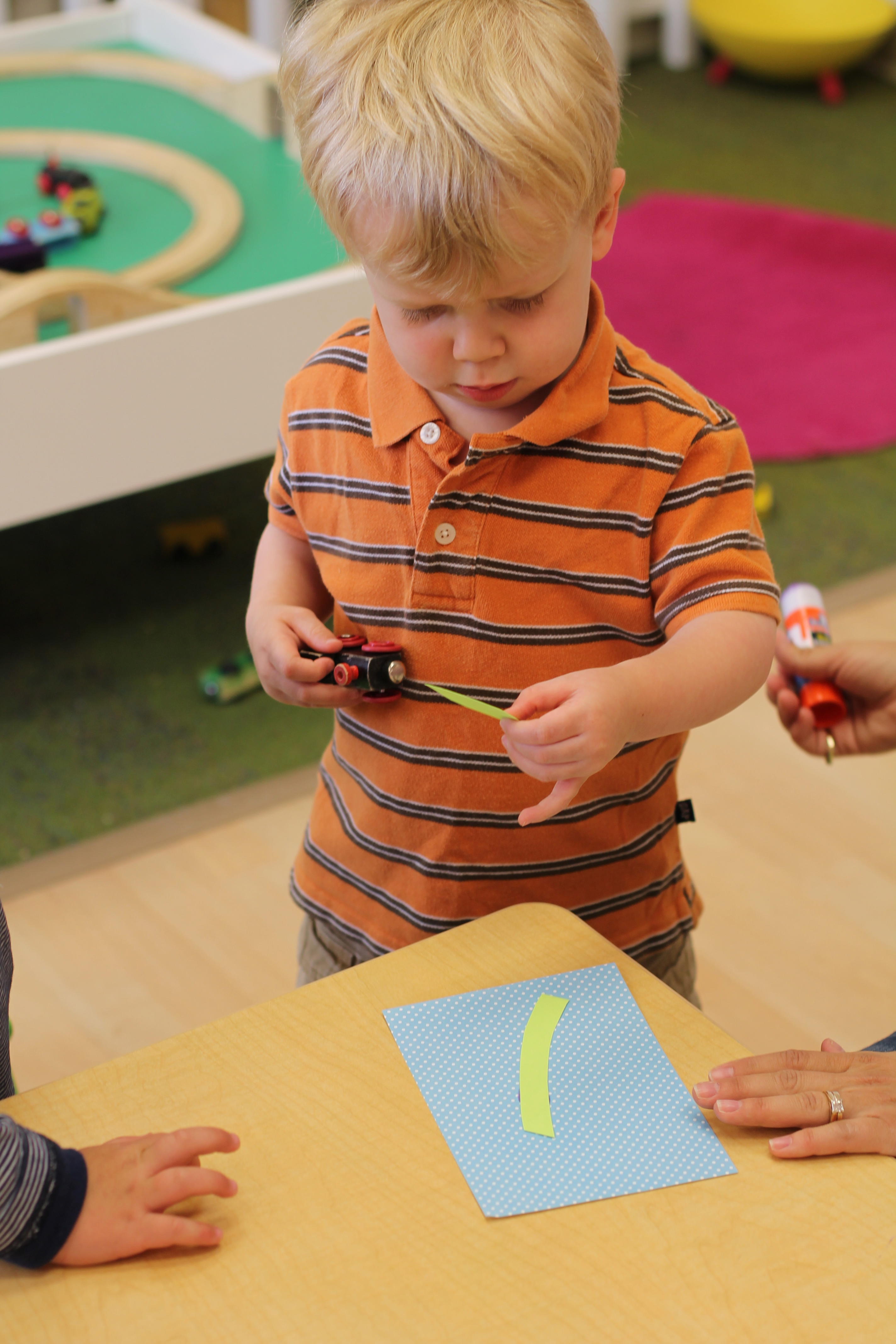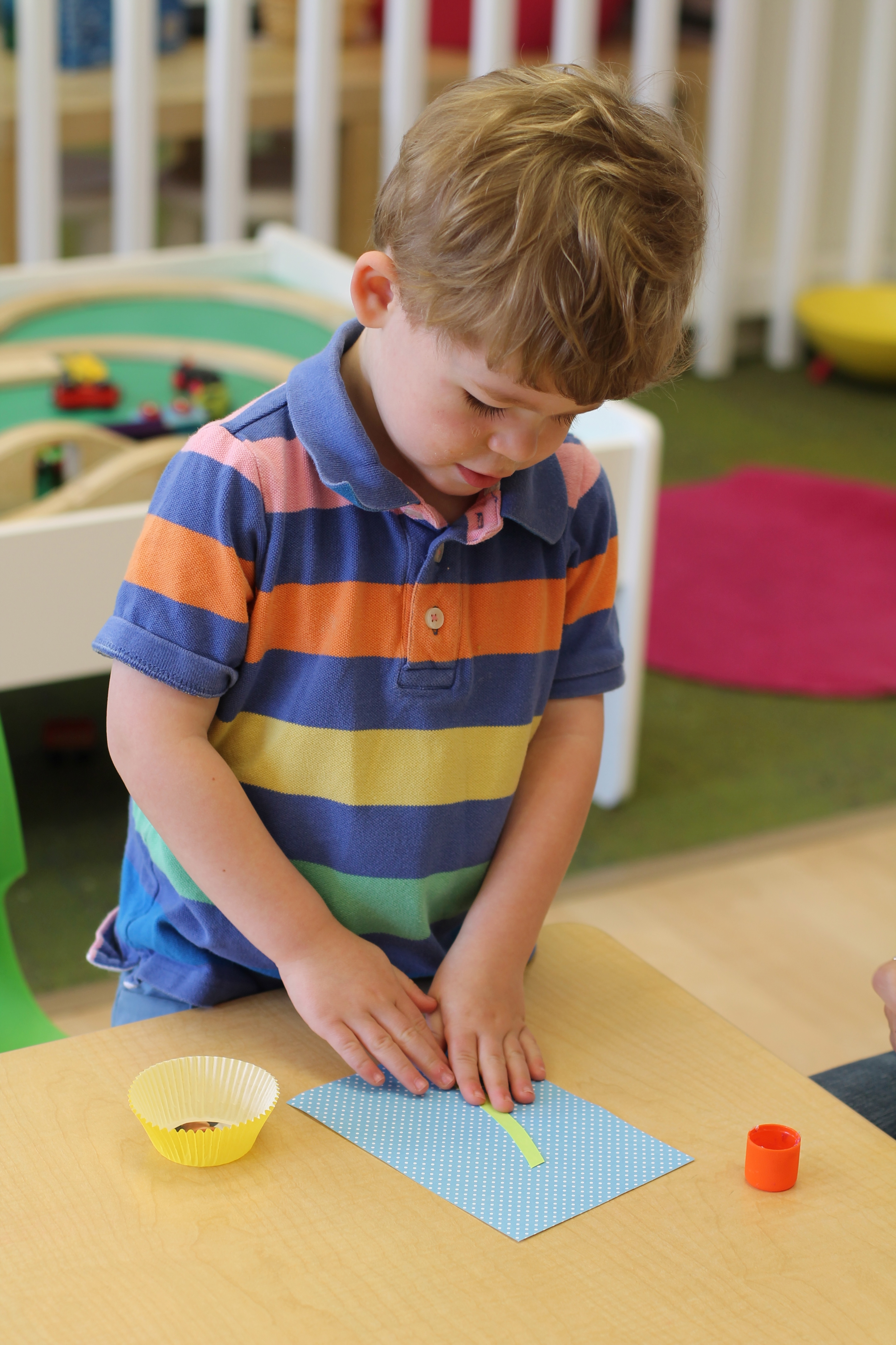 The month of October our color is ORANGE! Today during art we painted with oranges instead of paint brushes. The boys and girls had a lot of fun making prints with the oranges in orange paint!