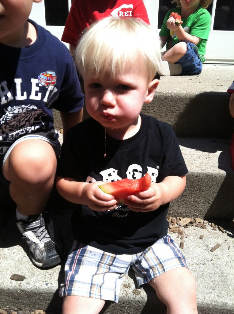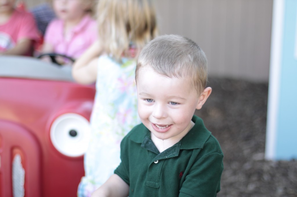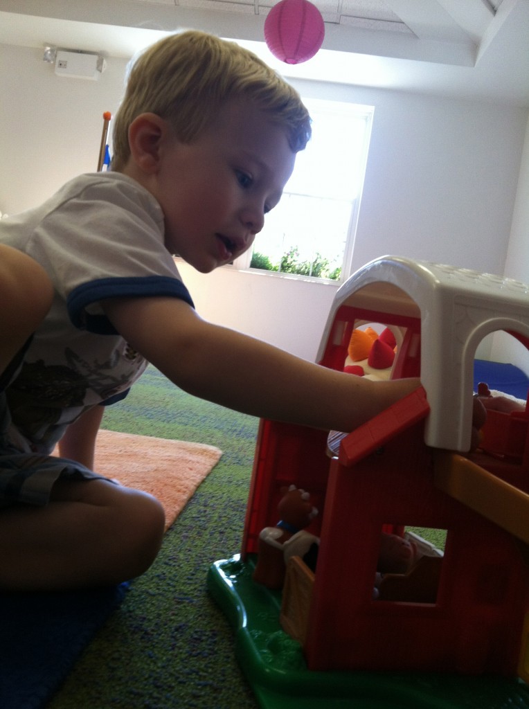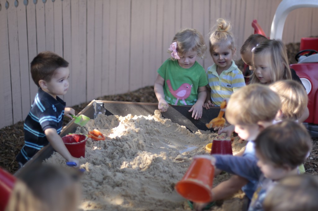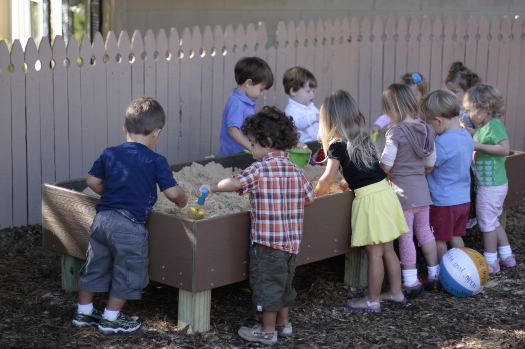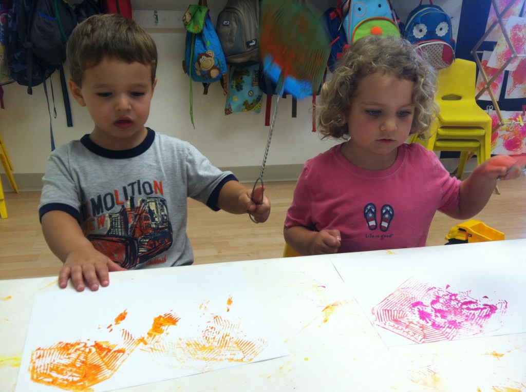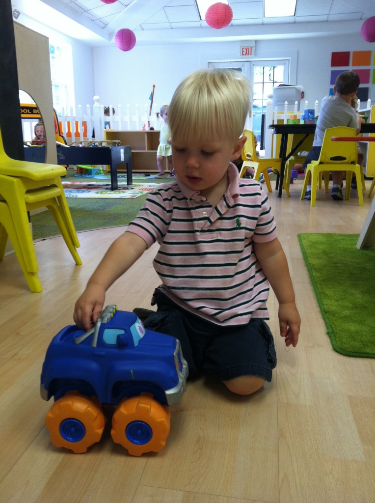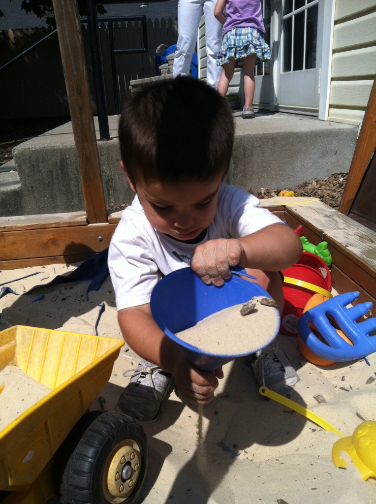We had a fantastic start to our third week of school! In the toddler room we are learning the color red and the letter “R.” We are learning the ABC song and practicing sitting at group time. The children had fun working on their art show pieces: painting muffin tins and printing them on paper. A new addition to our playground is a huge sandbox!!! The children LOVE playing in it!! Check out all of our fun photos from our day!! 🙂