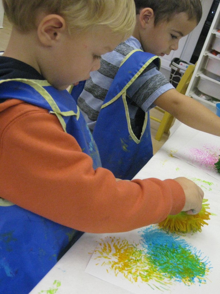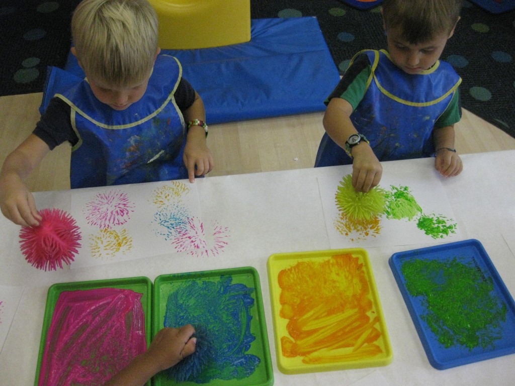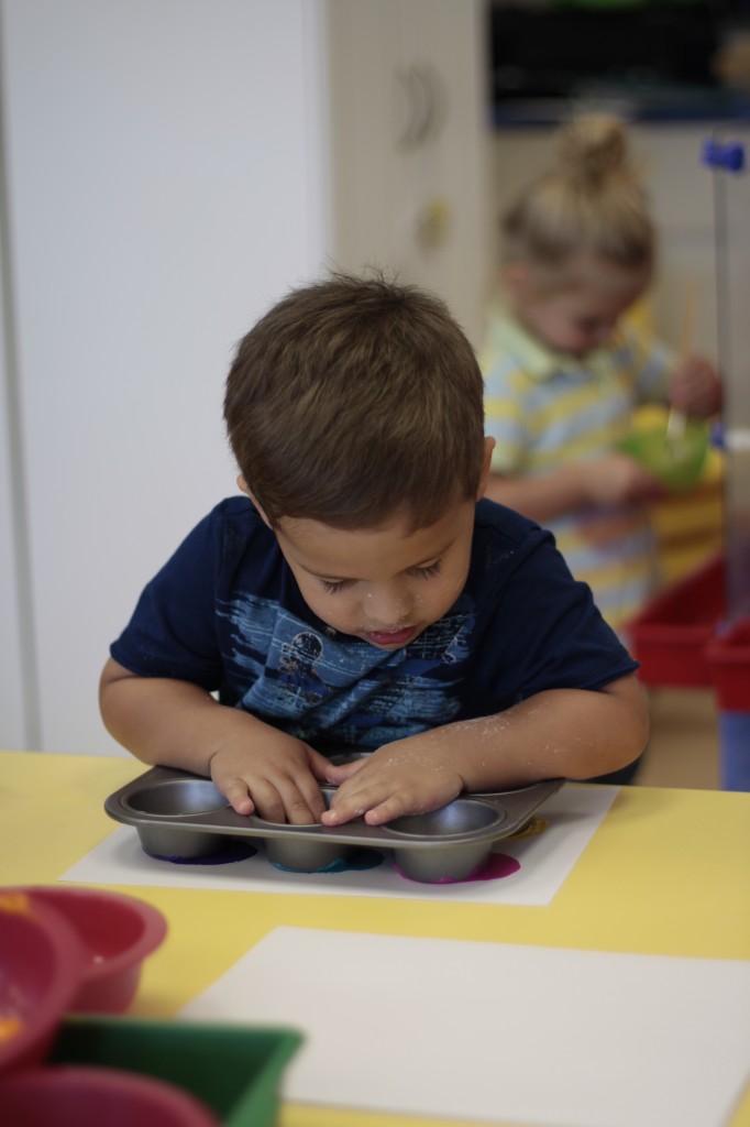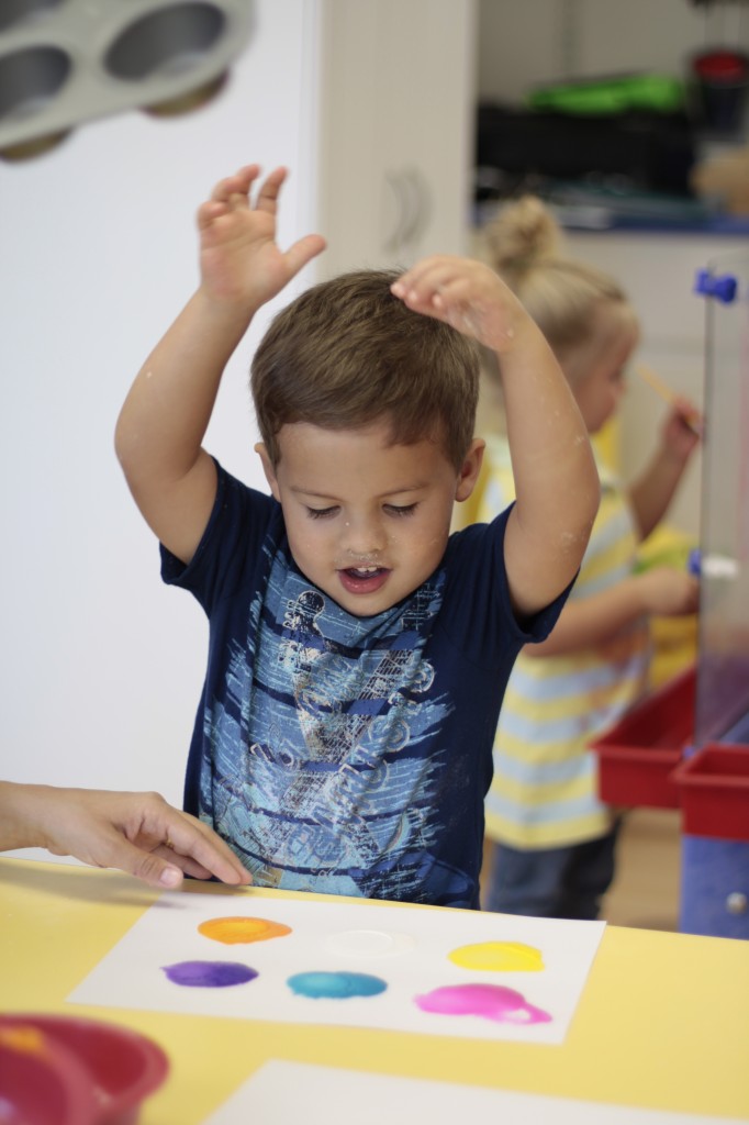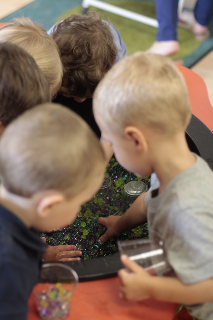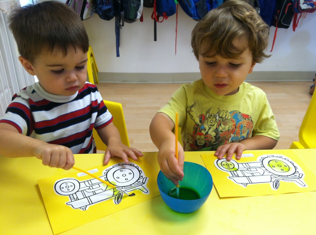This week the Toddlers are exploring the Wild West. We have lots of fun things planned as the week goes on! On Monday, we sang, “Shoo Fly Don’t Bother Me” at group time and did a fun (and messy) art project to go along with it. In the sensory tub, the boys and girls can search for gold! The children are making new friends and loving all of the new centers we have put out for this week.