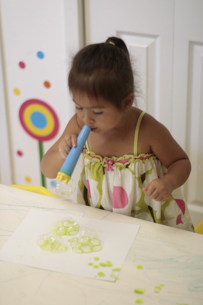 It’s hard to believe that it is our 5th week of summer camp!!! This week our theme is “Bubble, Bubble, Pop!!” Bubbles EVERYWHERE!! Check out some of the activities and faces of this week’s summer camp! 🙂 We’ve painted by blowing paint bubbles onto paper. We used bubble wrap to paint whales. This week has been lots of fun so far!!! 🙂