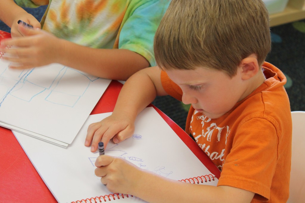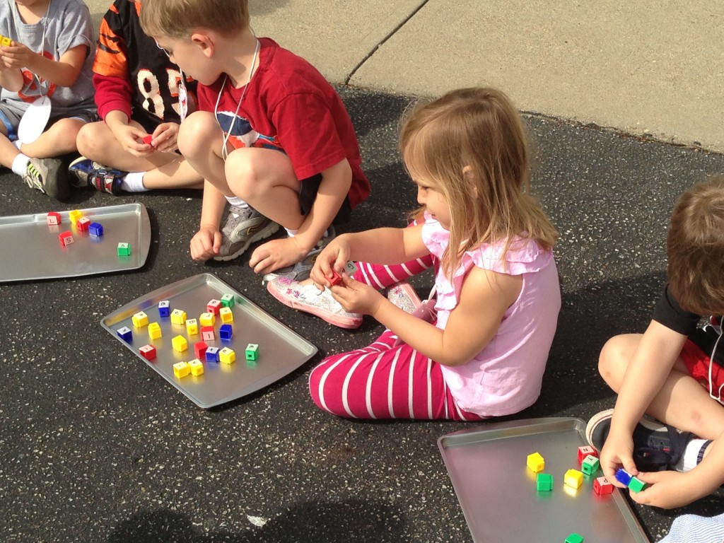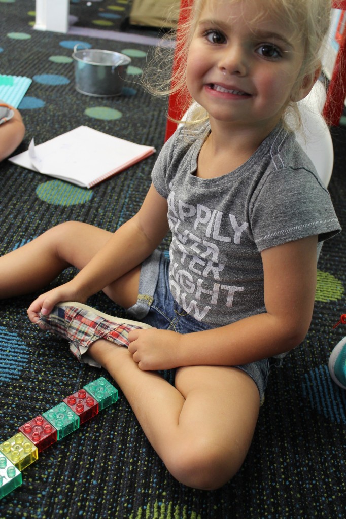 Ms. Lori taught the children how to create their own log cabins in the block center last week. Today the kids began making their own cabins in the “woods.” Wondering what your child is learning at the block center? The block center is ideal for large motor development and coordination skills as the children, lift, move, and stack the blocks. They are acquiring critical social skills as they work, share, and talk with other children while they create with blocks and block accessories. Children are also acquiring knowledge and skills which will provide an important foundation for later learning. The children solve problems and gain confidence while working with the blocks. Building with blocks helps children learn what numbers stand for, and it encourages children to practice scientific, trial-and-error thinking. Other learning opportunities in this center include critical-thinking and decision making skills, making comparisons (more/less, taller/shorter), recognizing shapes, classification of objects (by shape, size, color, etc), matching and sorting, experimenting with balance, seriation, equivalence and creativitiy. Never knew the children could learn so much from a collection of blocks!