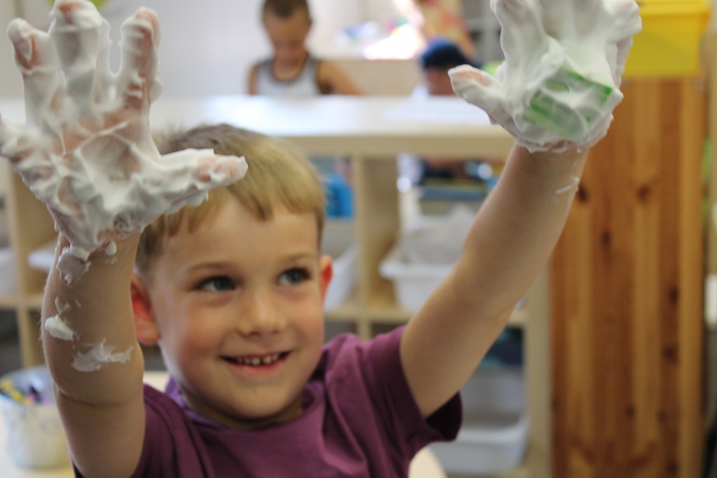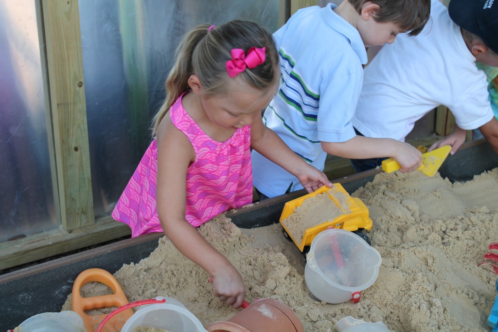 While exploring at the Sensory Tub children exercise problem solving skills, natural curiosity, and teamwork. Preschoolers connect real world materials with experience and senses while developing and understanding of volume and capacity. Pouring, scooping, sifting, and digging strengthen fine motor muscles as well.