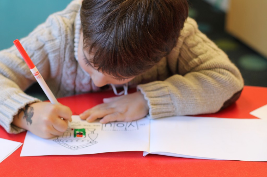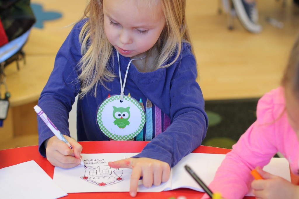 Strengthening fine motor muscles in the hands is essential for successful writing.  Coloring small pictures with a focus on moving your hands/fingers slowly to stay inside the lines helps improve hand strength and dexterity of children.  An easy way to encourage fine motor development at home or just about anywhere!