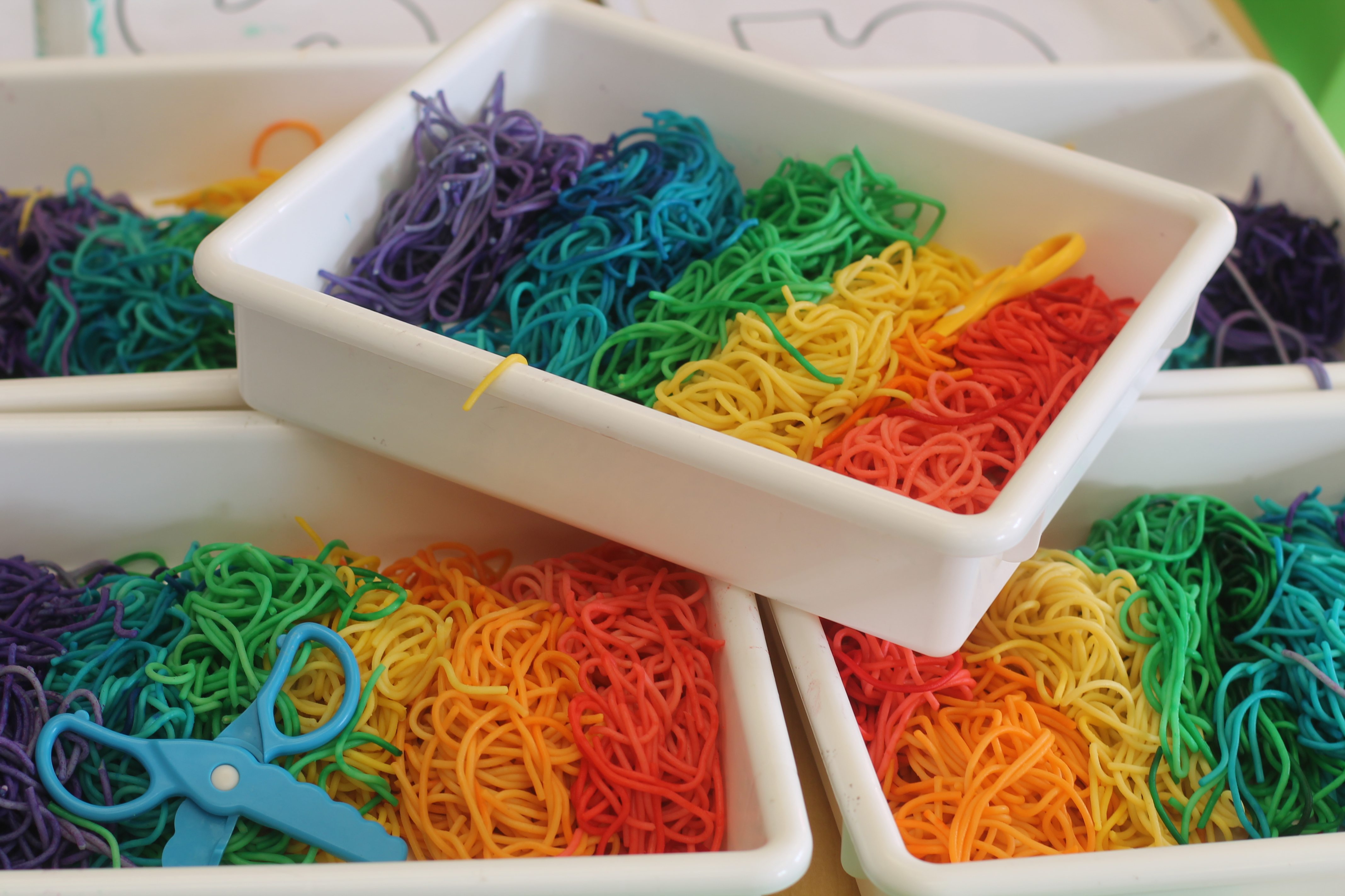Man, have our toddlers grown! On Friday, the boys and girls sat so patiently while we came around to help them build boats with pool noodles, straws and foam triangles. After the children finished their boats, they were able to go see if they would float! Our sensory tub was filled with water, along with some other tubs around the room. The boys and girls really enjoyed splashing, dunking and floating their boats!