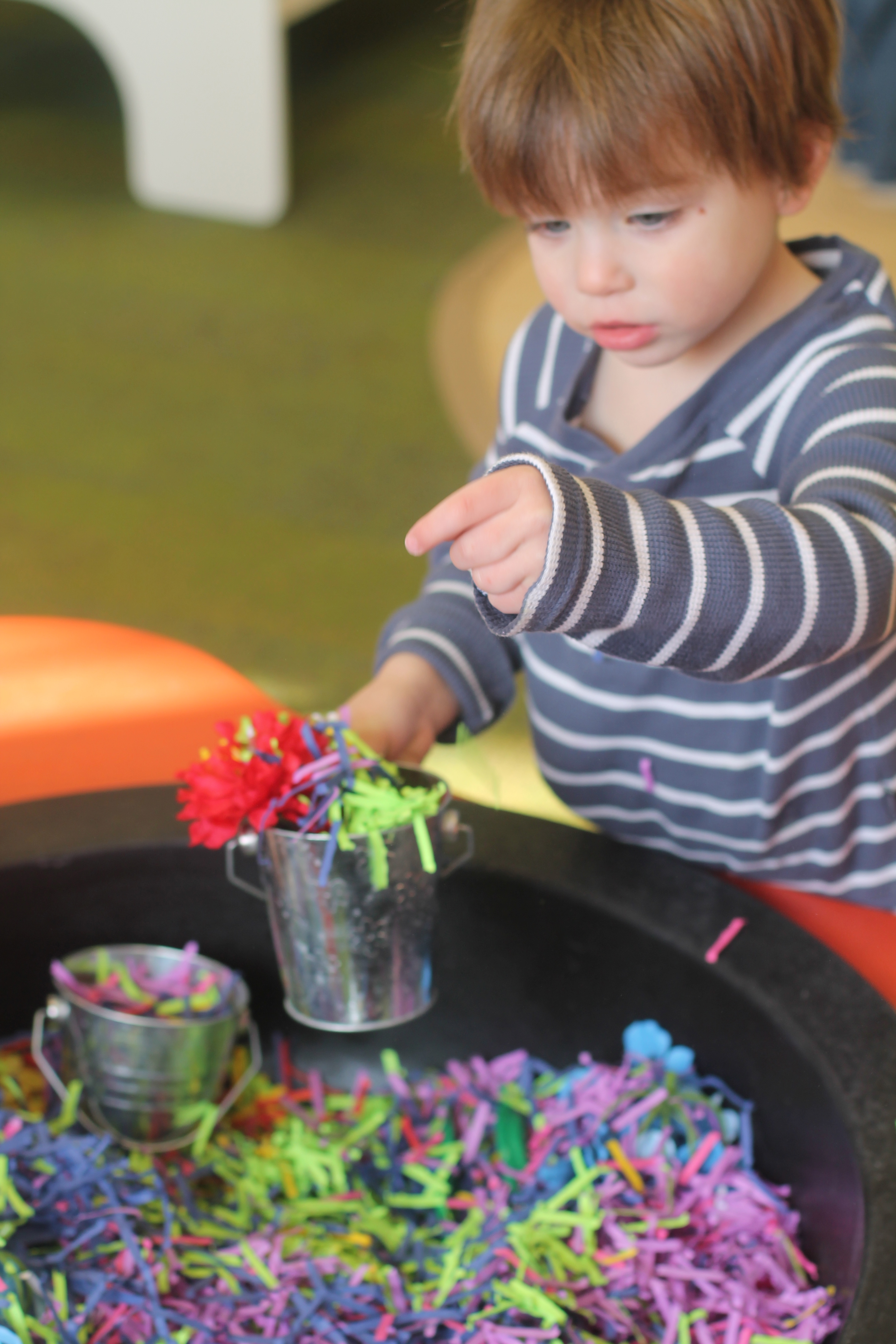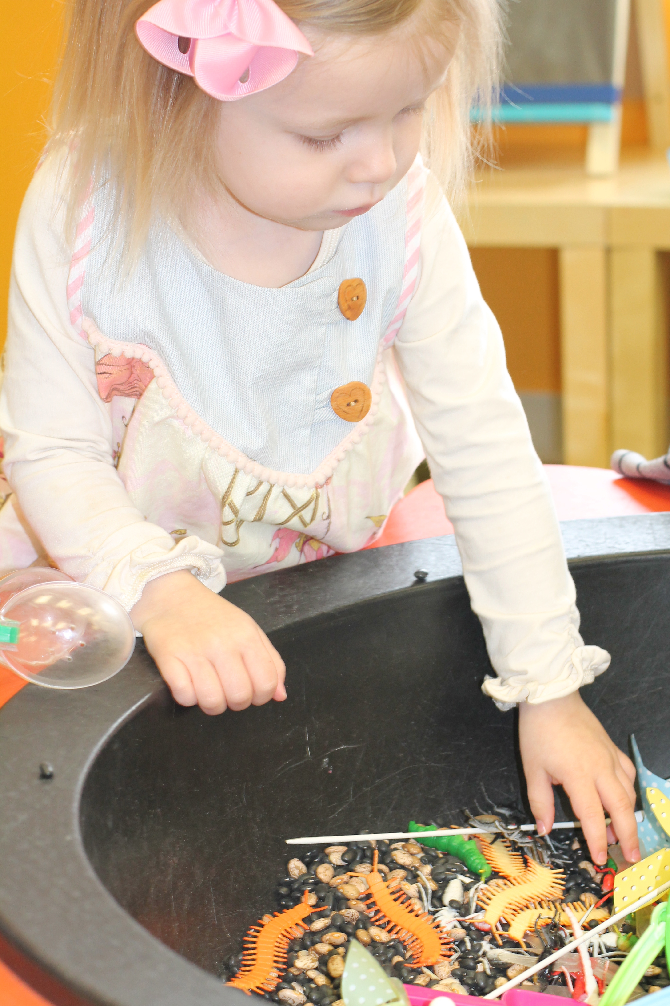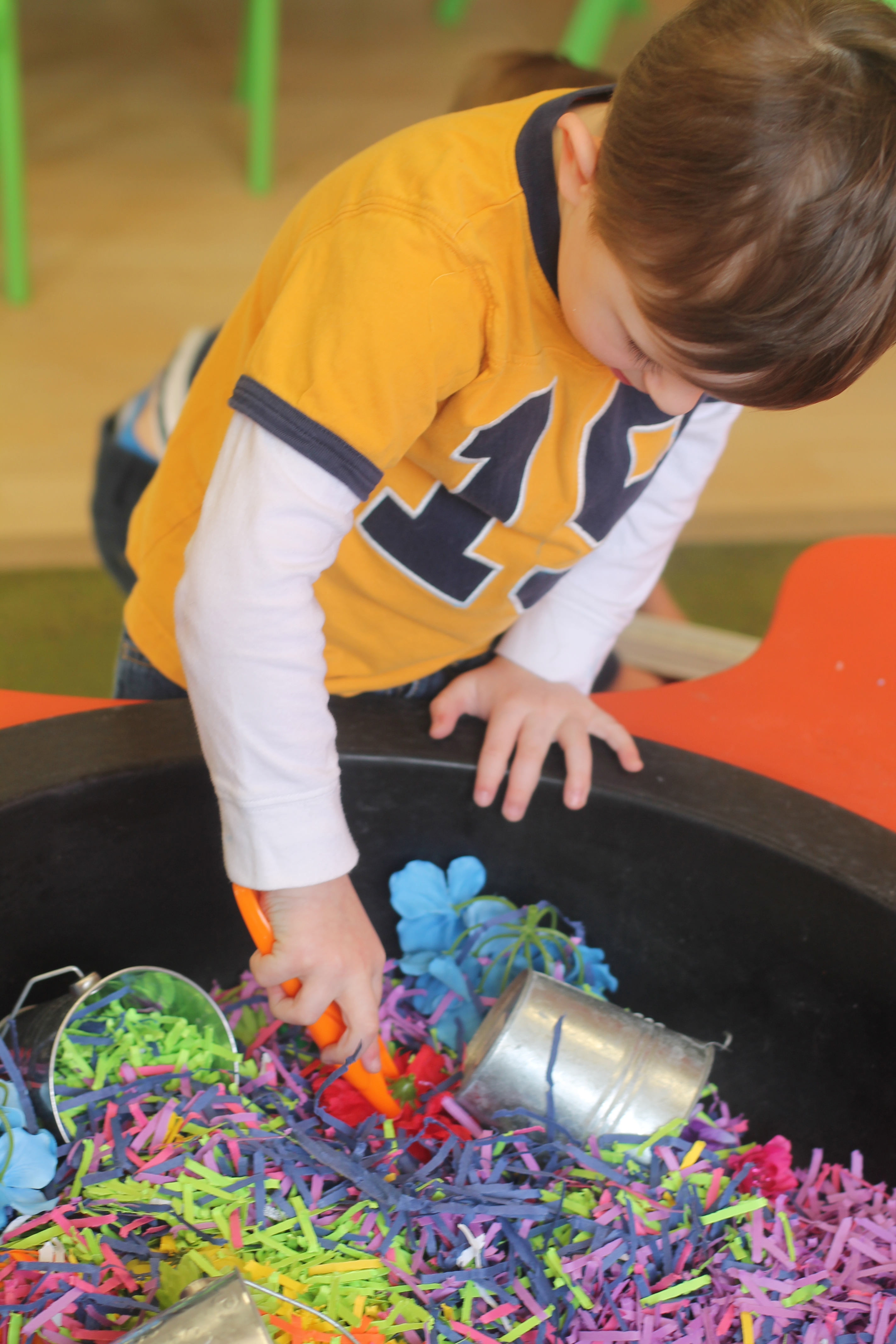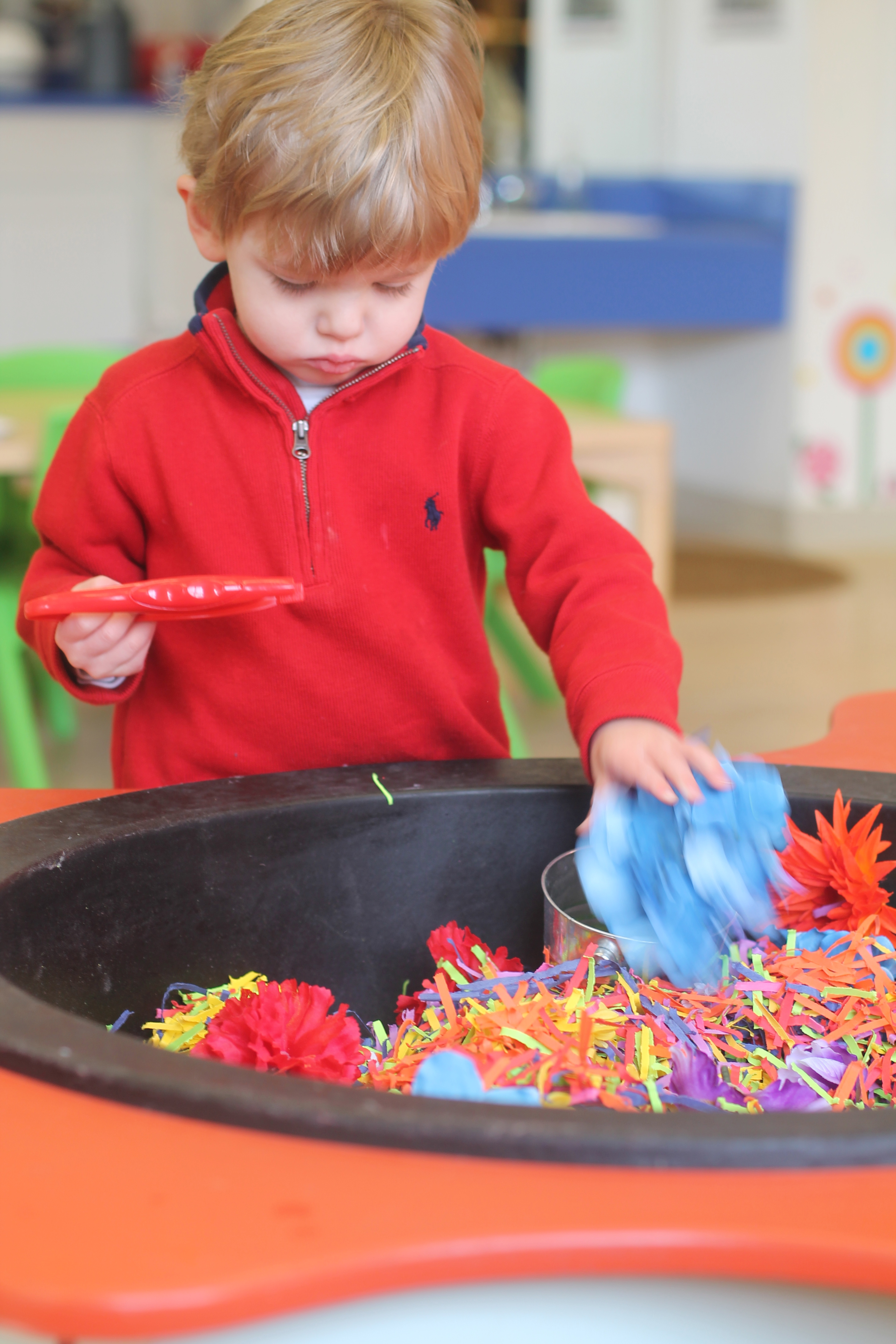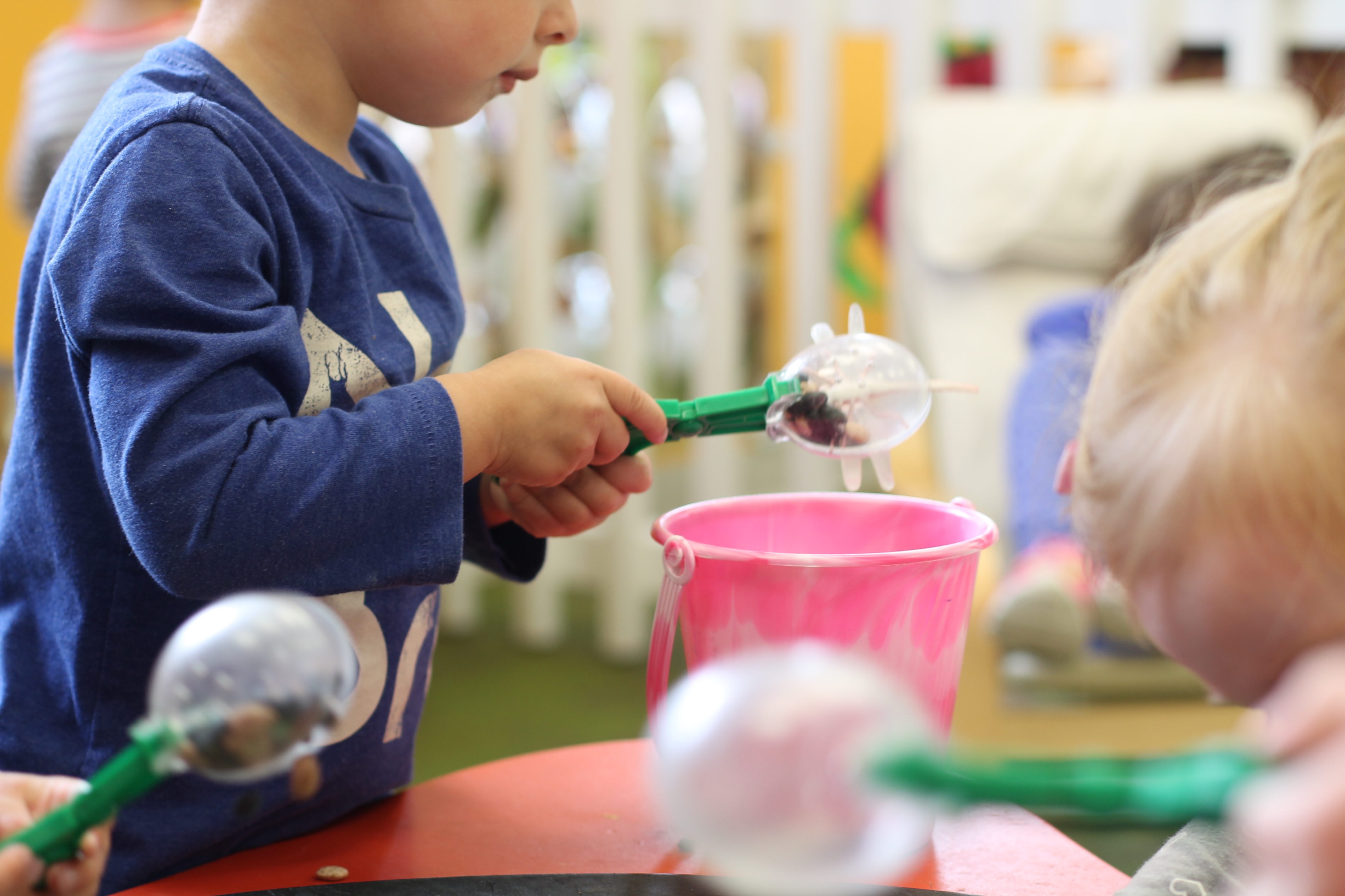 This month in the Toddler room is all about Bugs! We will be discussing things that live in the garden in the month of April. In the sensory tub is all sort of bugs, bug catchers, buckets to sort and flowers. The boys and girls will have so much fun exploring in the sensory tub!
