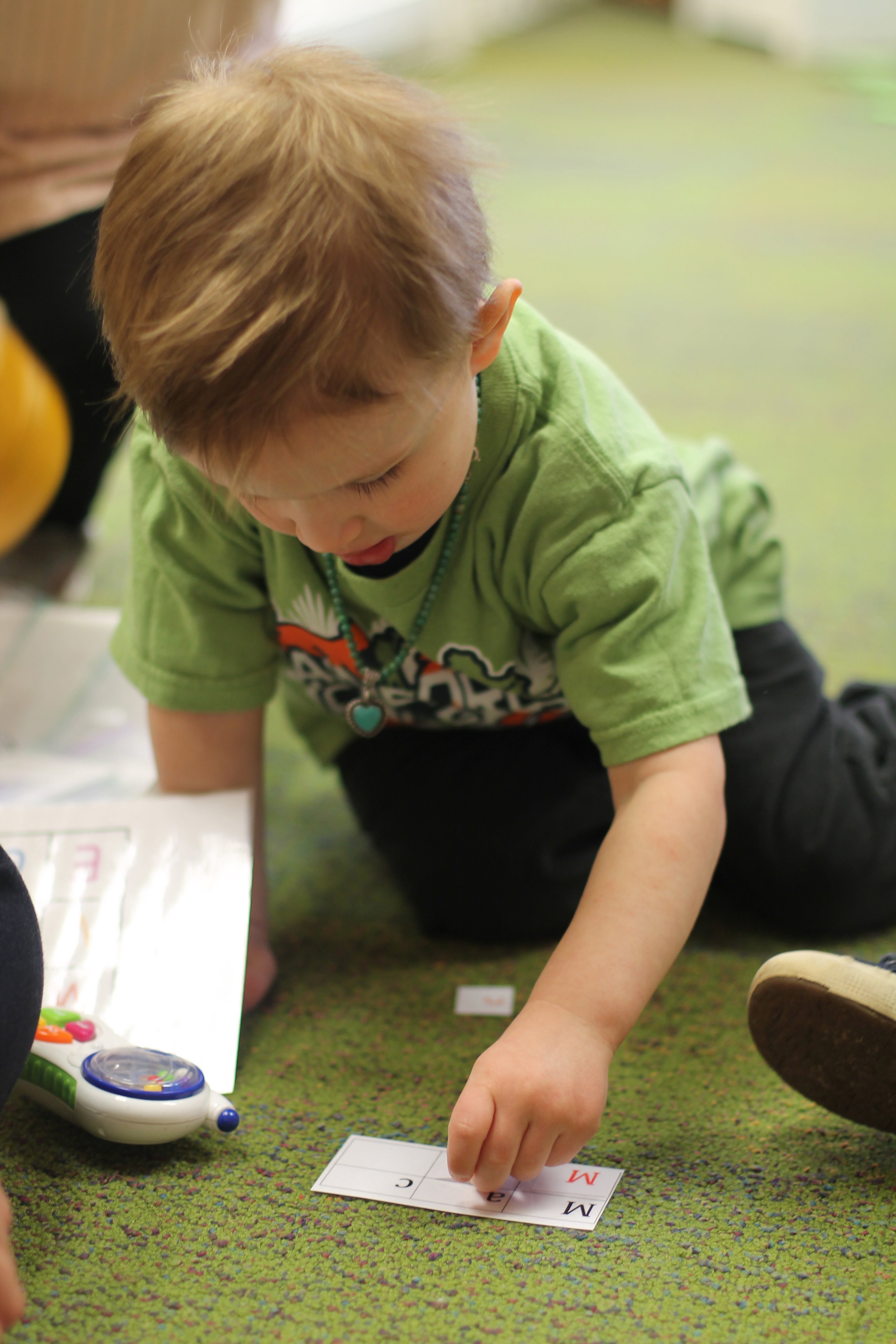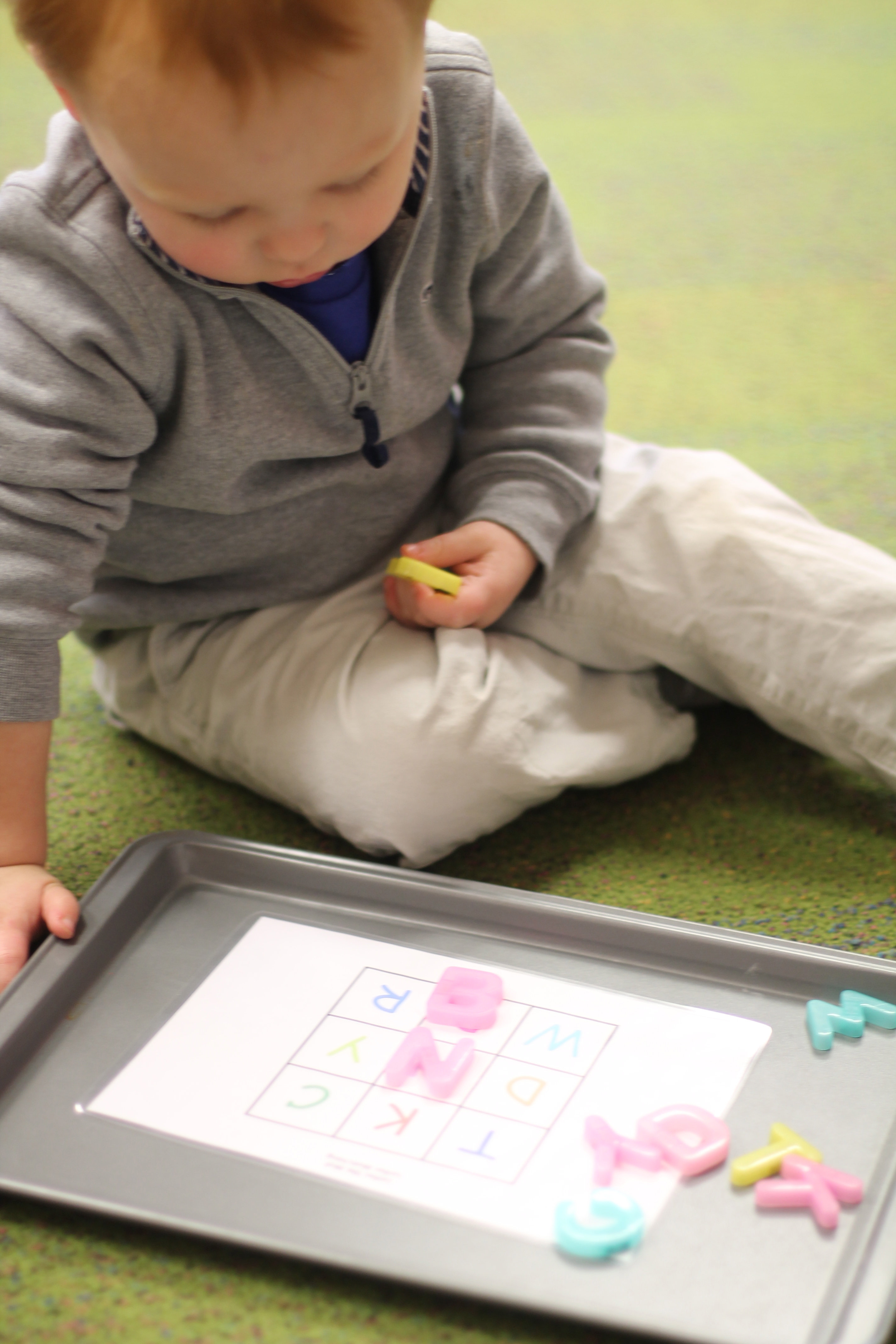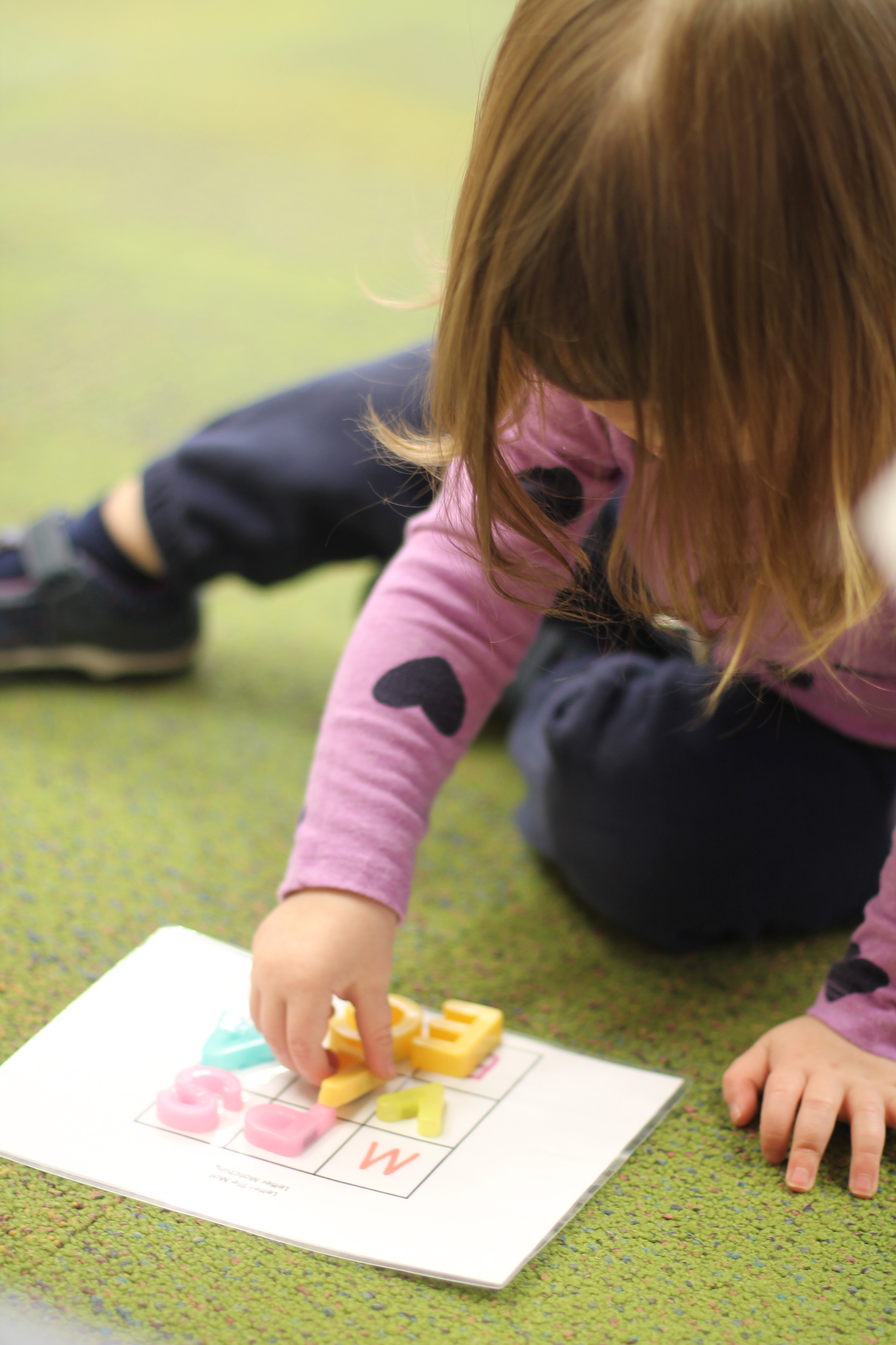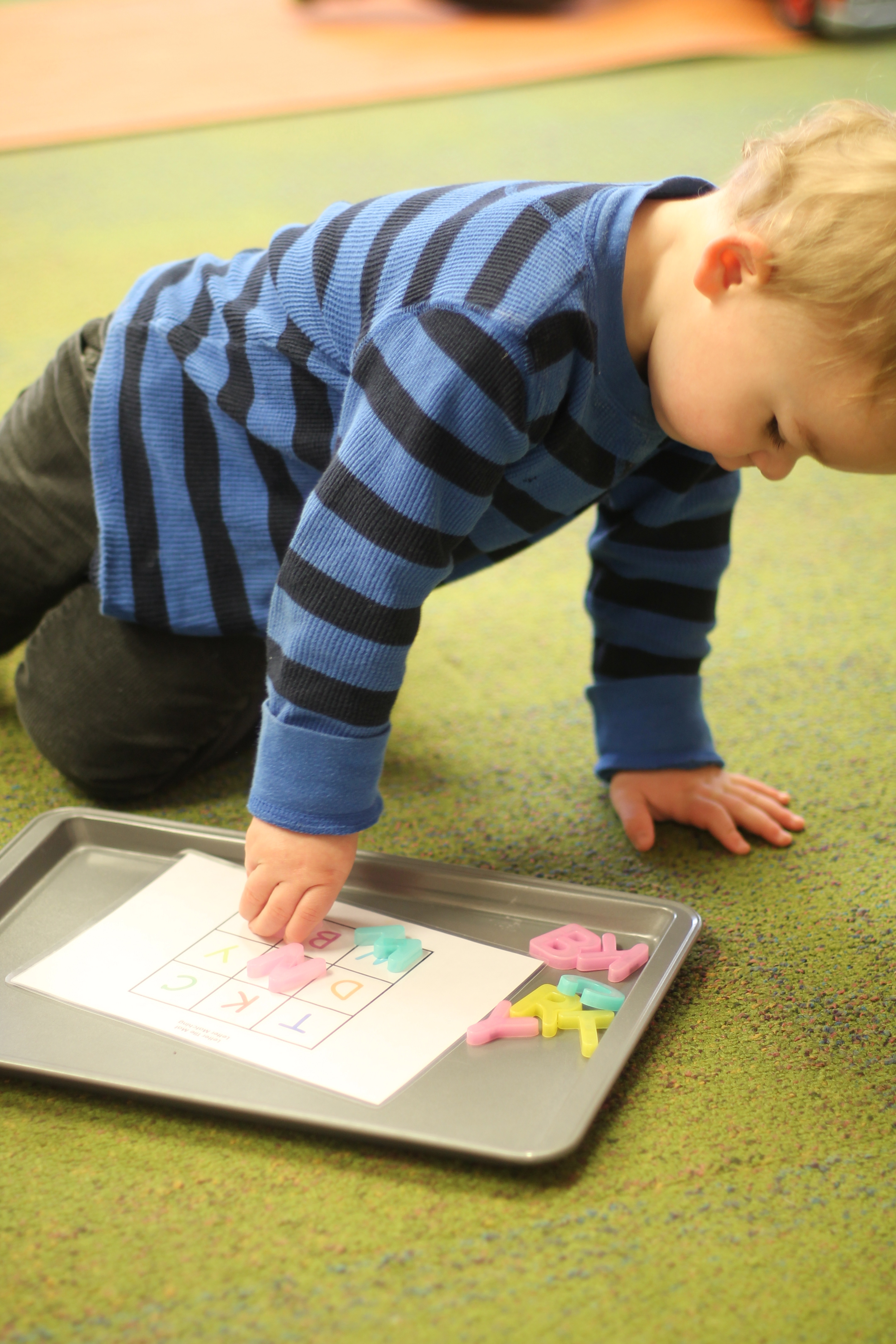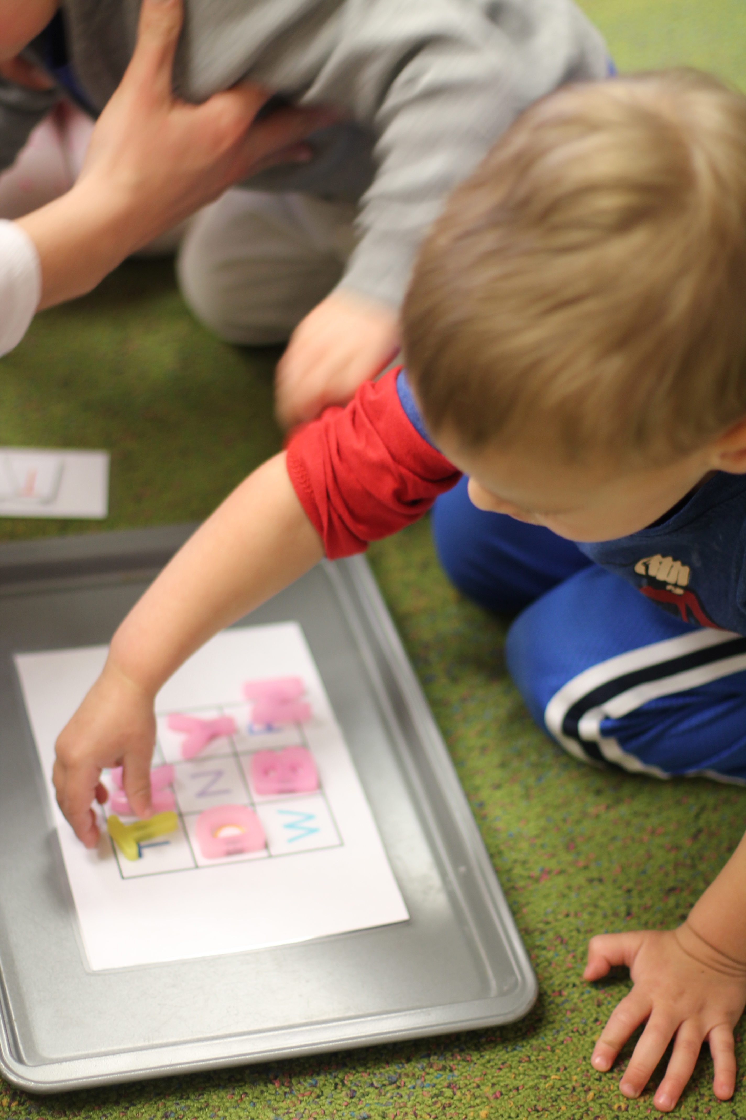 In small groups with Ms. Caroline, the boys and girls are working on letter recognition! For some of the children, they match letter magnets with letters on a sheet. Others are working on matching the letters in their name. No matter what the children are working on, this is a great way to introduce letters, sounds and their names. The boys and girls have so much fun playing and learning with these games!