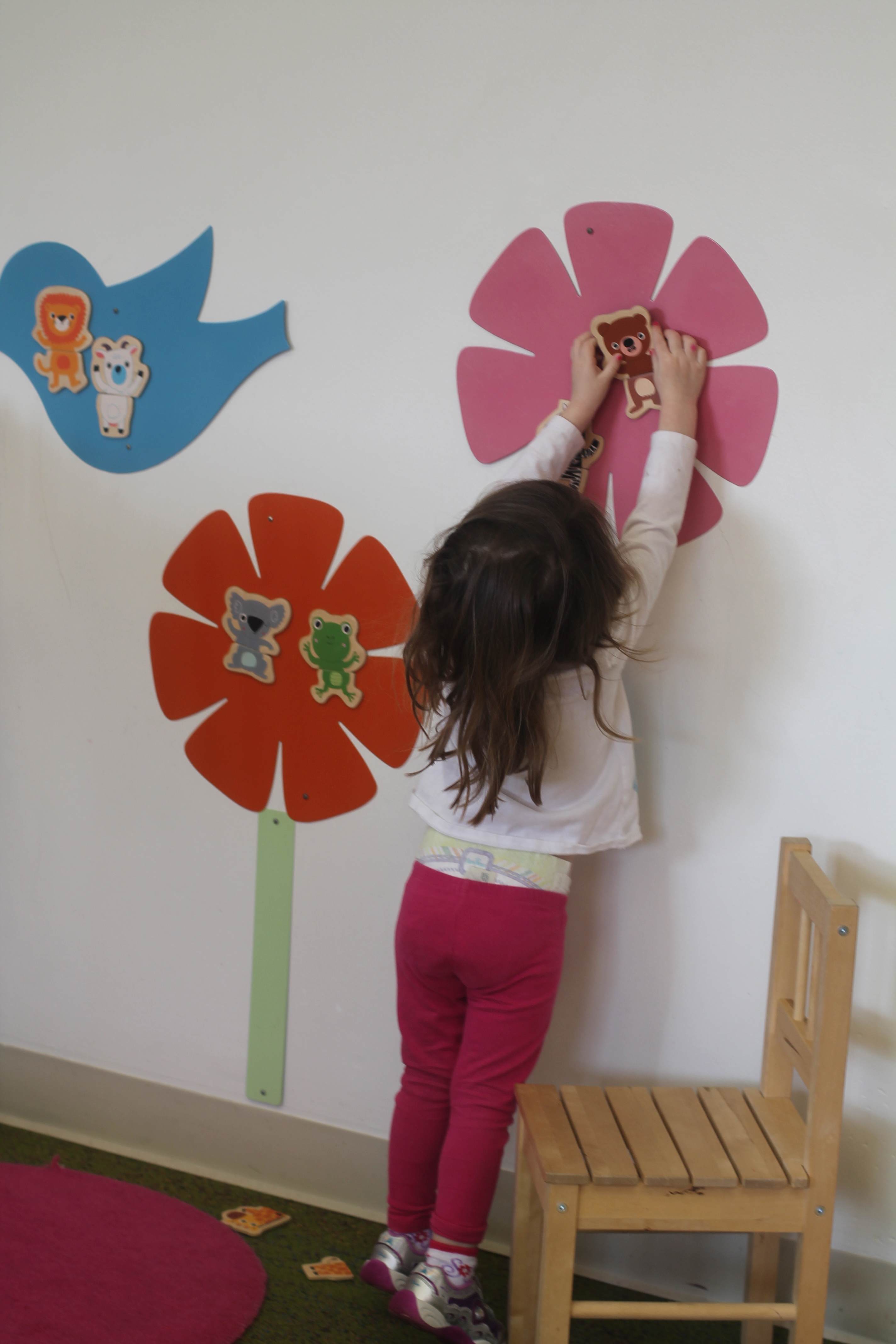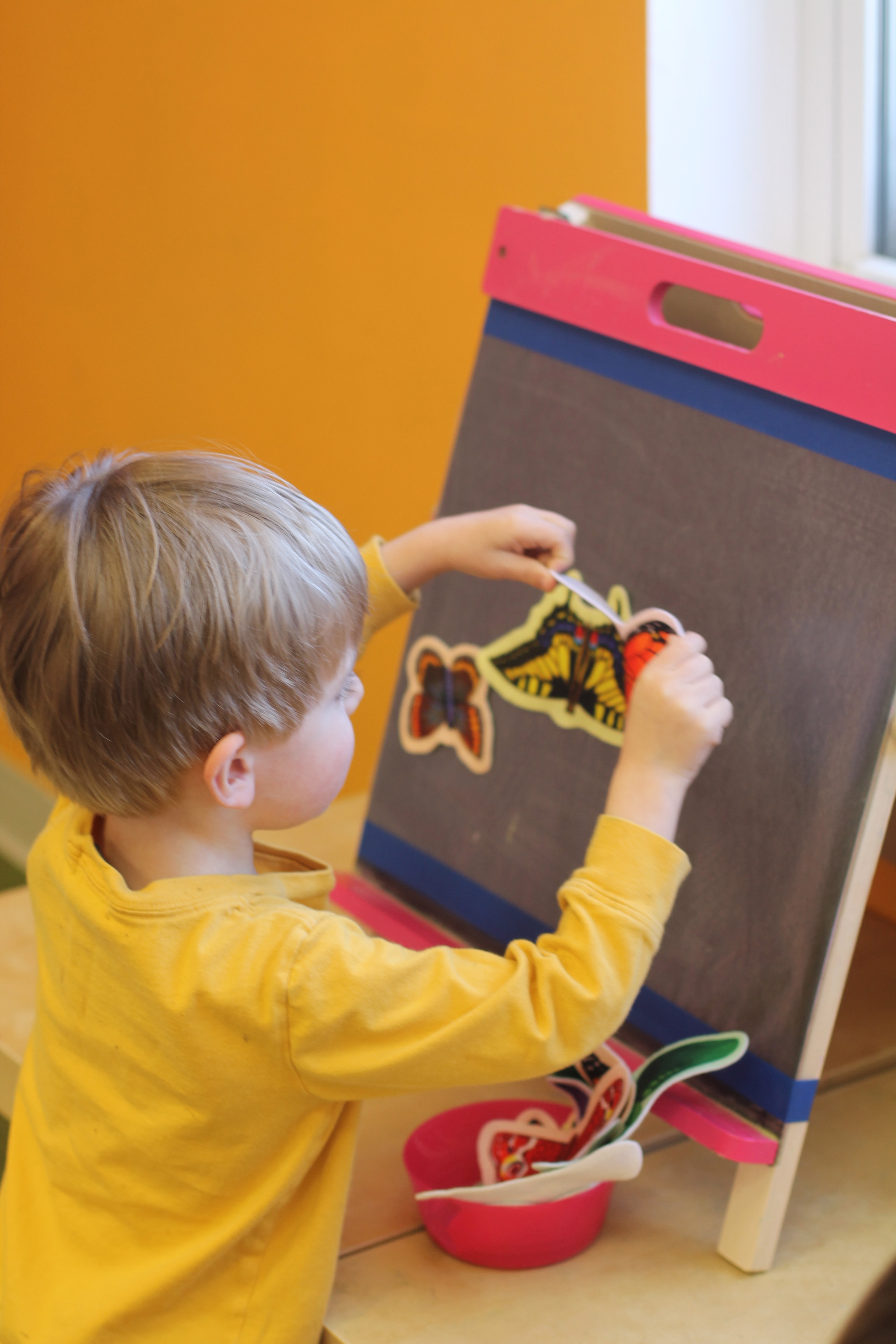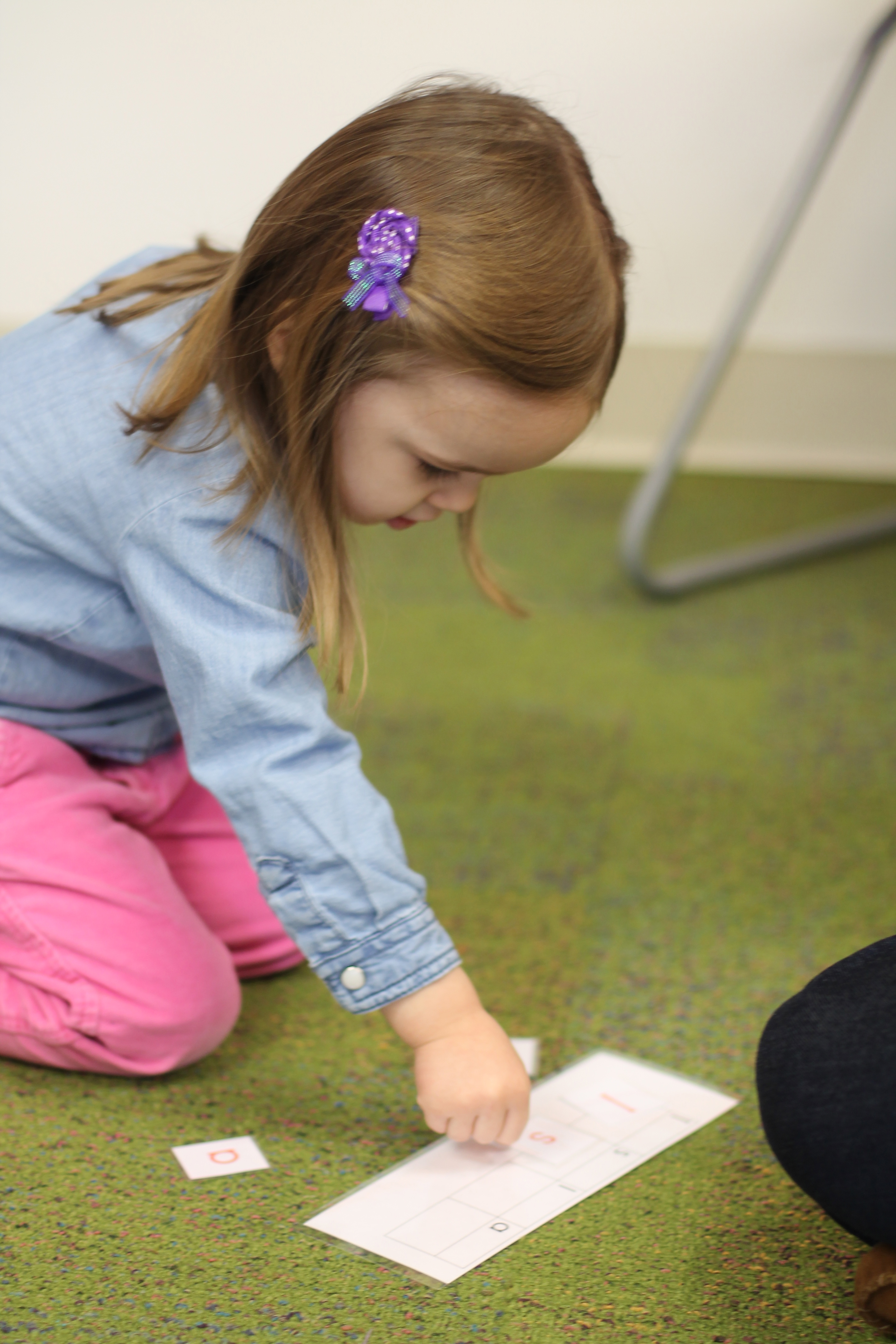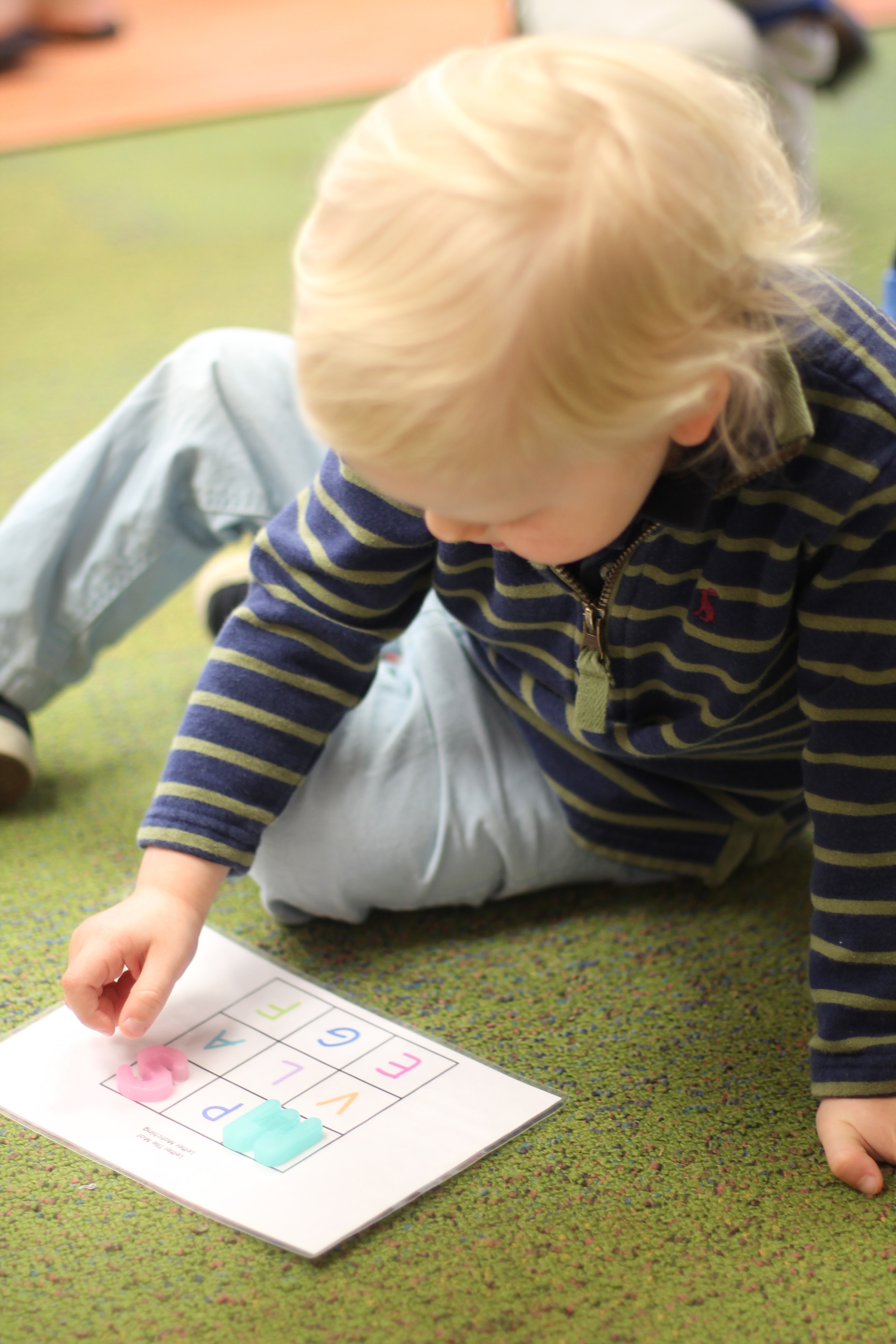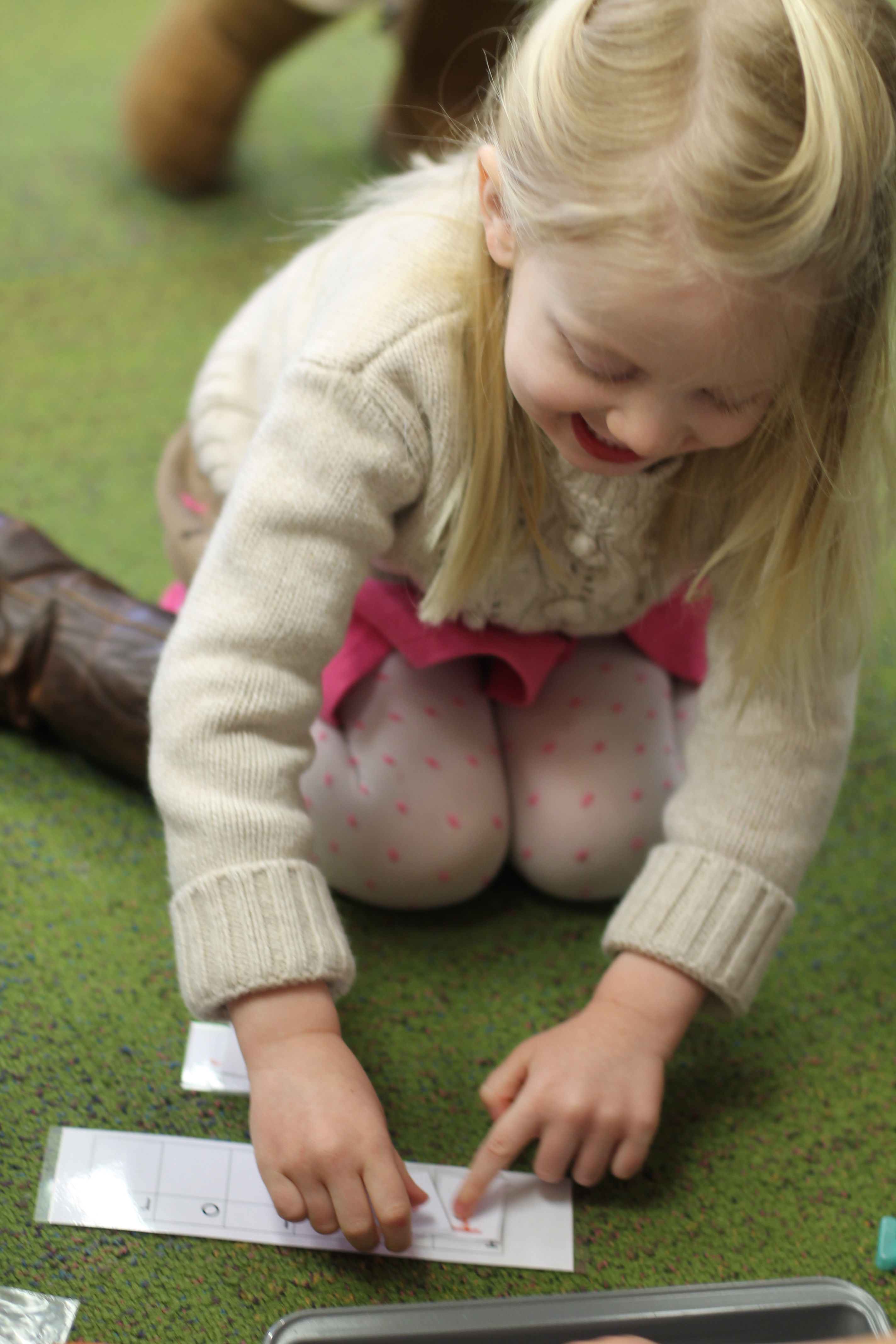 In small groups with Ms. Caroline, the boys and girls are working on letter recognition! For some of the children, they match letter magnets with letters on a sheet. Others are working on matching the letters in their name. No matter what the children are working on, this is a great way to introduce letters, sounds and their names. The boys and girls have so much fun playing and learning with these games!
