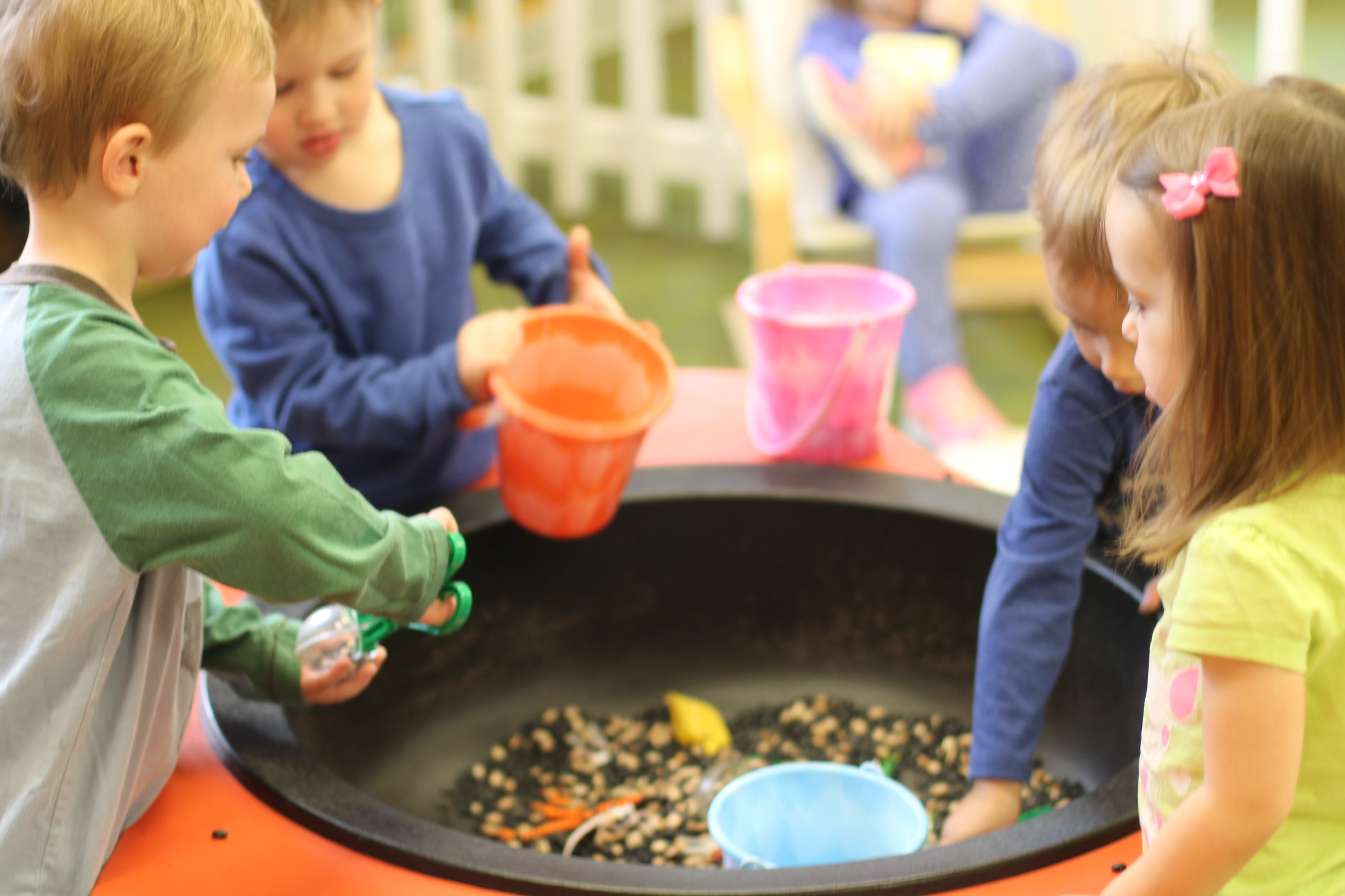 During group time, the boys and girls went hunting in Ms. Laurel’s tub for things that live in a pond. They found snakes, turtles, fish and frogs!