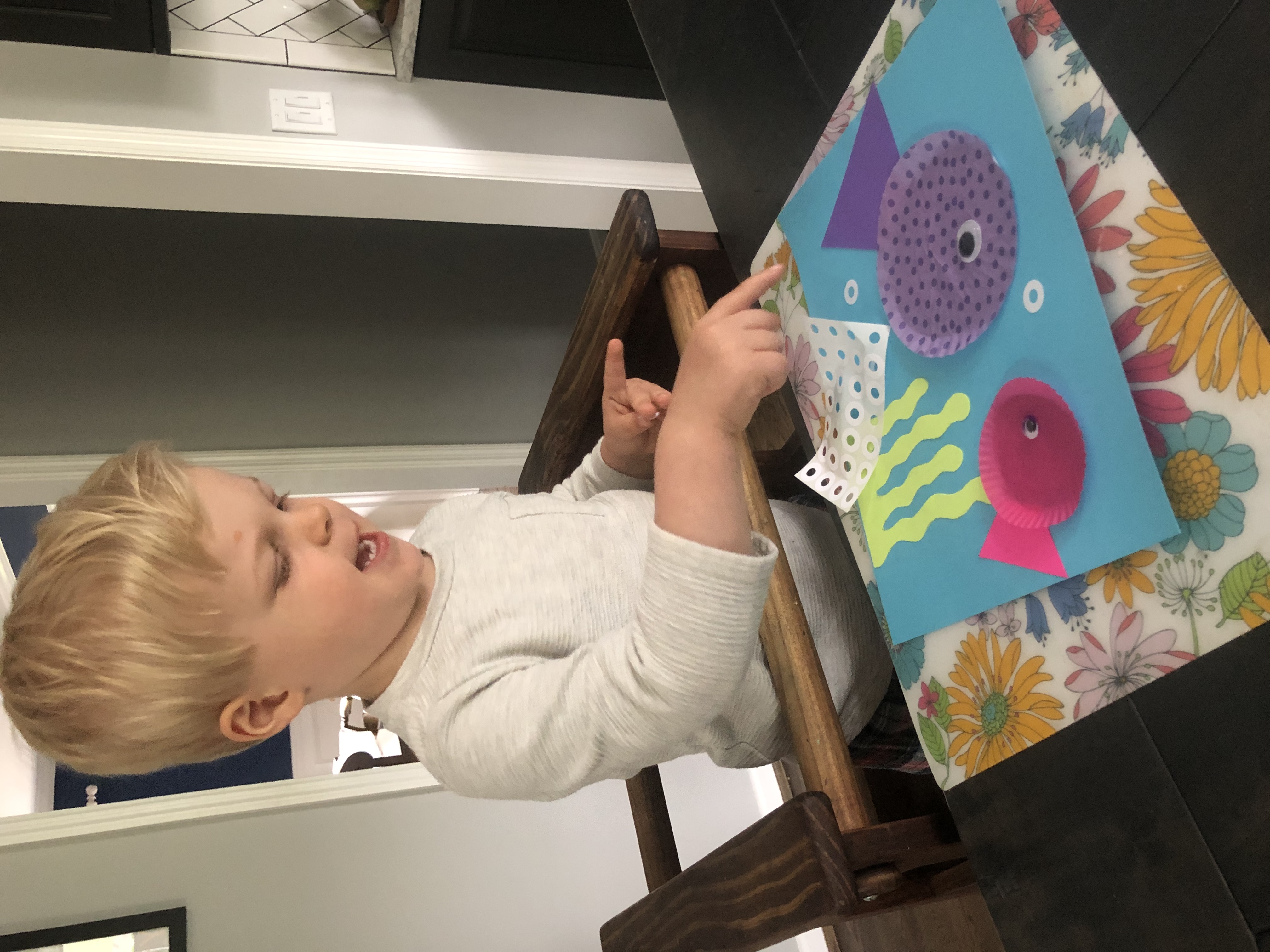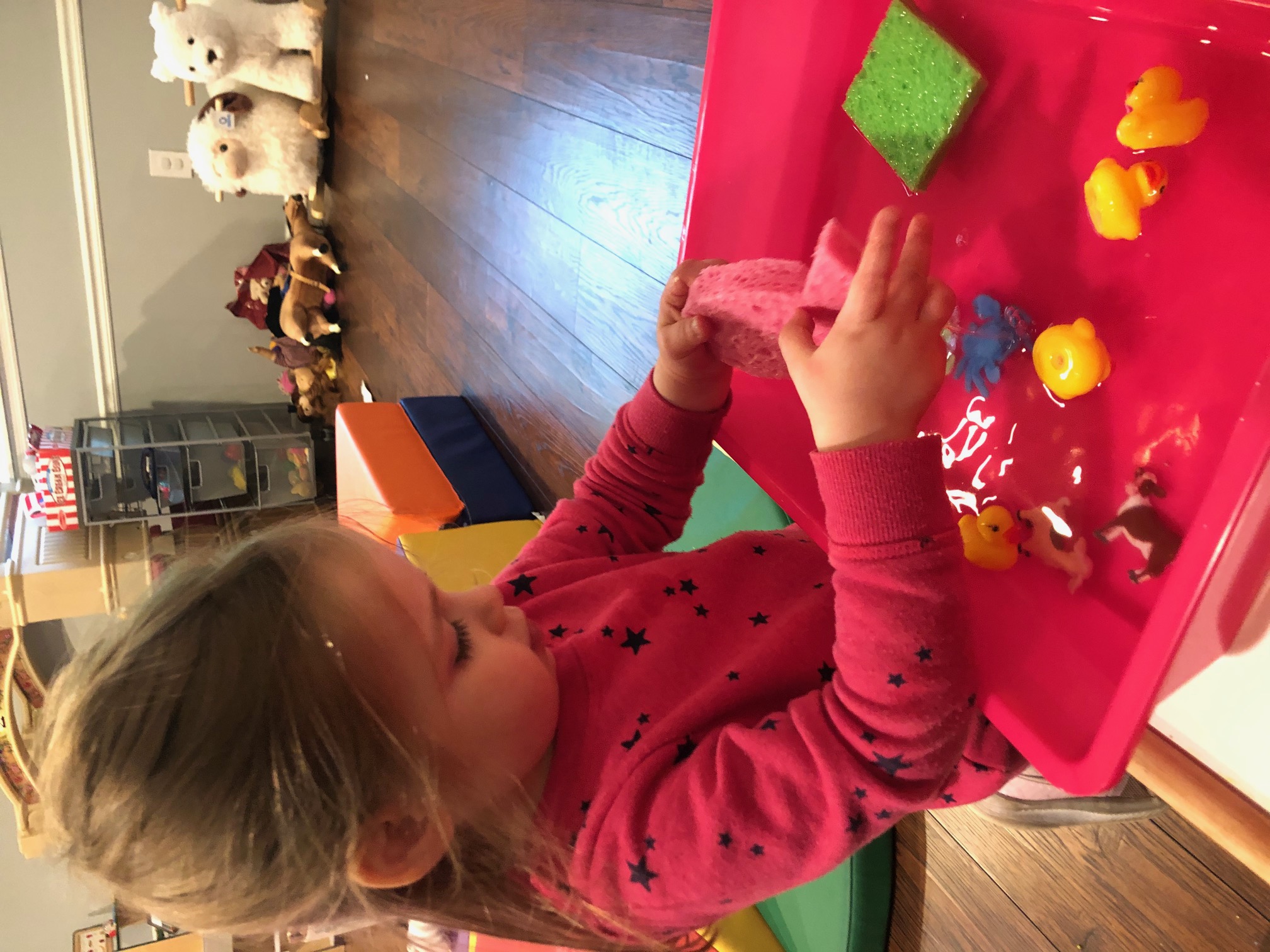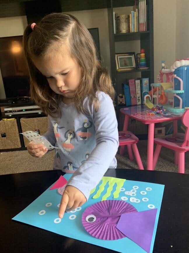 Our ocean study included a cupcake wrapper craft, sorting goldfish by color, a video recording of the book Swimmy, and some “growing” ocean animals to place in the sensory tub of water.
