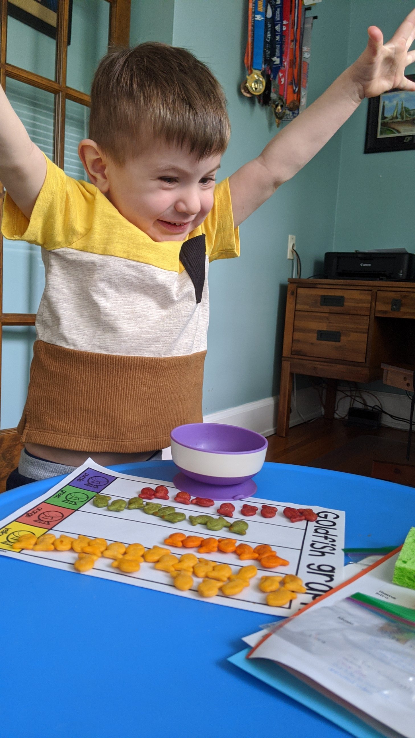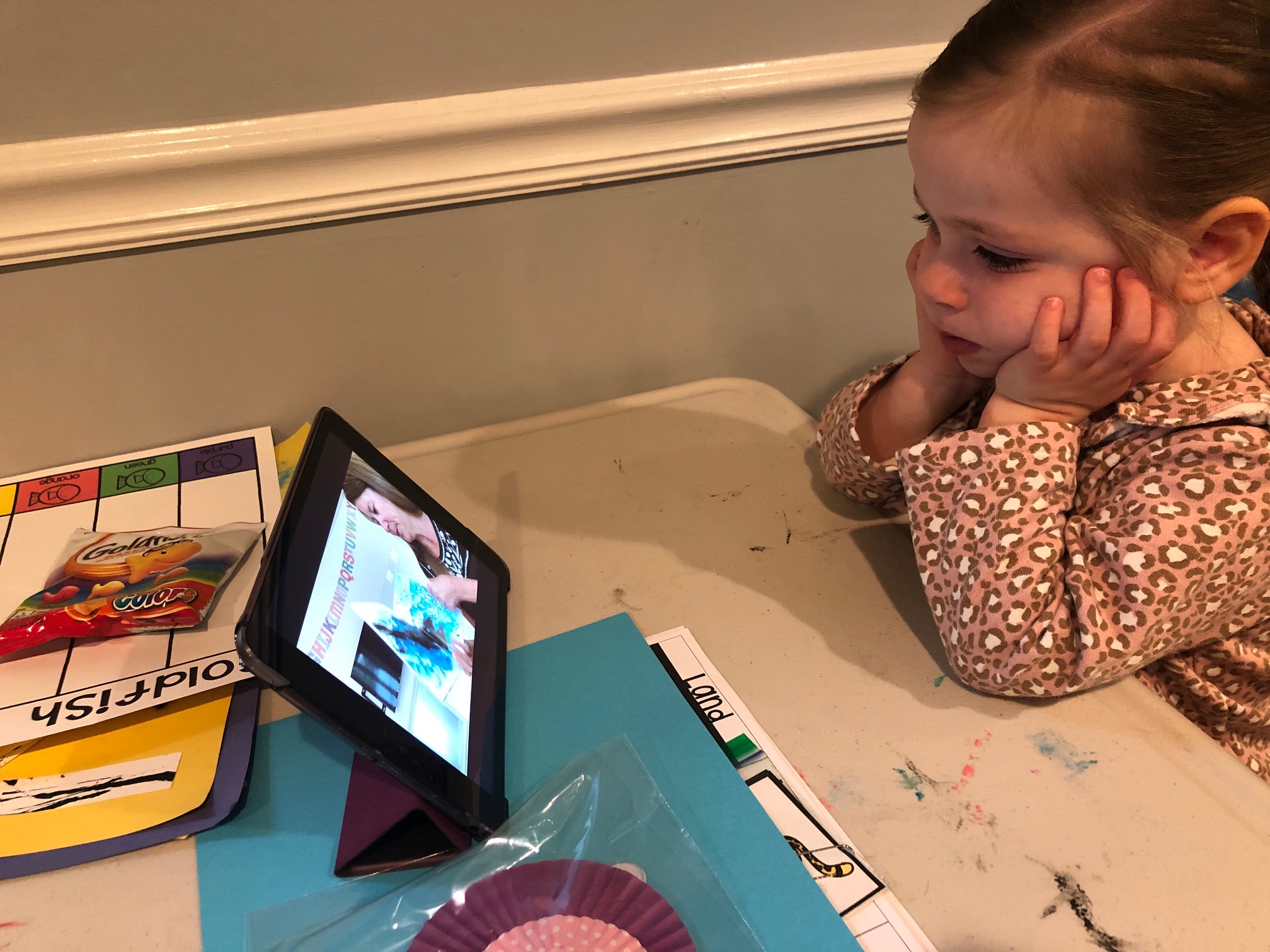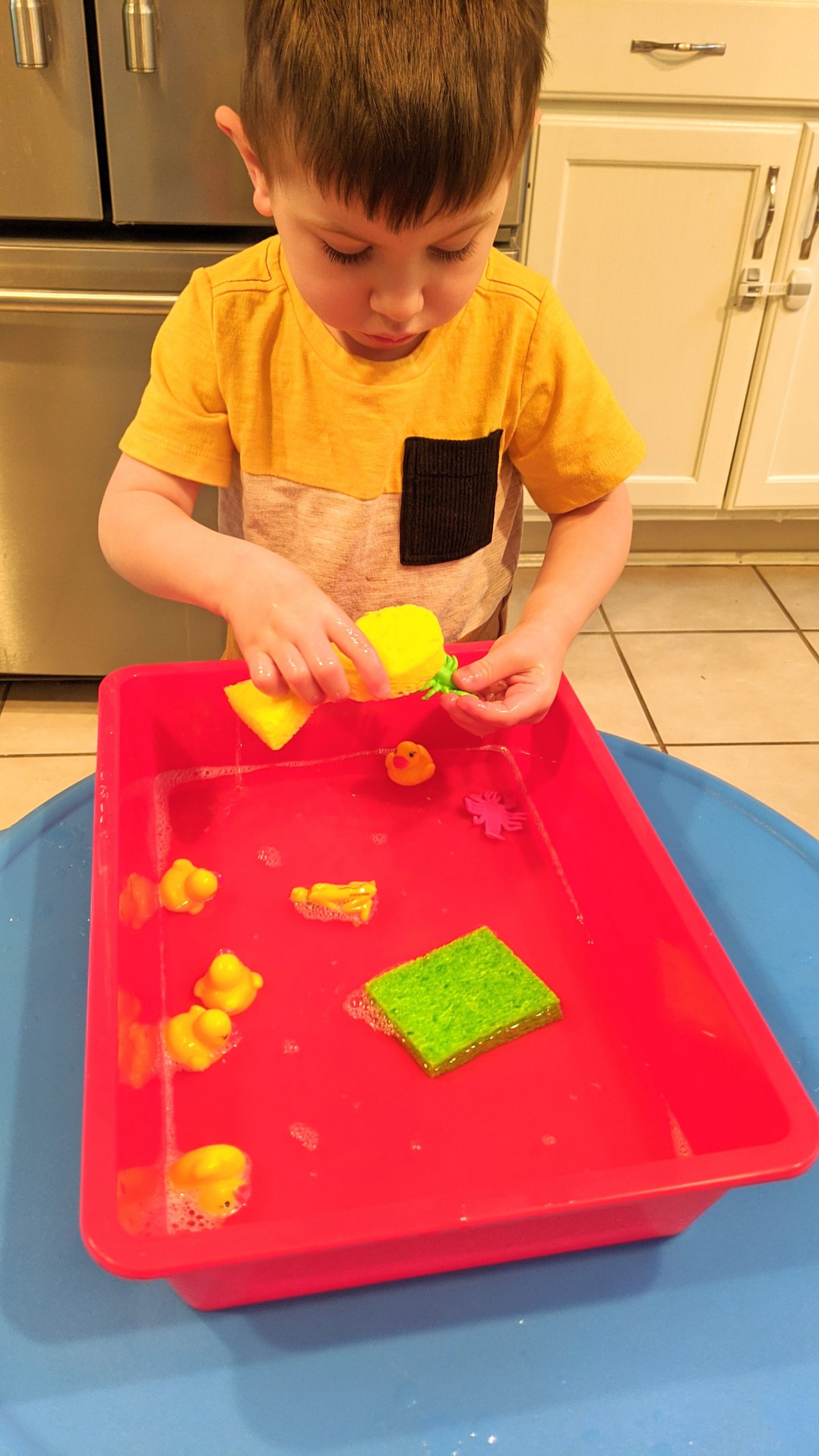 Our ocean study included a cupcake wrapper craft, sorting goldfish by color, a video recording of the book Swimmy, and some “growing” ocean animals to place in the sensory tub of water.