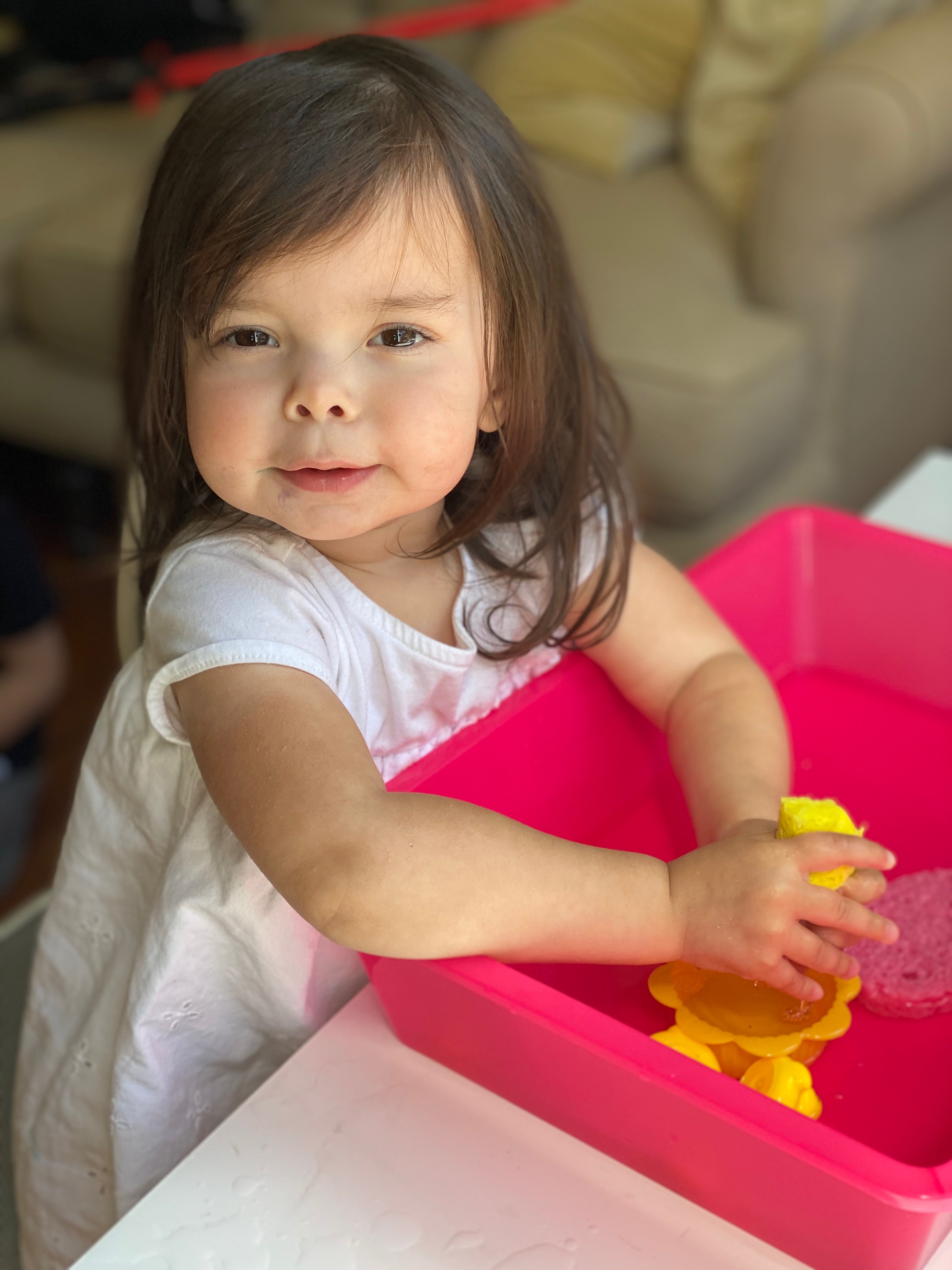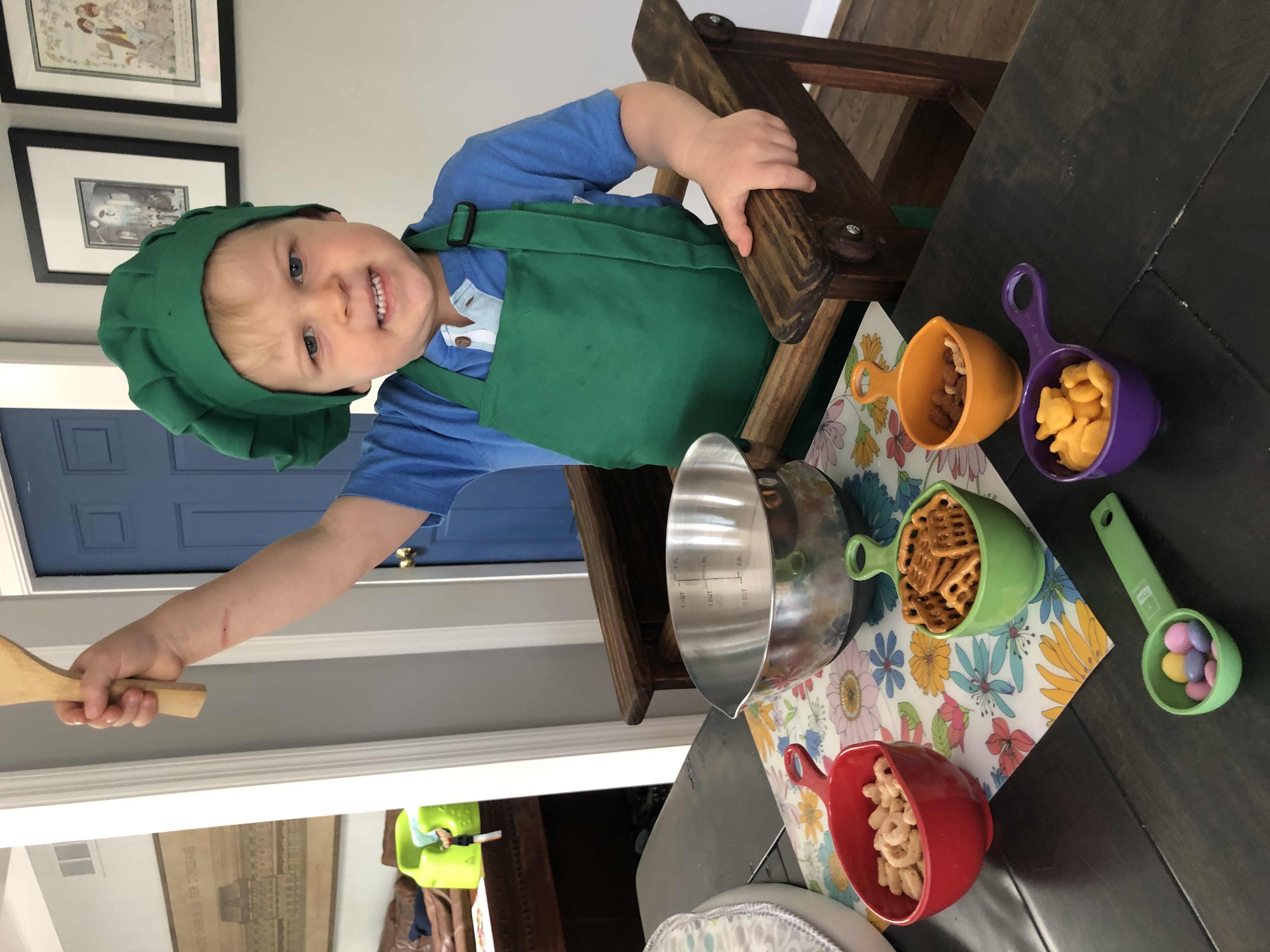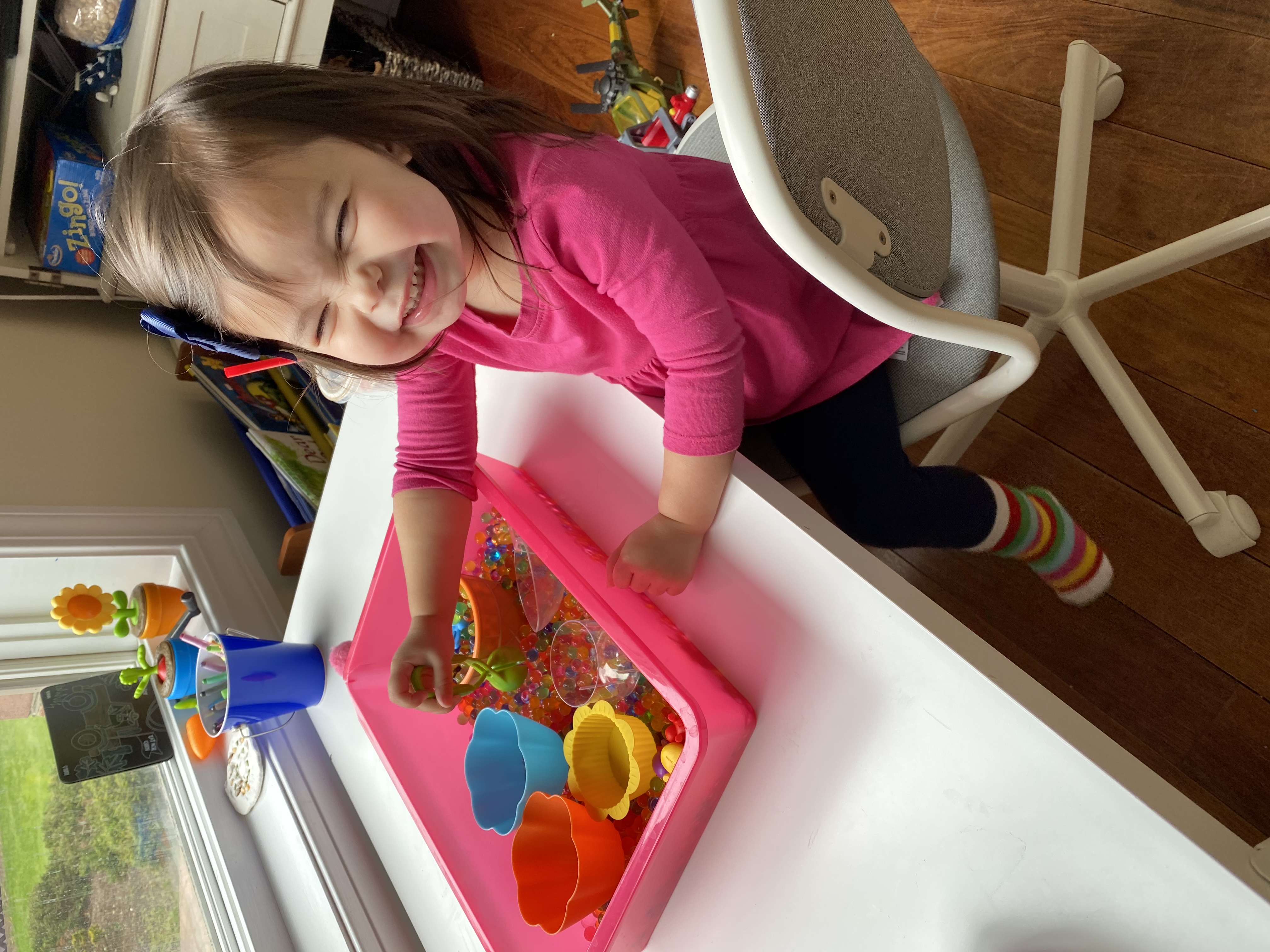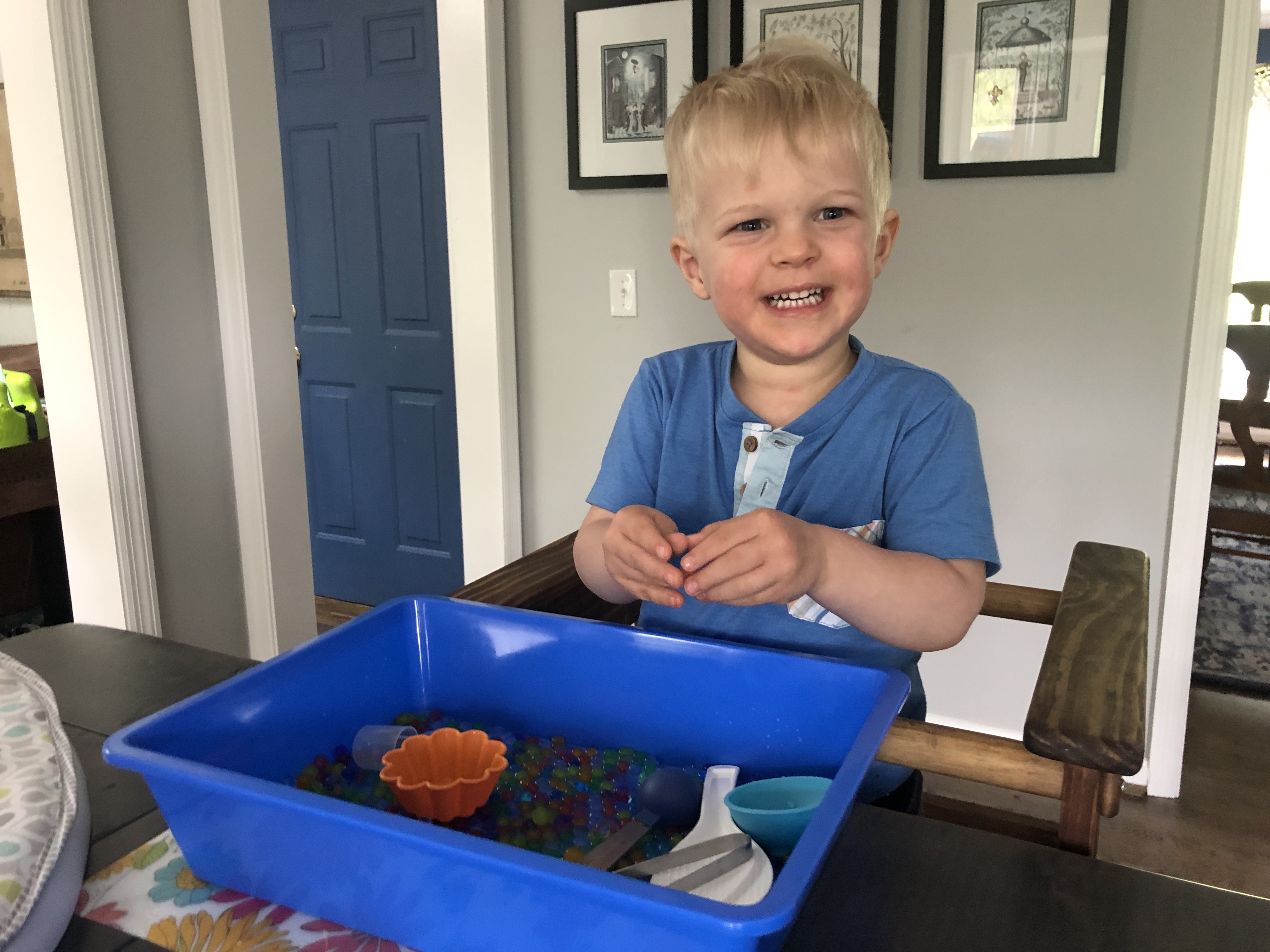 We rounded out the year by sending home rainbow waterbeads, toddler trail mix suggestions, lacing necklace materials, name building materials, and paint to complete the end of year personalized color book!