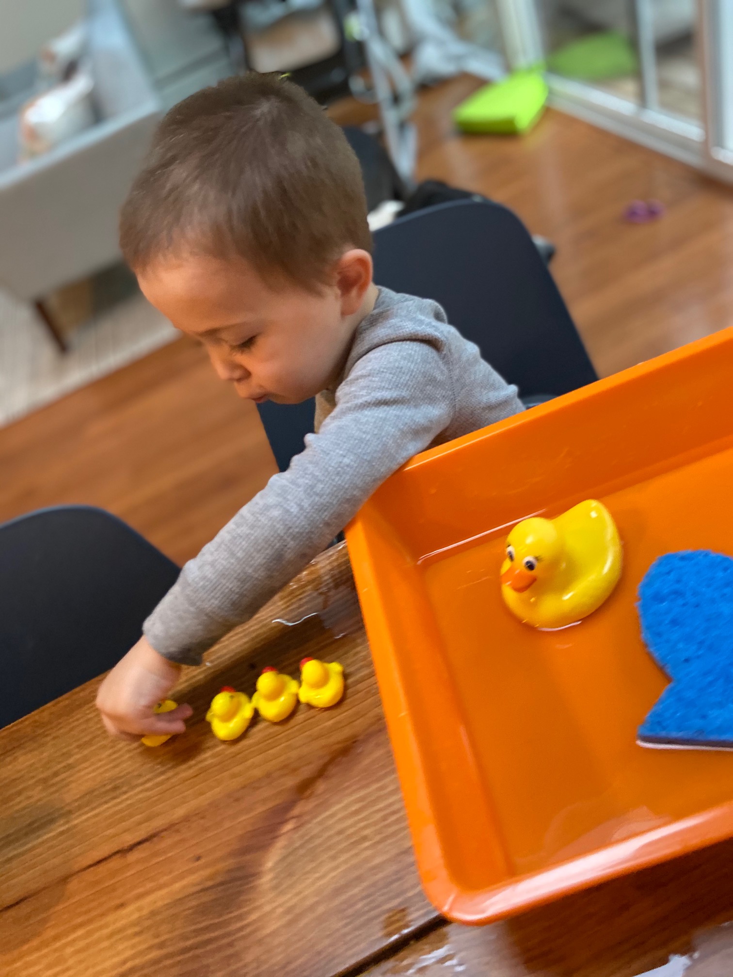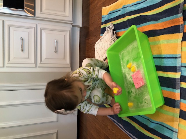 The distance packets this week also included five little ducks for retelling the song, materials to make a frog craft, and lily pads for hopping to engage our toddlers in learning about pond animals.