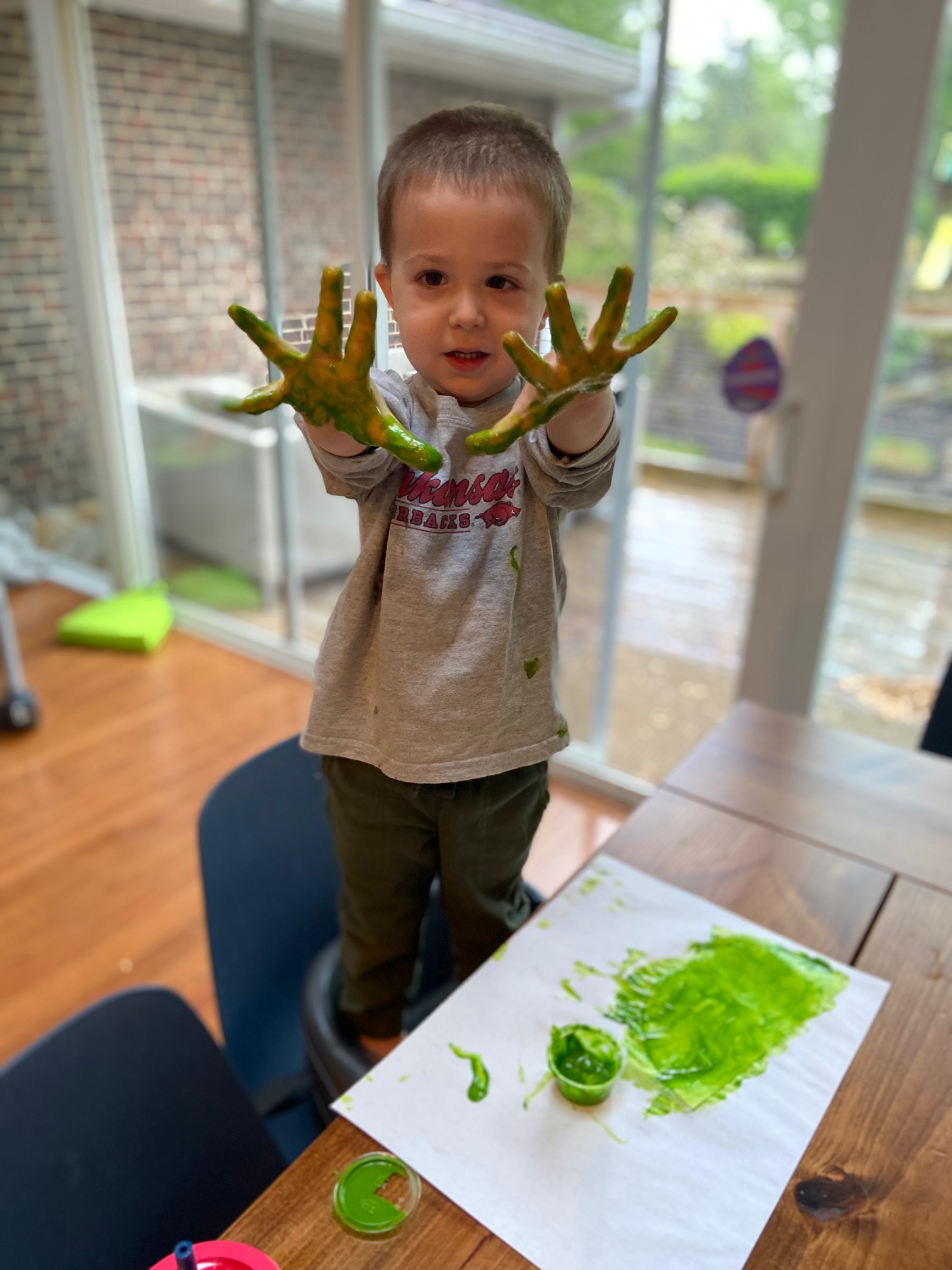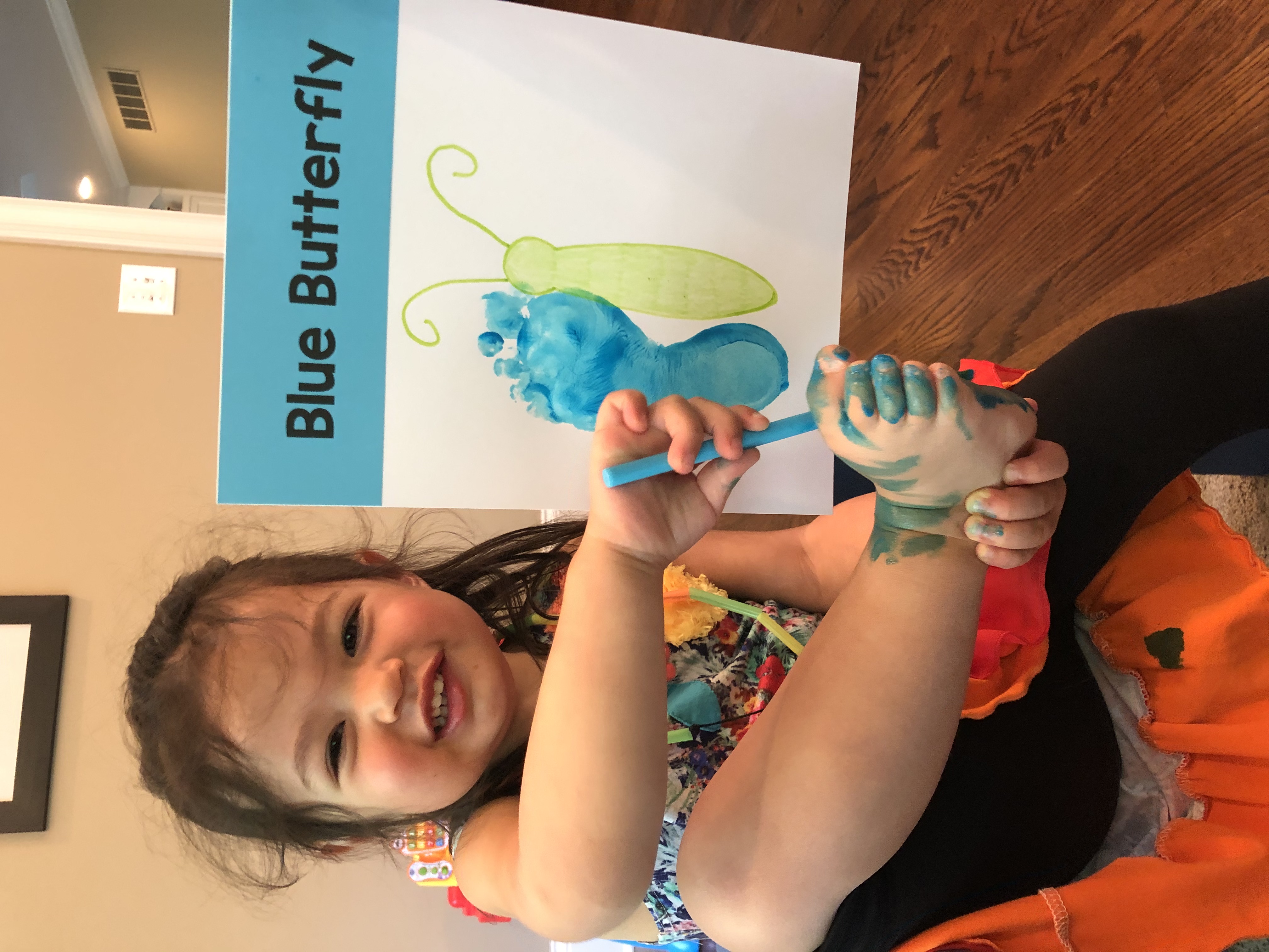 Orange discovery bins have been a big hit this month.  The toddlers practiced fine motor skills, counting and sorting while finding Halloween cats in the orange lentils.  We also painted hands orange to make a page for our color book.  A wall mural, orange playdough, and painting with orange have all been fun and engaging activities to celebrate the color orange.