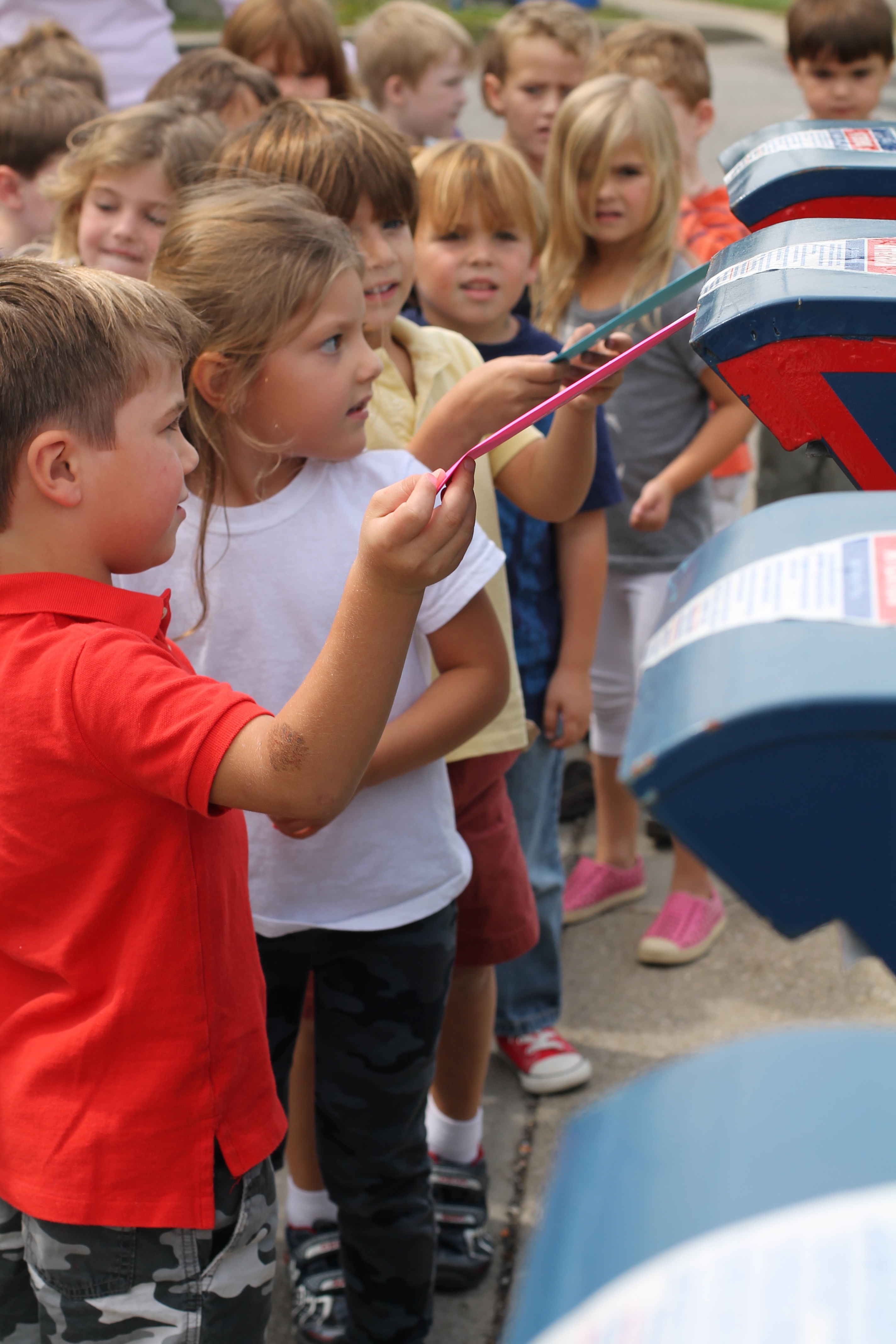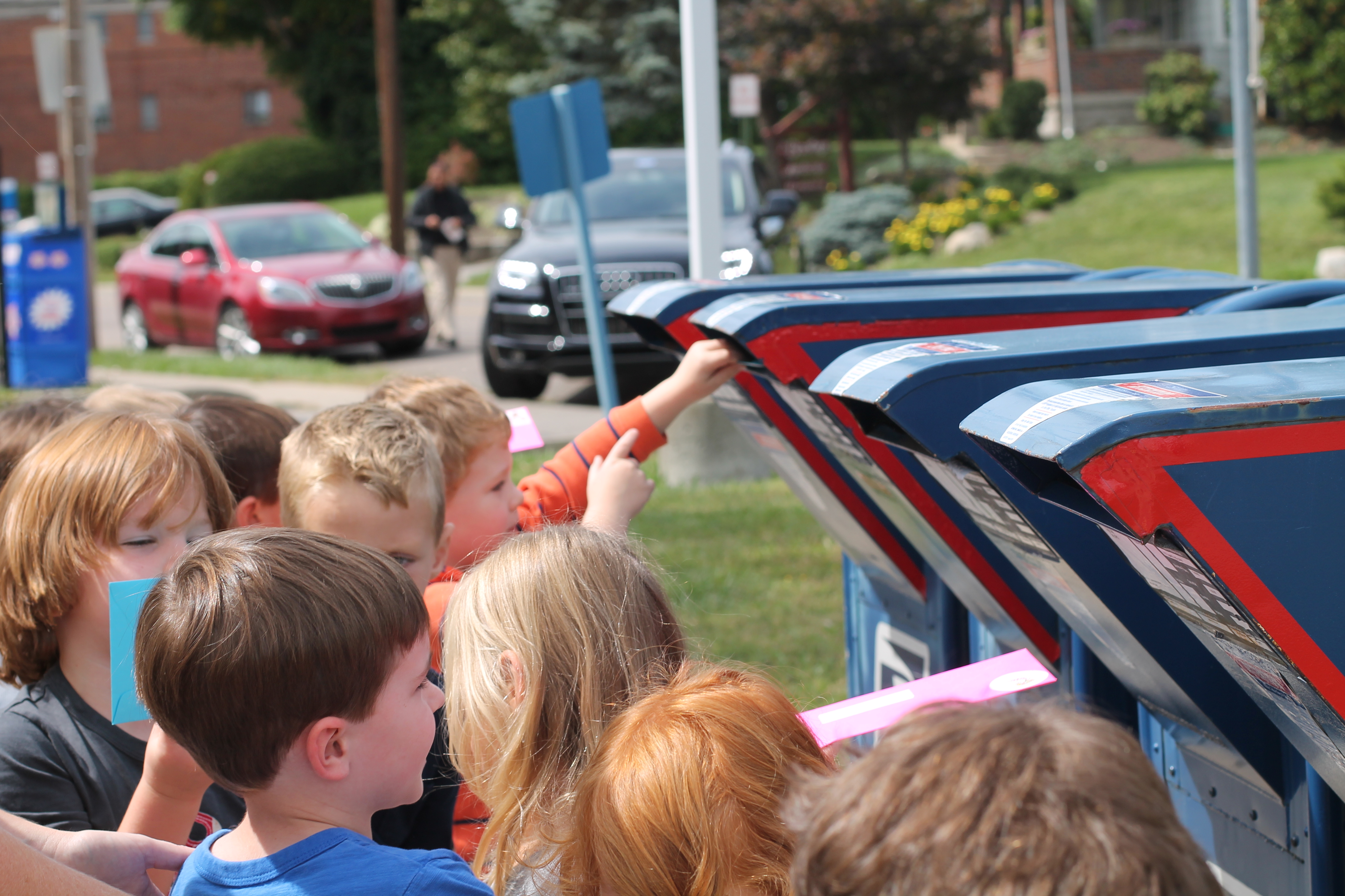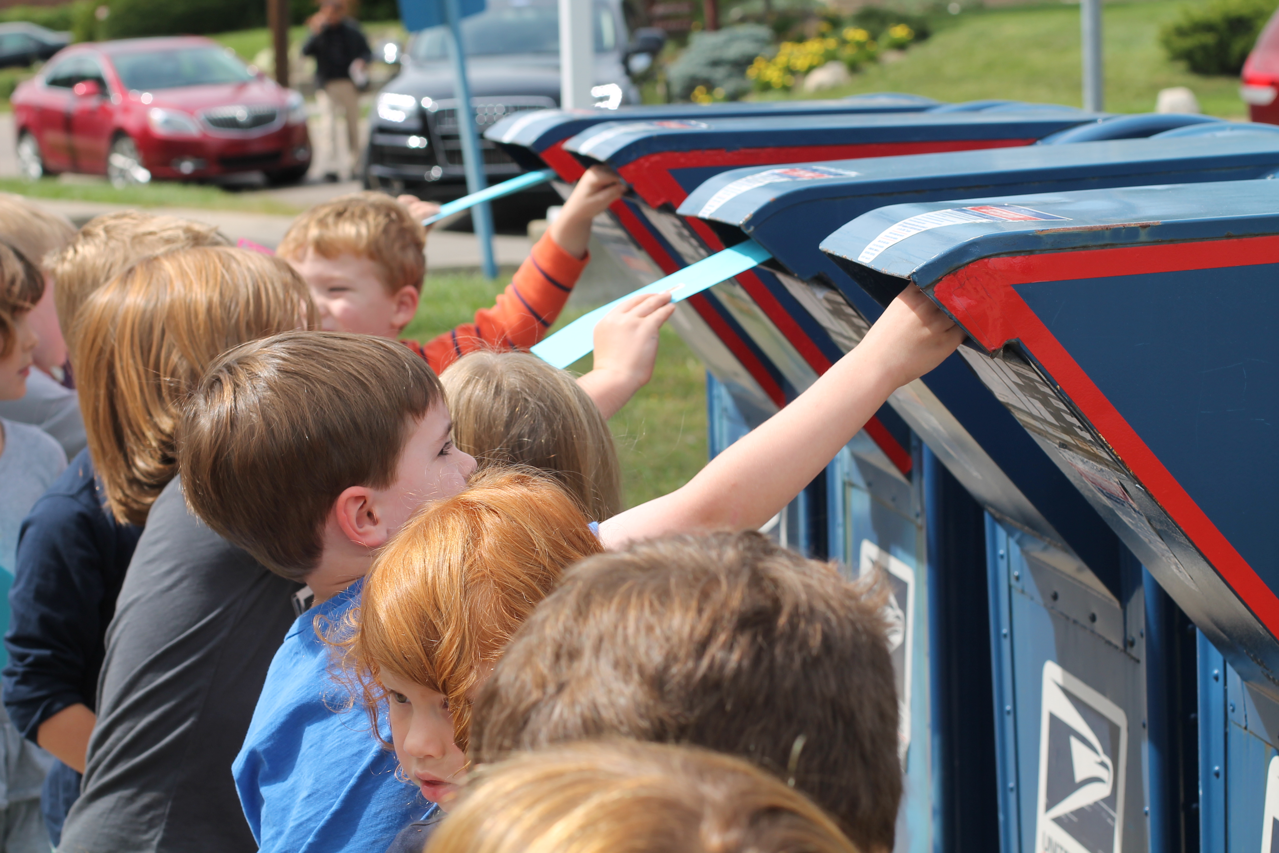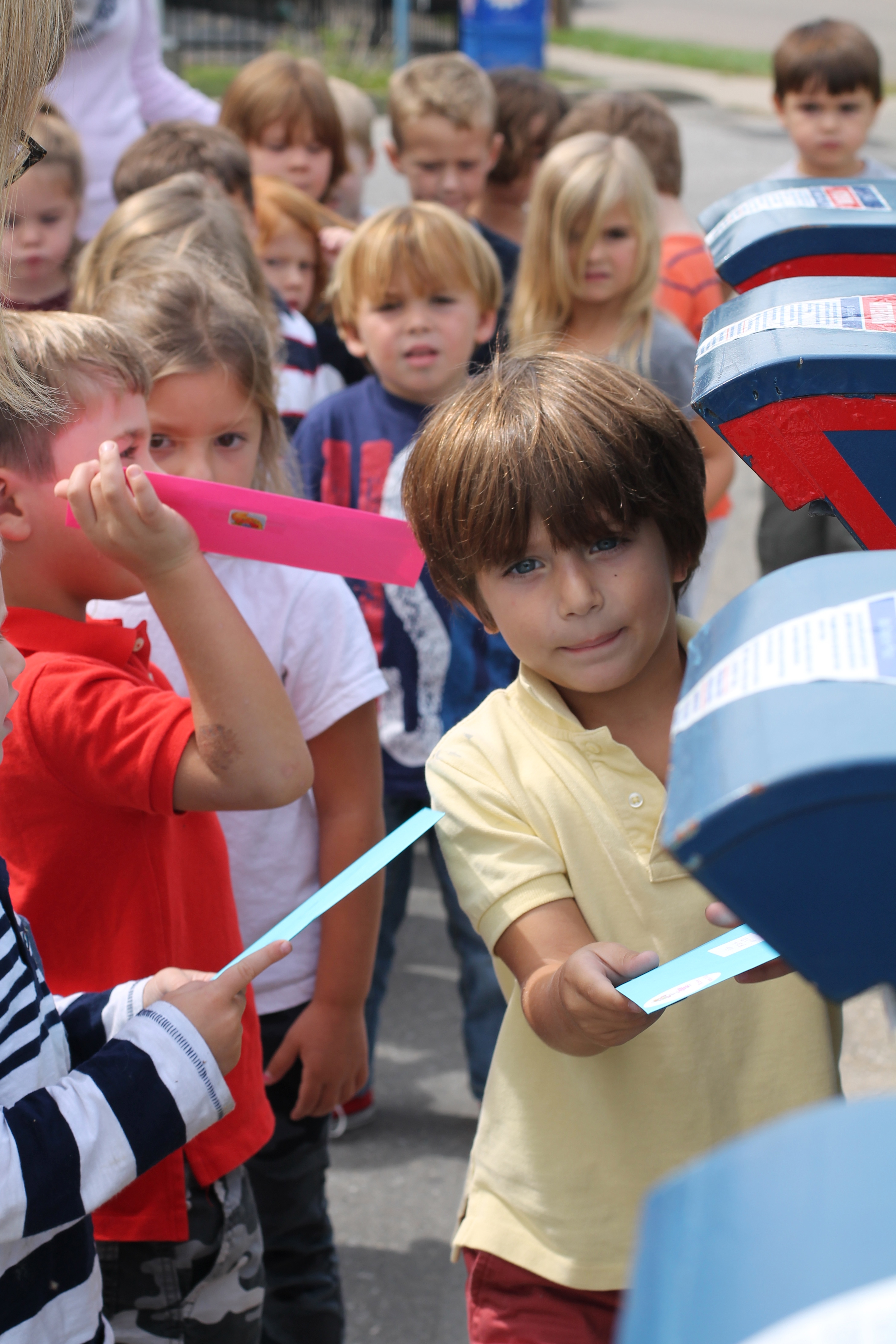 We have introduced a mailbox to our writing center! Students have been practicing writing letters to friends in our classroom. In small groups we all wrote a letter to home and took a walk to the post office next door to mail our letters!