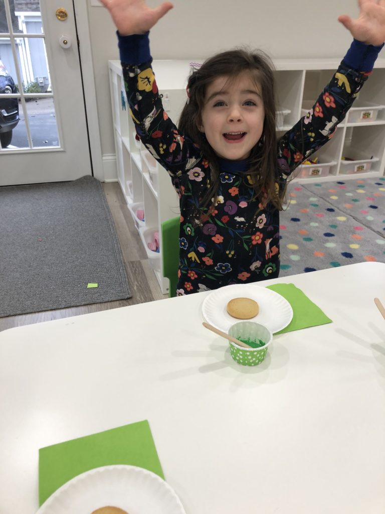 We have lots of great bakers in our preschool prep classroom! We all worked together to make homemade chocolate chip cookies that we were able to eat for snack! Yumm 🙂