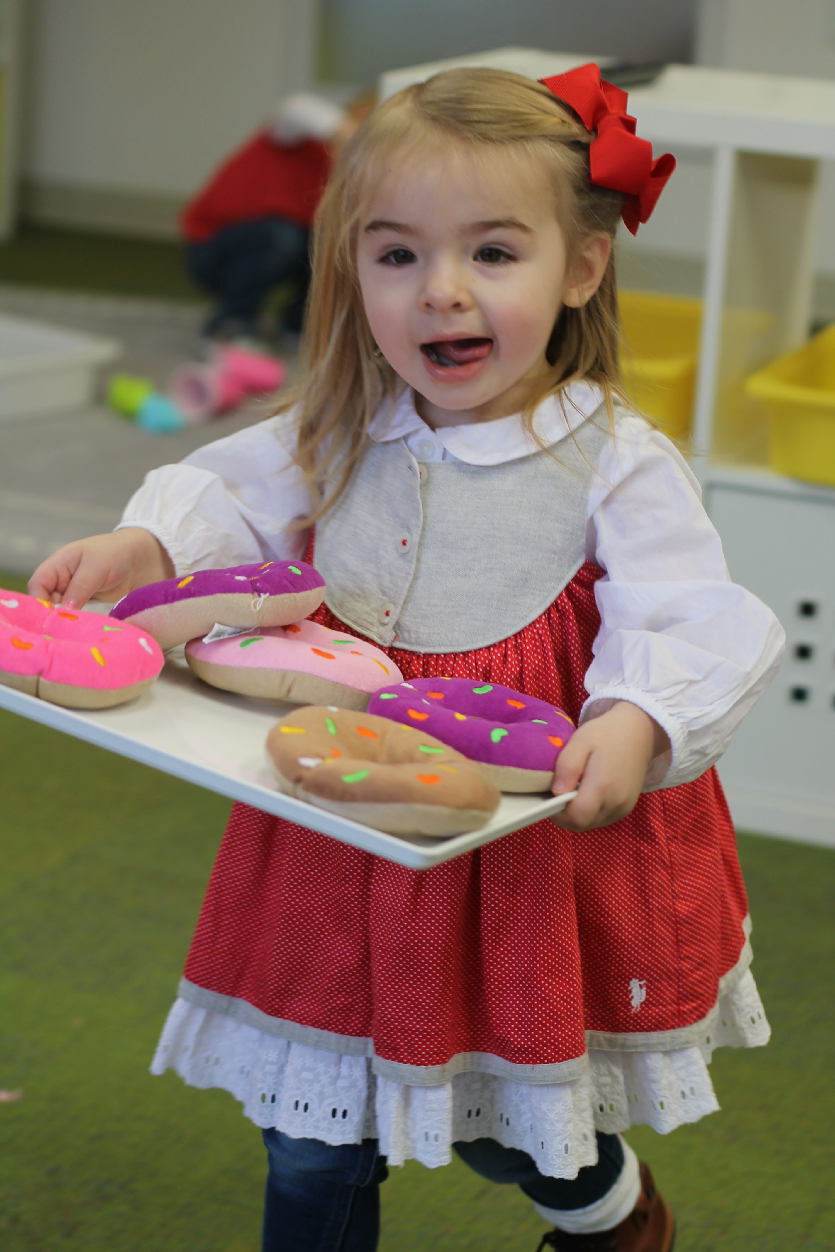 Sophia was having fun playing in the gingerbread house making all kinds of yummy treats! She was showing us all of the cookies she baked!