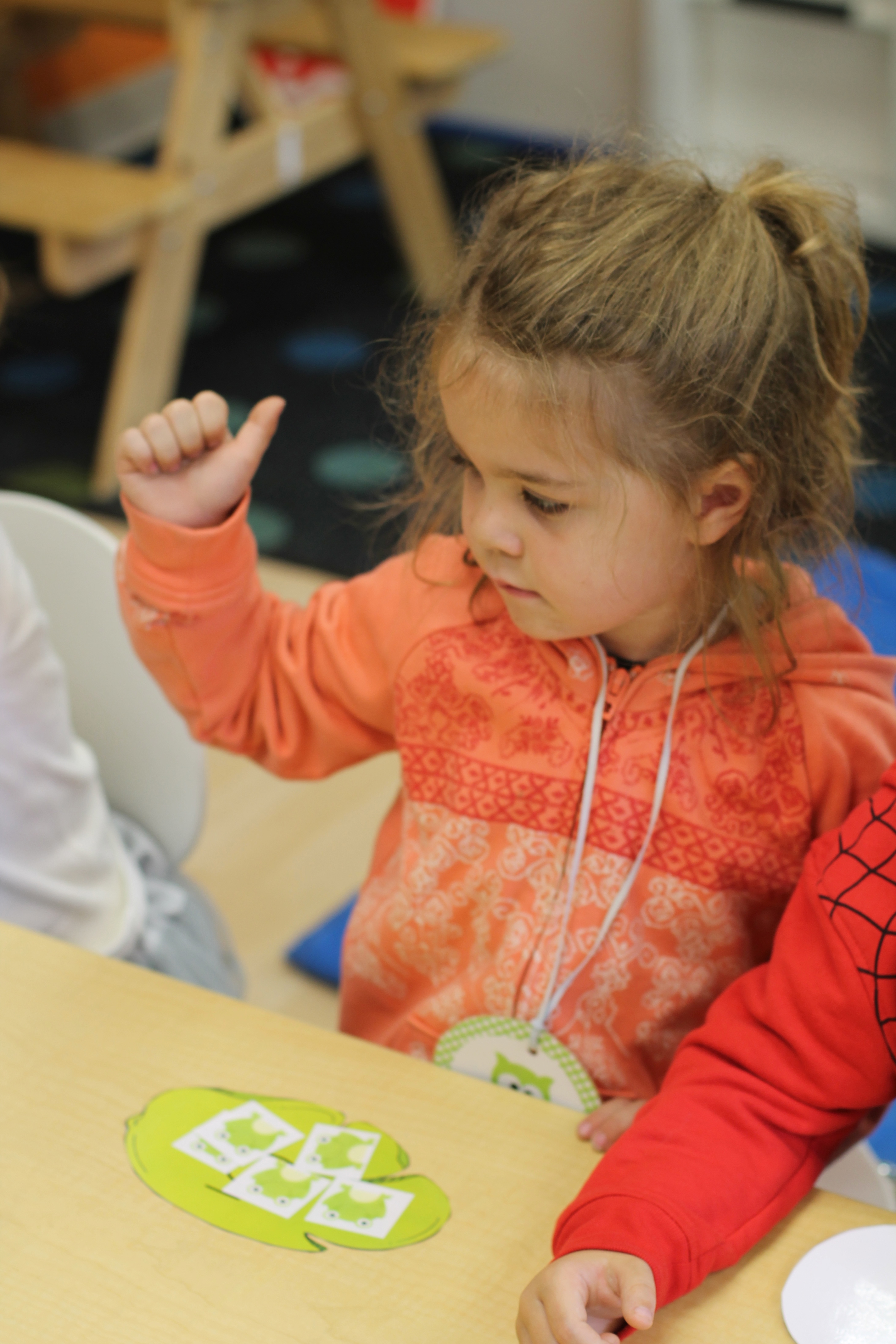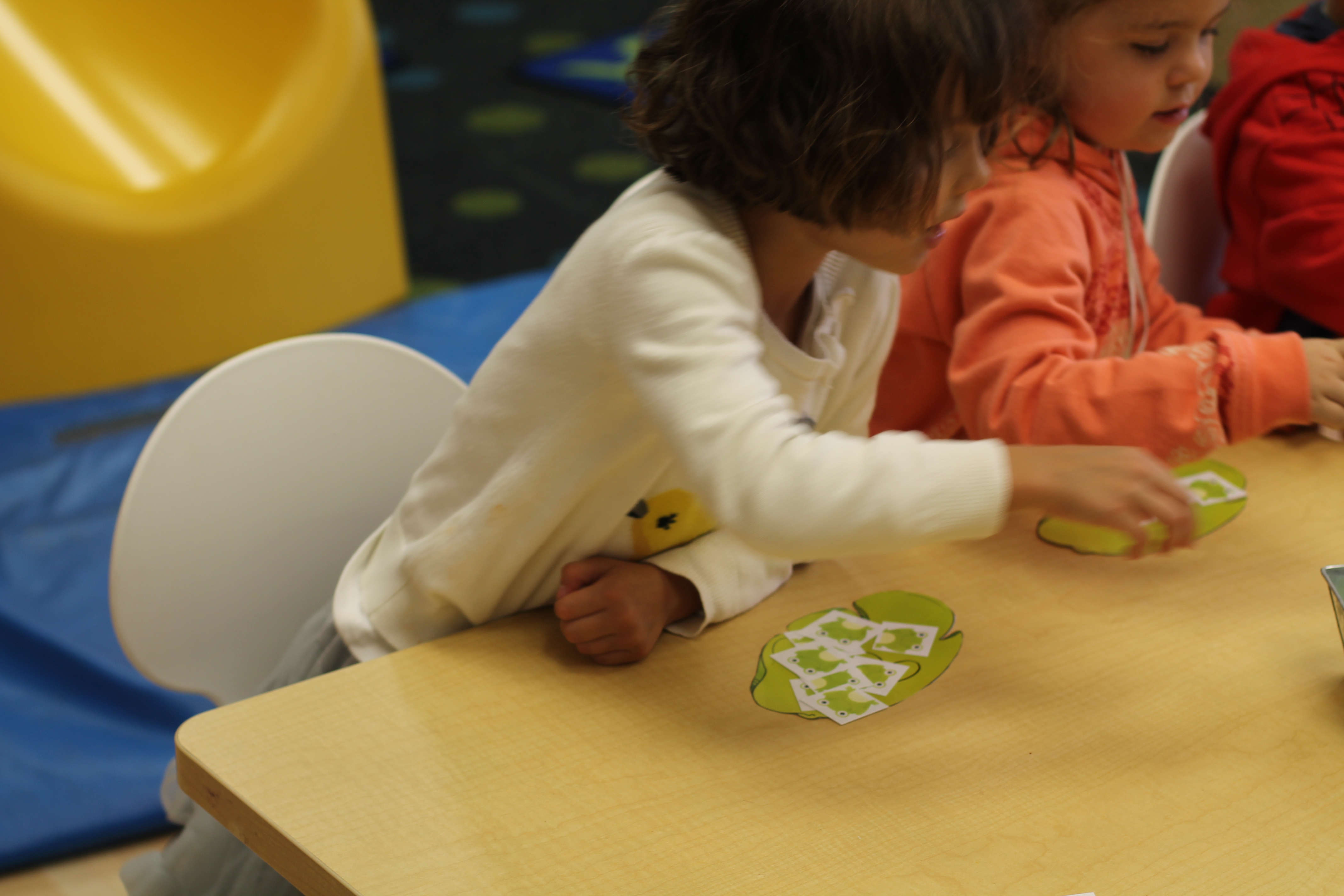 Because our science theme has been about ponds this month, we counted frogs onto lily pads!